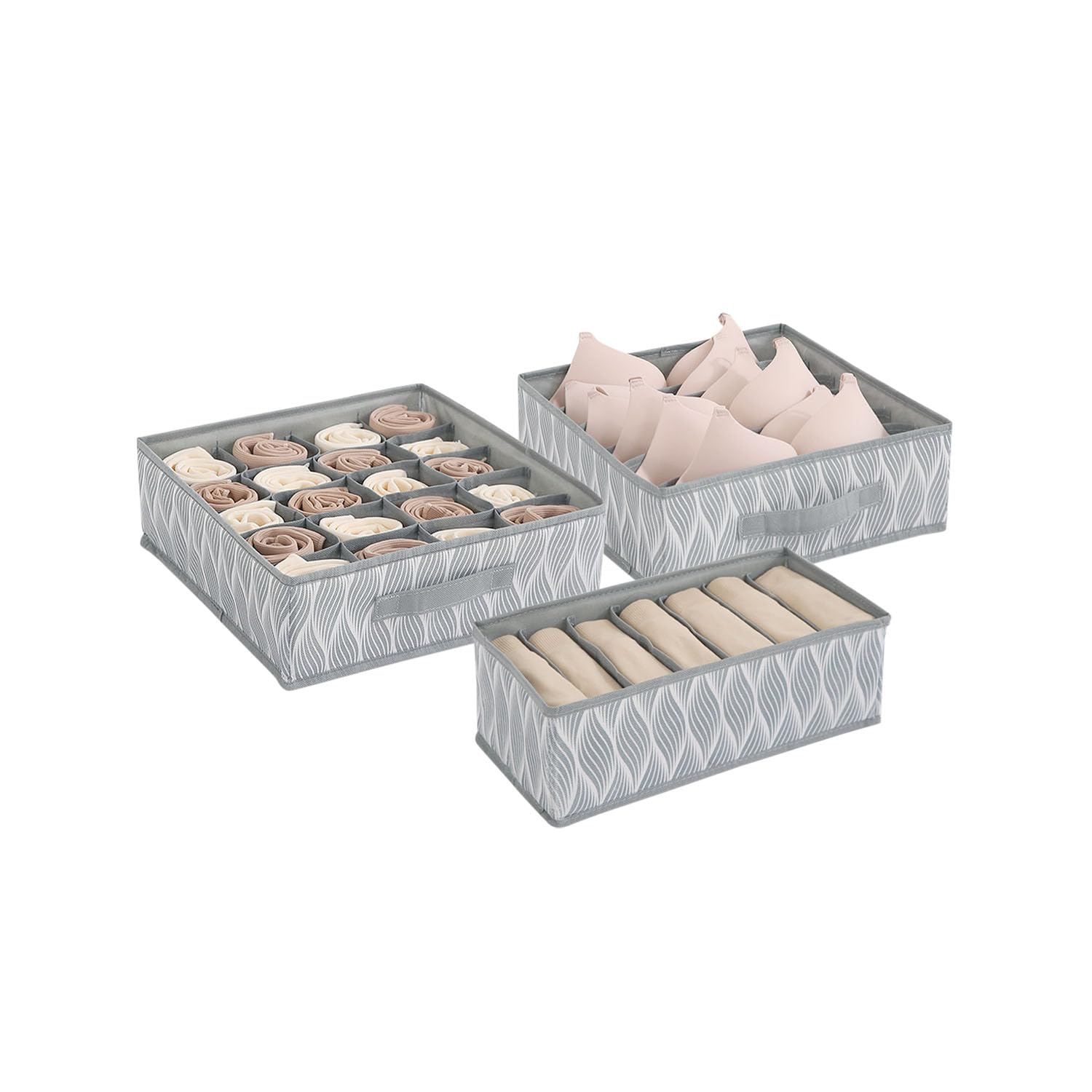 Lingerie Organizer for Women – Bra Organizer for Wardrobe & Drawers | Foldable Innerwear Organiser for Bras, Camisoles | Non-Woven Fabric, Grey leaves