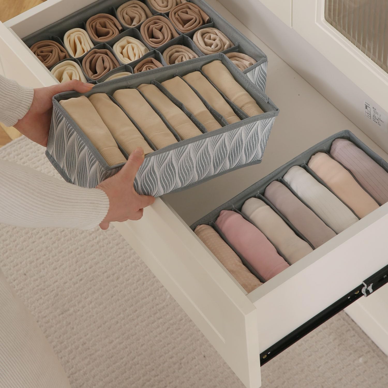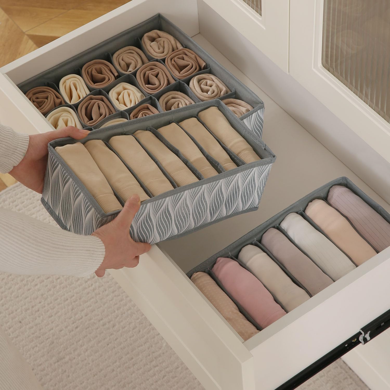 - Package Contains: Foldable Non-Woven Fabric drawer organizer.