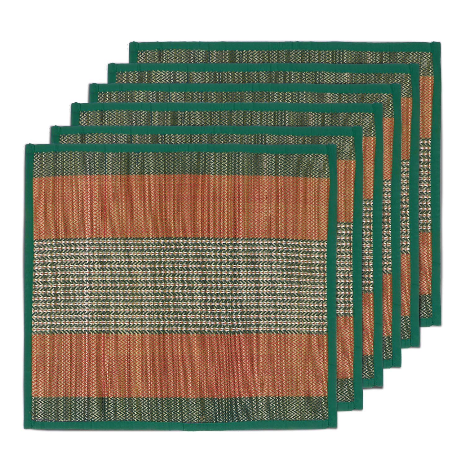 Natural River Grass Handcrafted Pooja Floor Mats/Meditation Prayer Mat/Sittting Mat/Aasan Mat Chatai for Pack of 2/4/6/8, Green