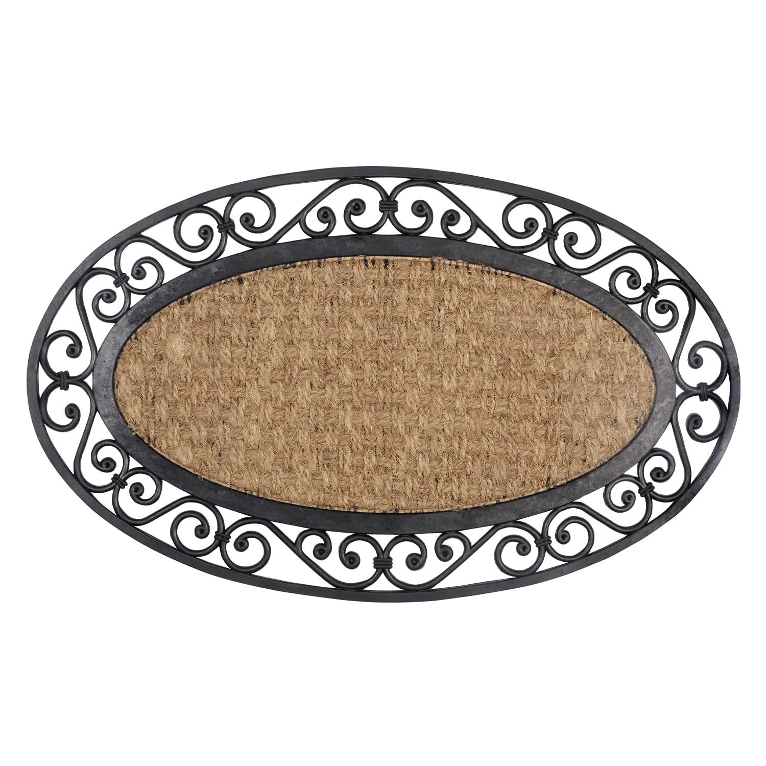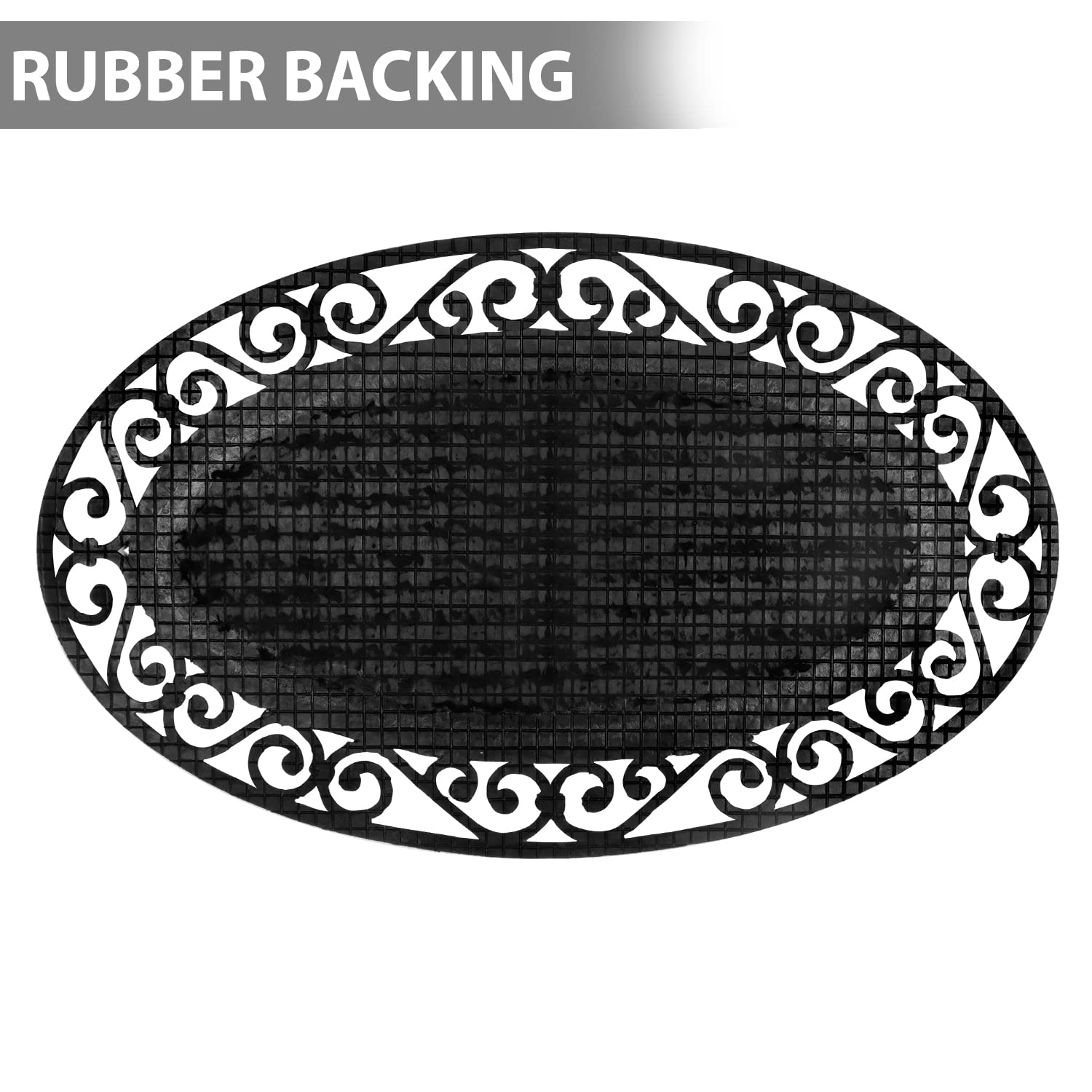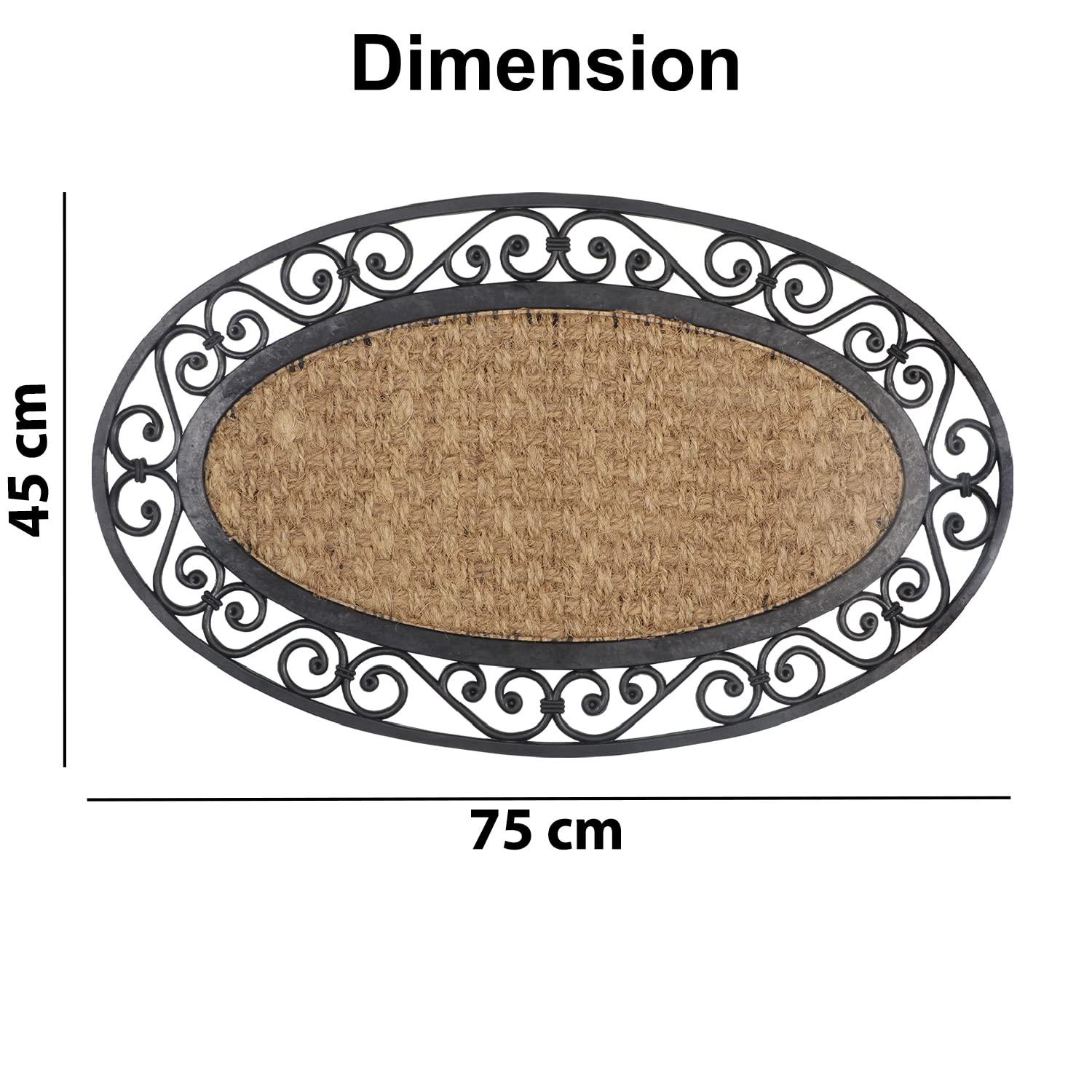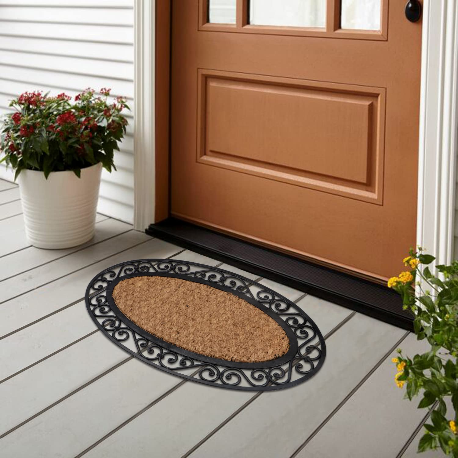 Natural Rubber Coir Oval Doormat with Designer Border, Anti-Slip Rubber Backing, 45x75 cm