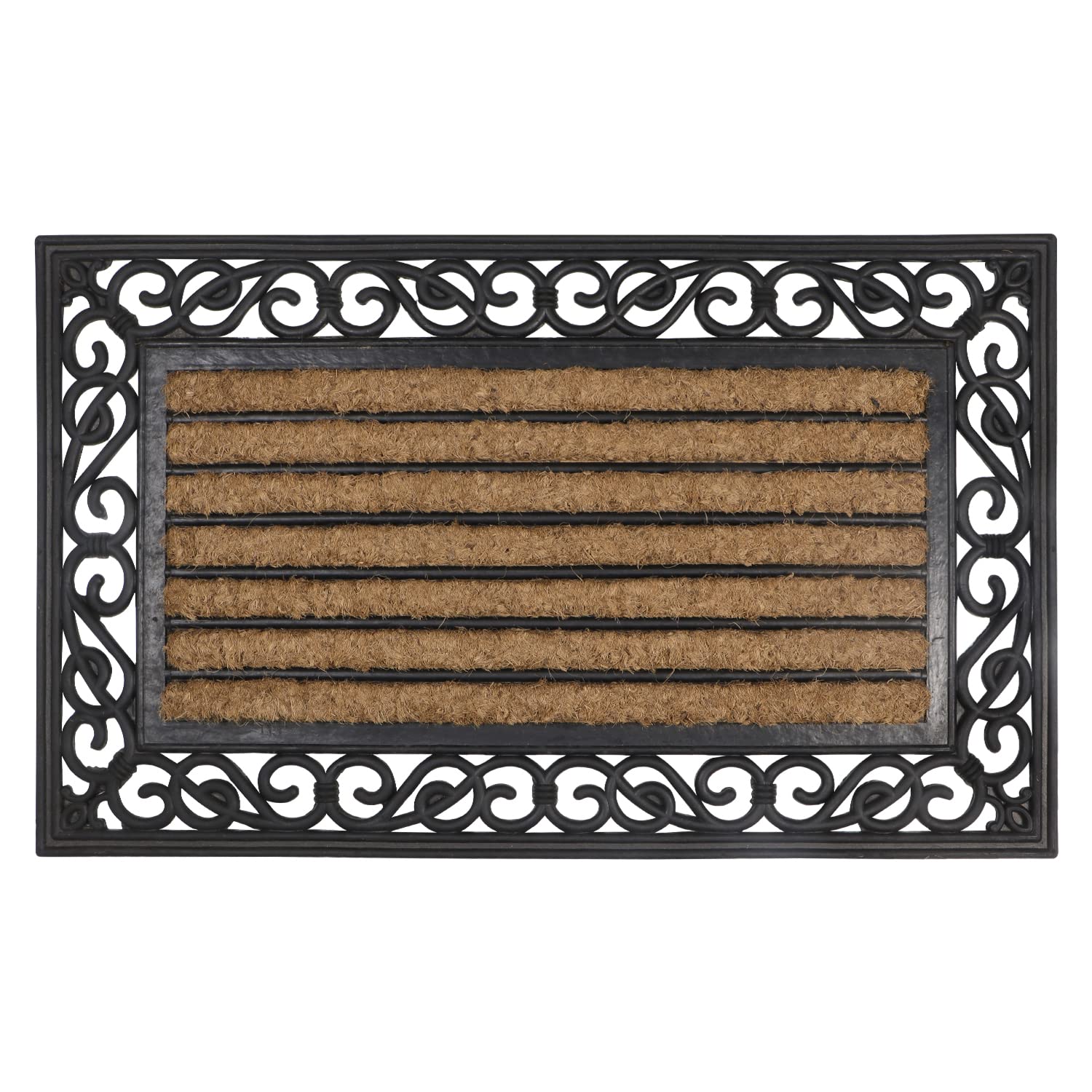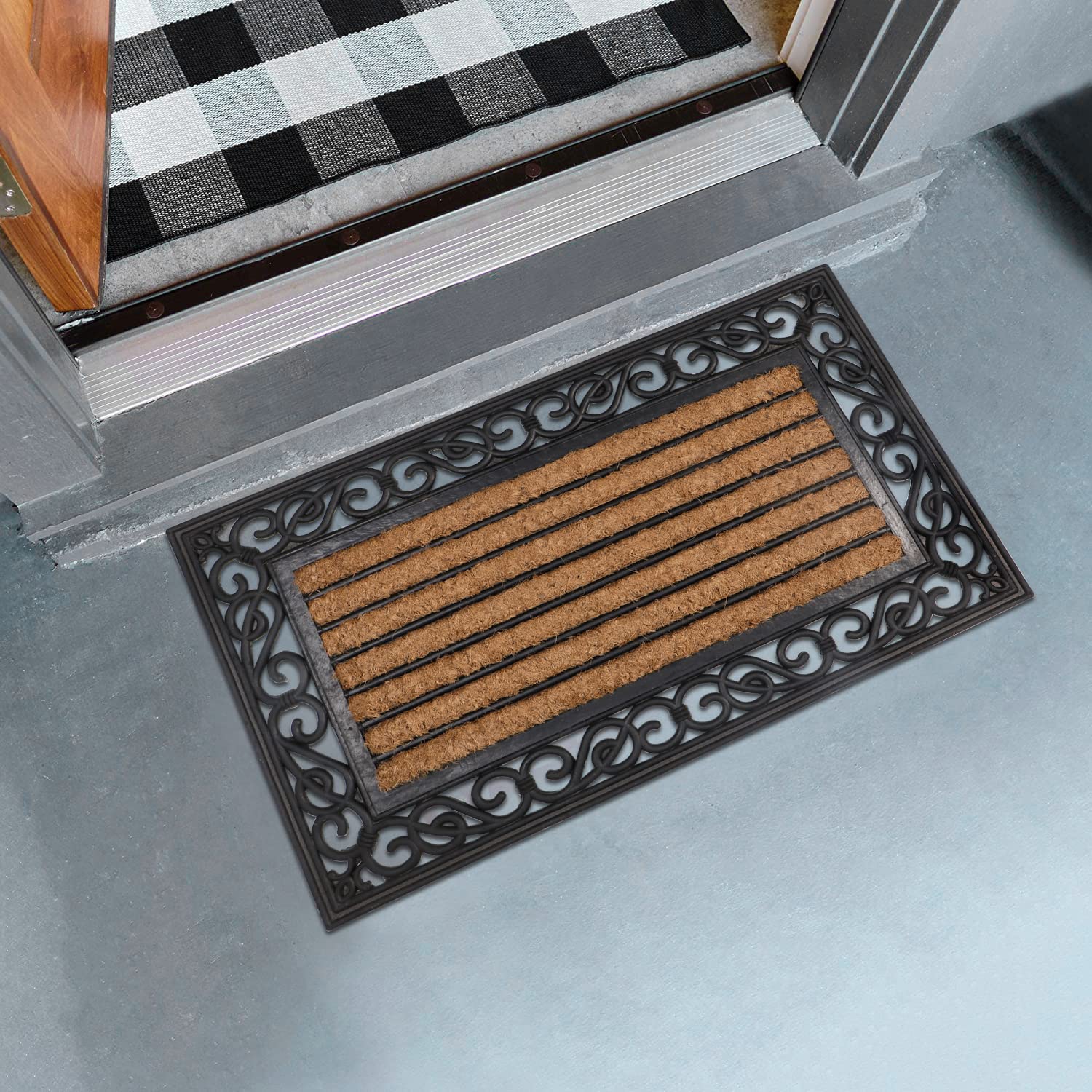 • NATURAL COIR RUBBER DOORMAT – Made from 100% natural coco coir fiber and durable rubber, this decorative mat is perfect for your front porch or entryway.