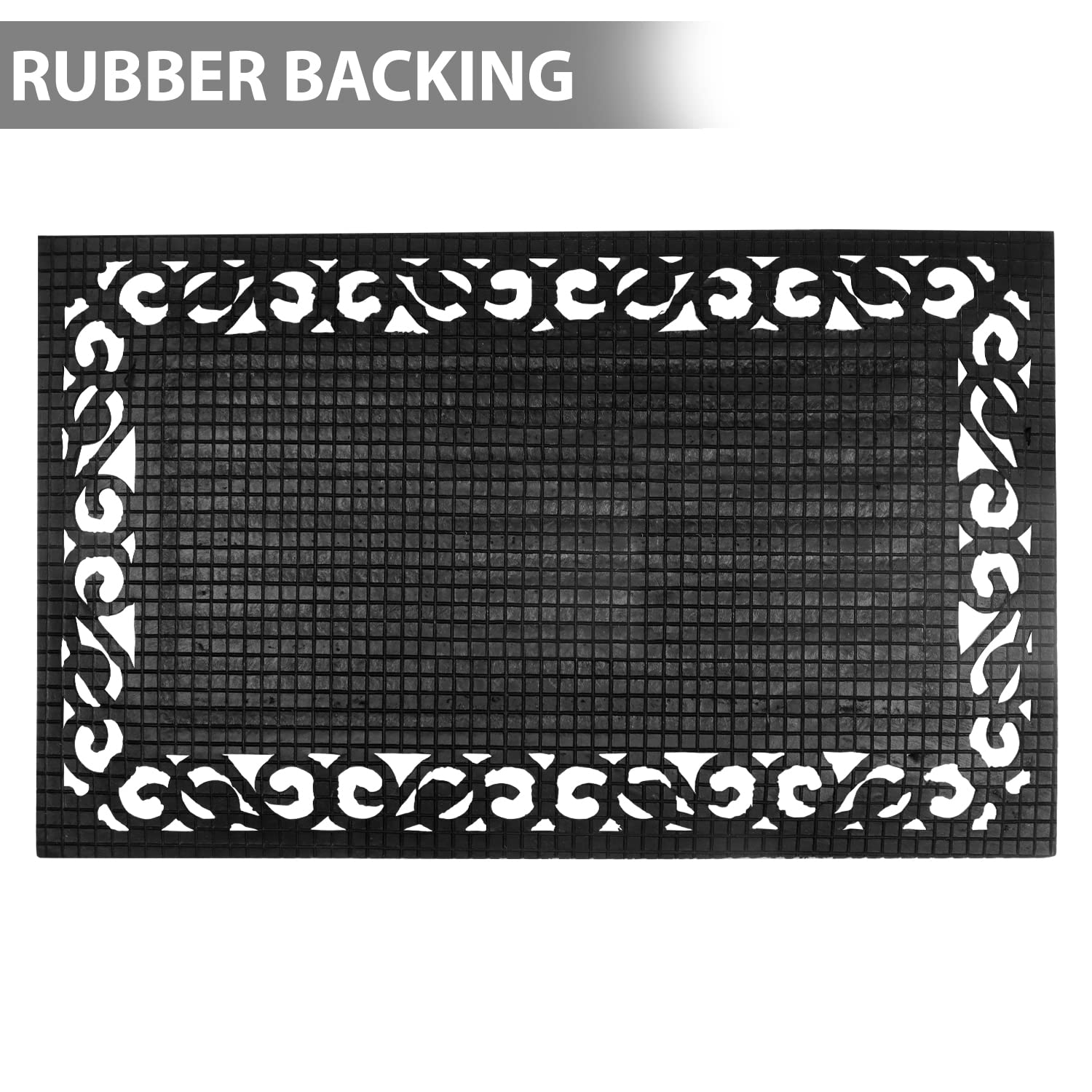 • HEAVY RUBBER BORDER – Non-skid rubber backing prevents slips and holds the mat securely.