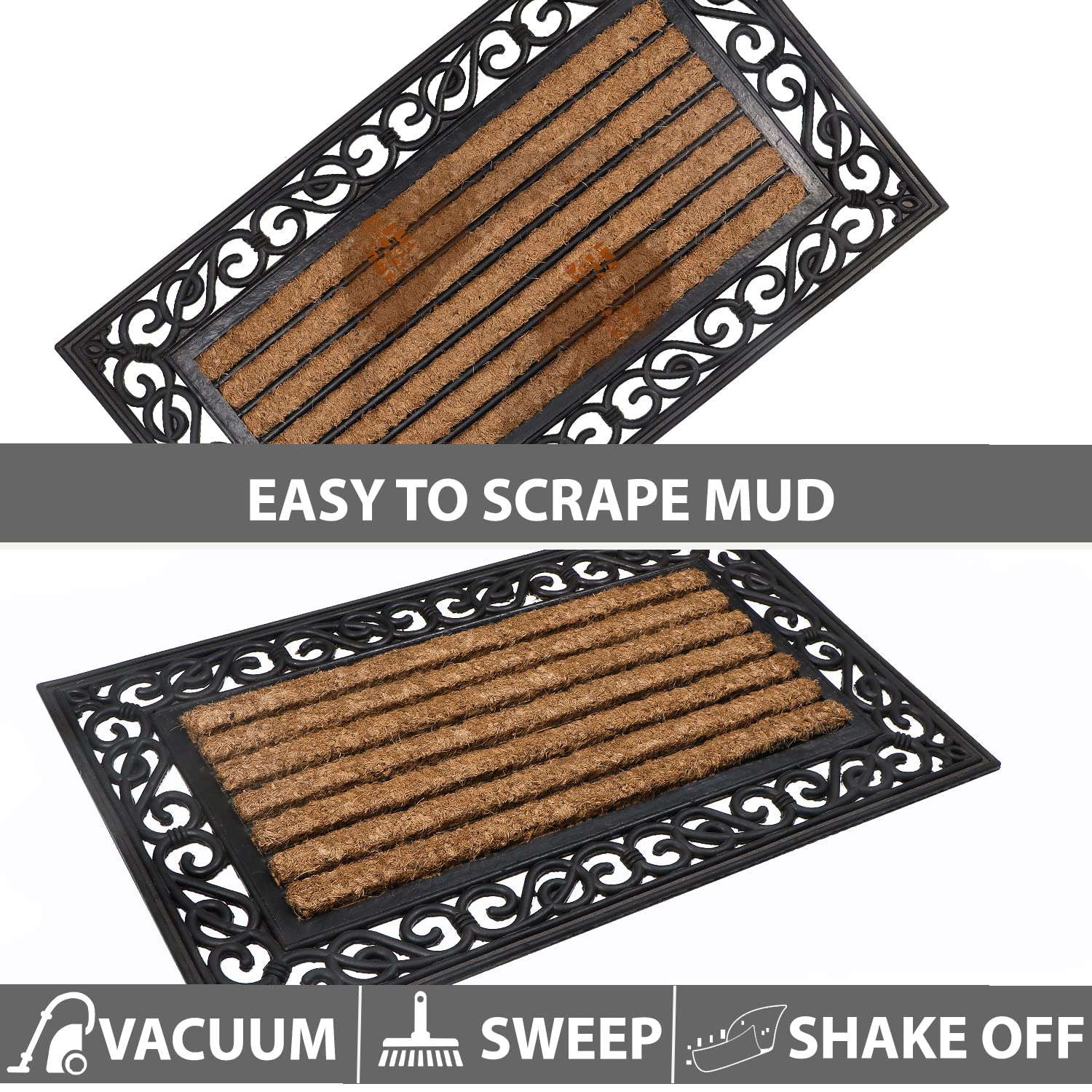 • EFFECTIVE DIRT REMOVAL – The textured coir surface easily scrapes off dirt, mud, and moisture from shoes, keeping your home cleaner.
