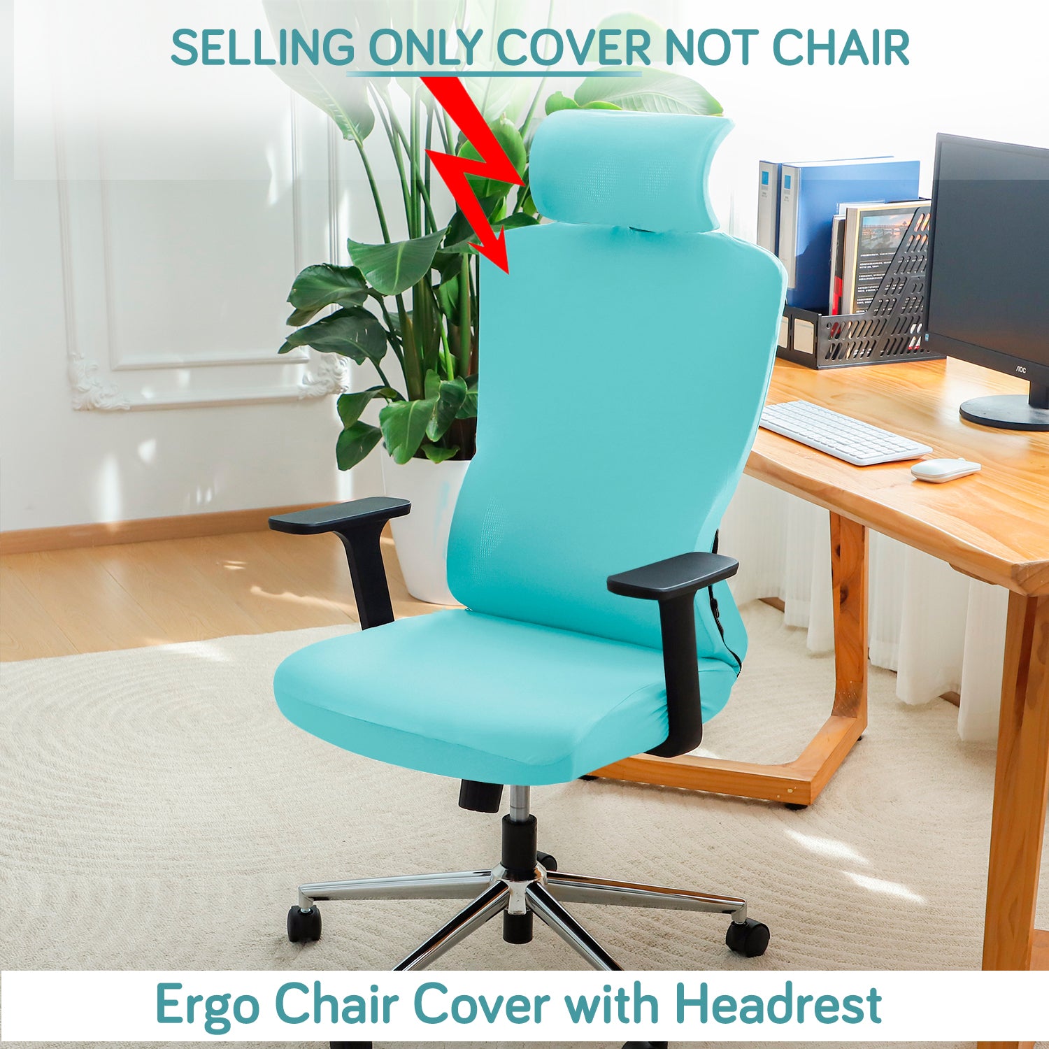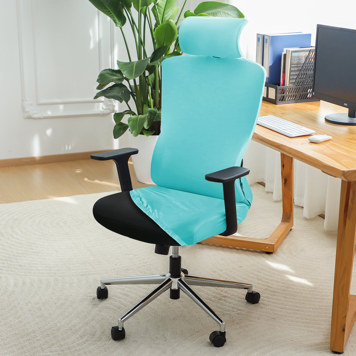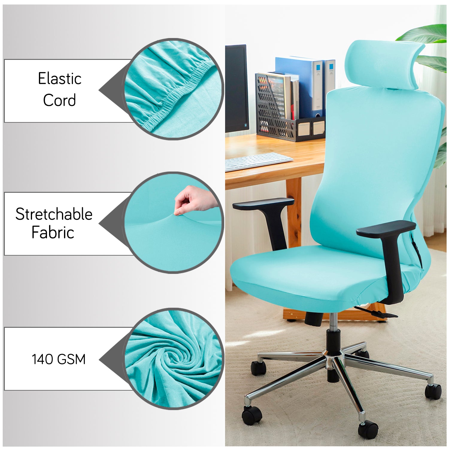 Office Chair Cover with Headrest (High-Back) – 140 GSM Stretch Fabric – Washable, Anti-Slip Fit for Ergonomic Mesh Office Chairs, Sky Blue