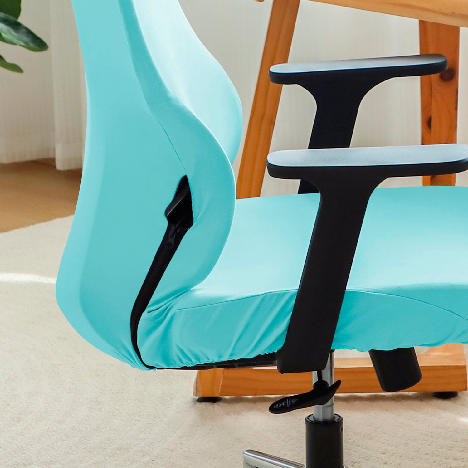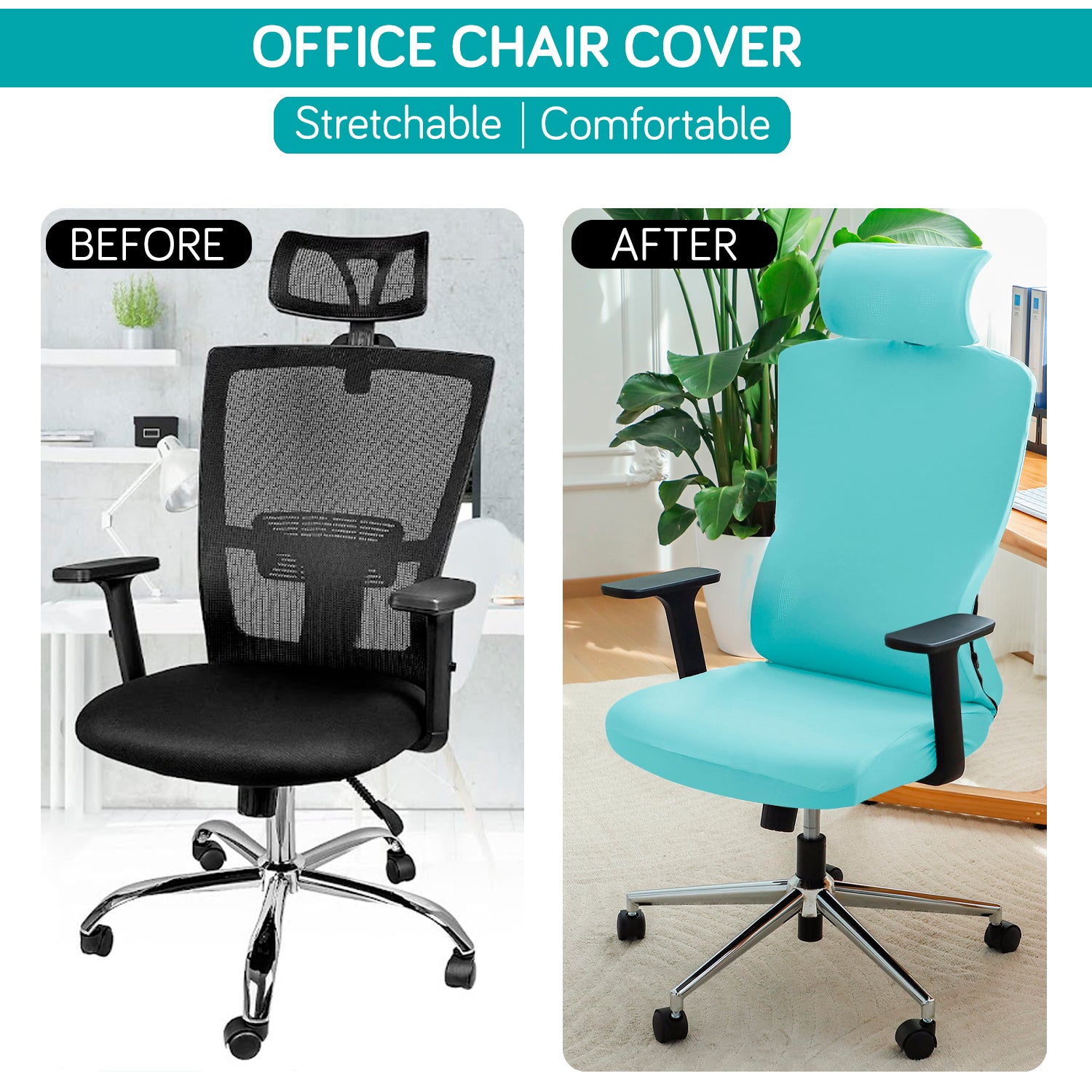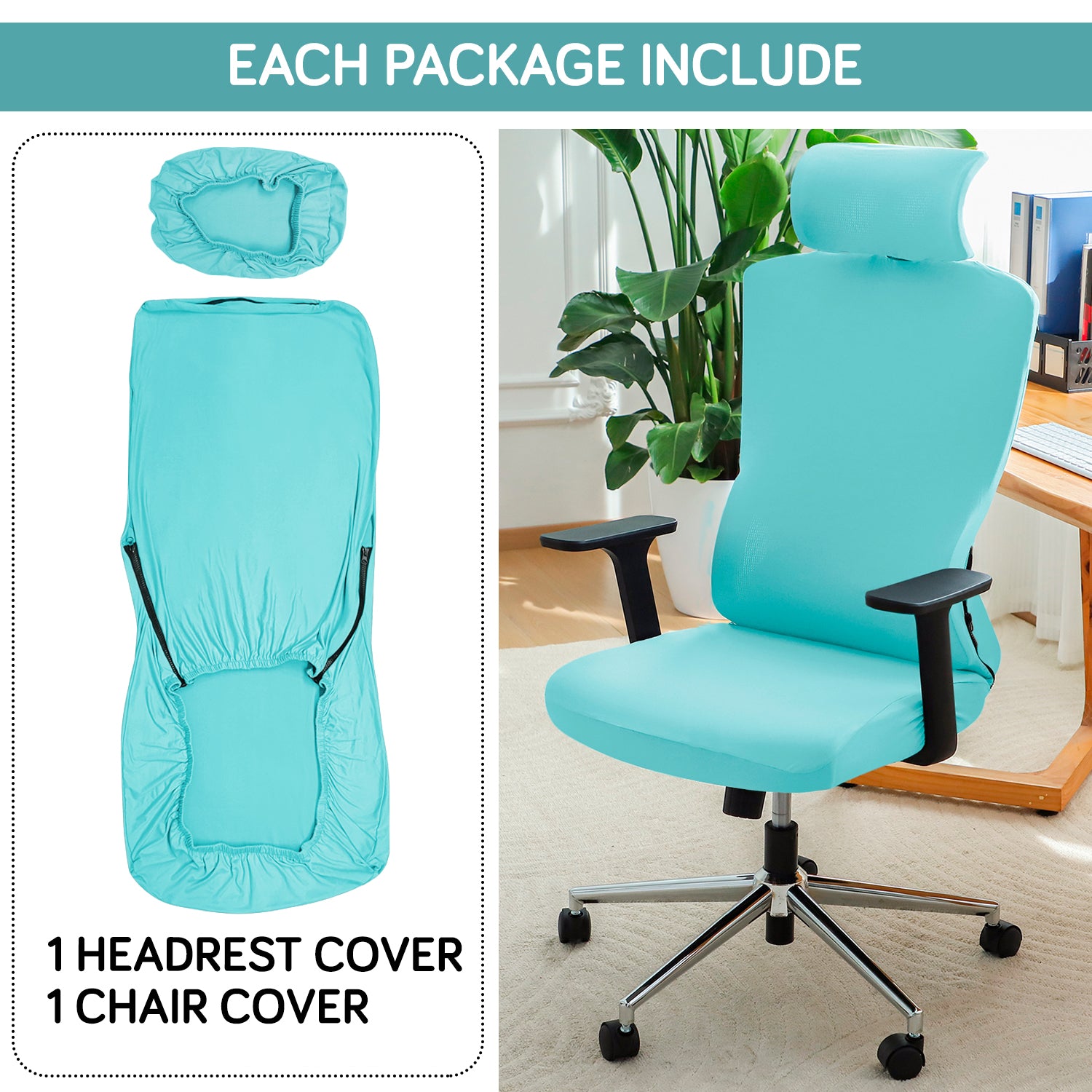Office Chair Cover with Headrest (High-Back) – 140 GSM Stretch Fabric – Washable, Anti-Slip Fit for Ergonomic Mesh Office Chairs, Sky Blue