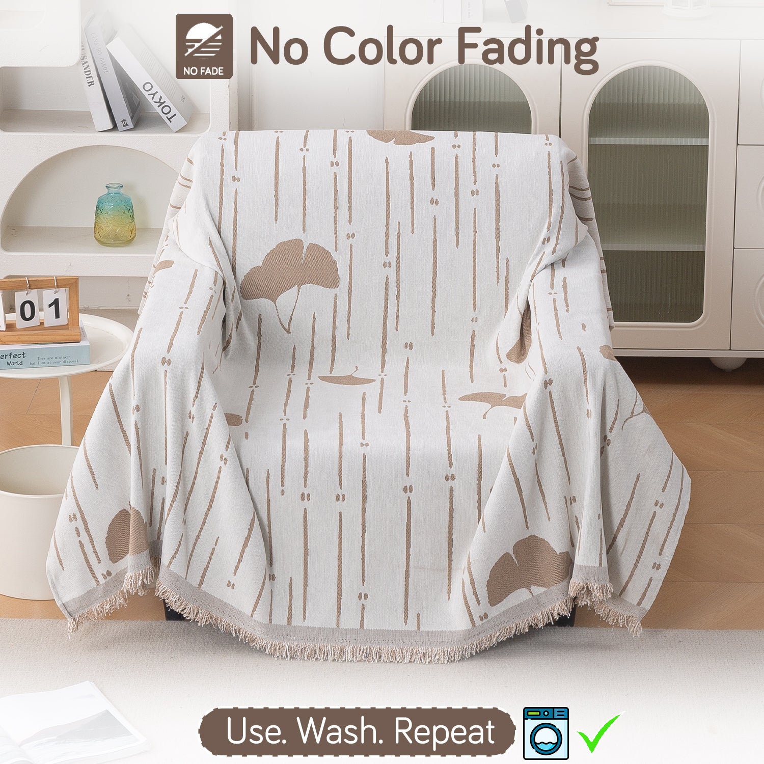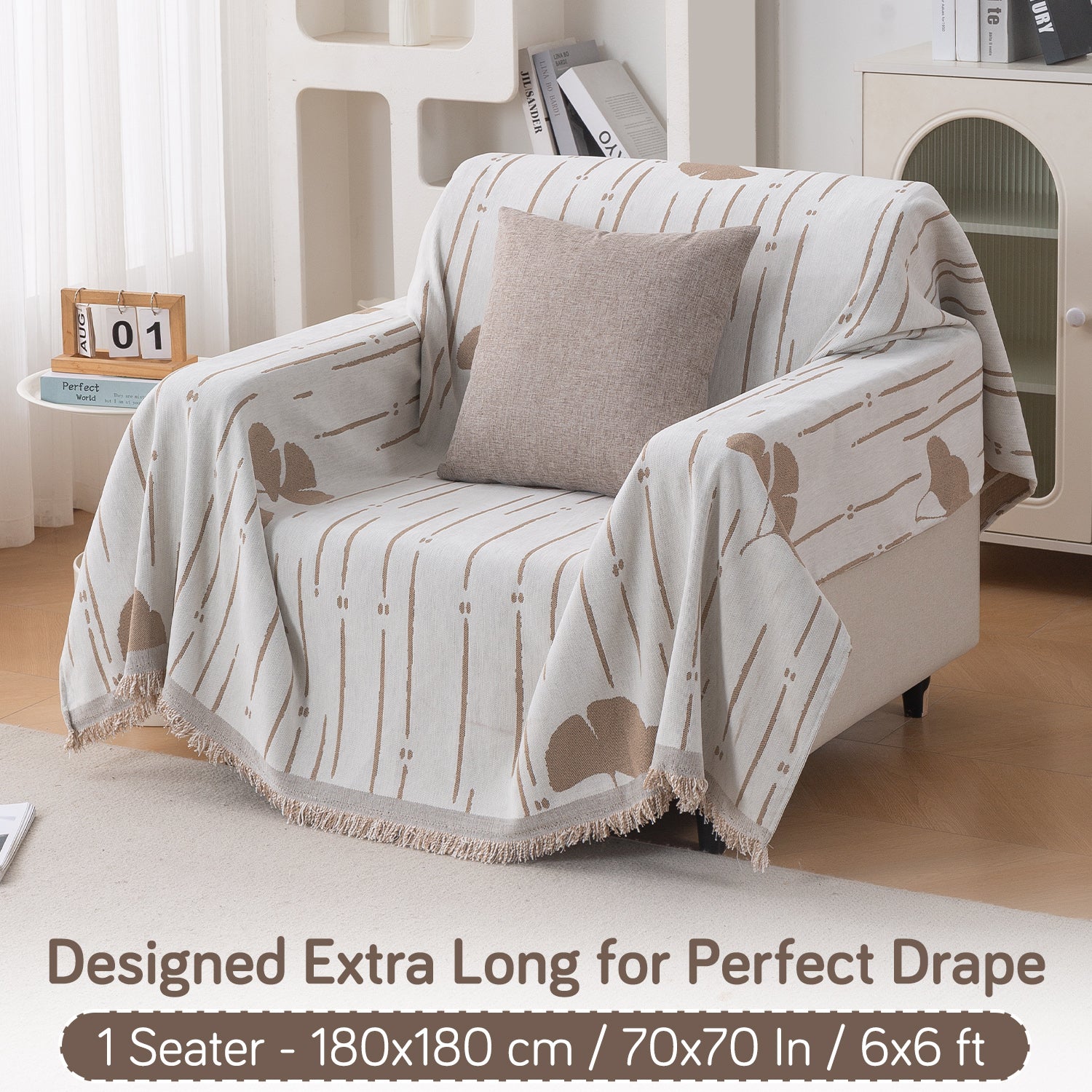 Premium 320 GSM Chenille Sofa Cover Throw All Season 'Serene Abode Series', Beige Ginkgo Lines