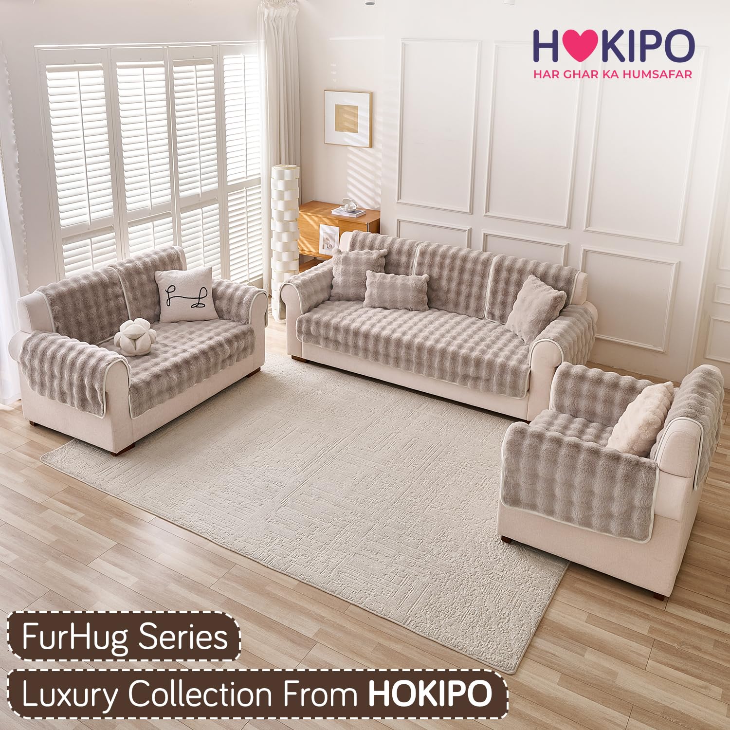 - Package contains - 1PC HOKIPO Faux Rabbit Fur sofa mat.