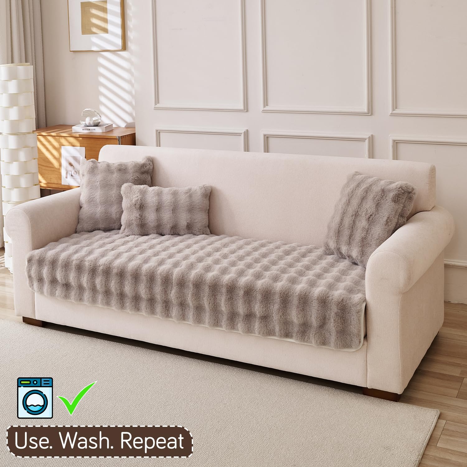 - Premium Look & Easy Fit – Made of soft faux rabbit fur with an anti-slip backing to stay in place. Easy to put on, remove, and wash.