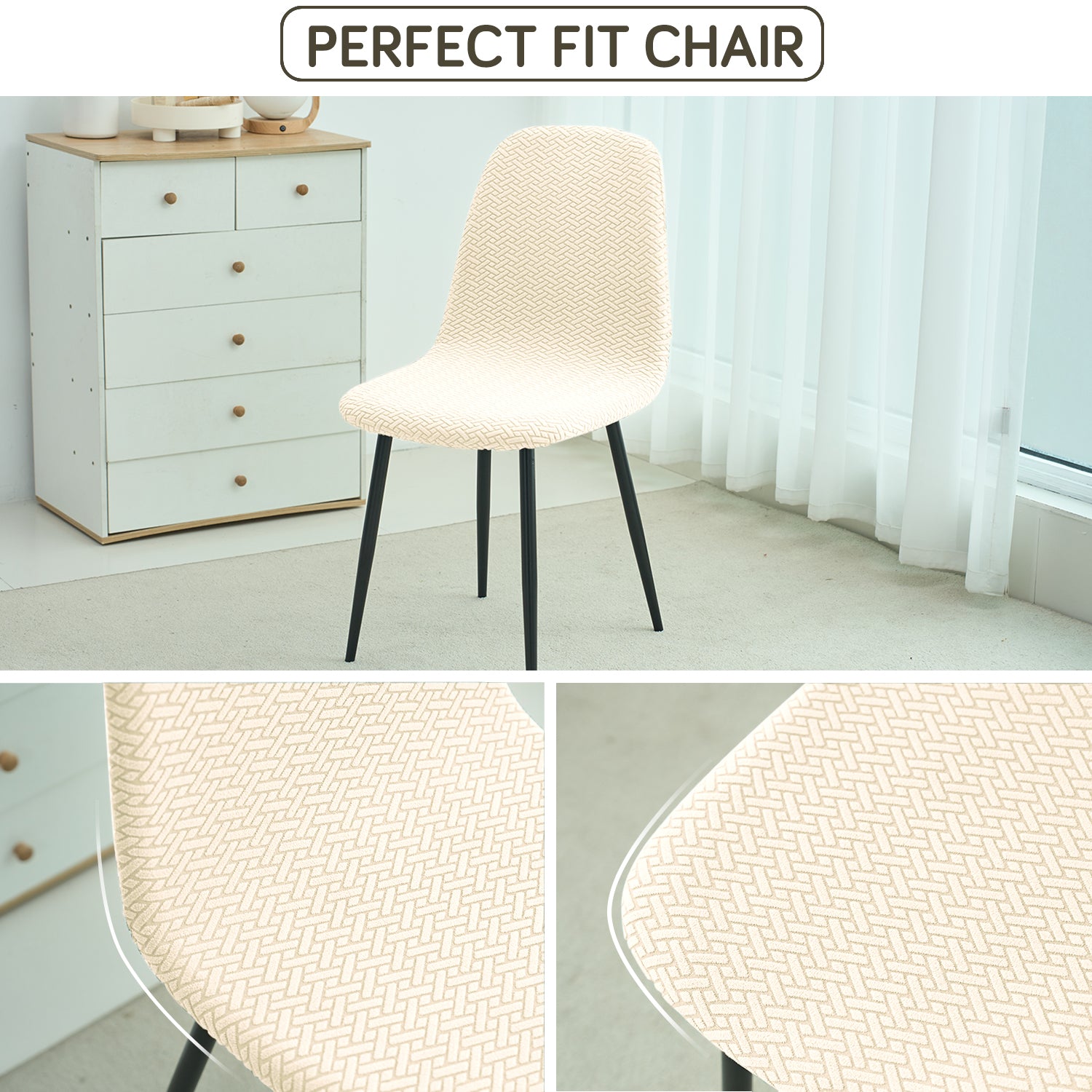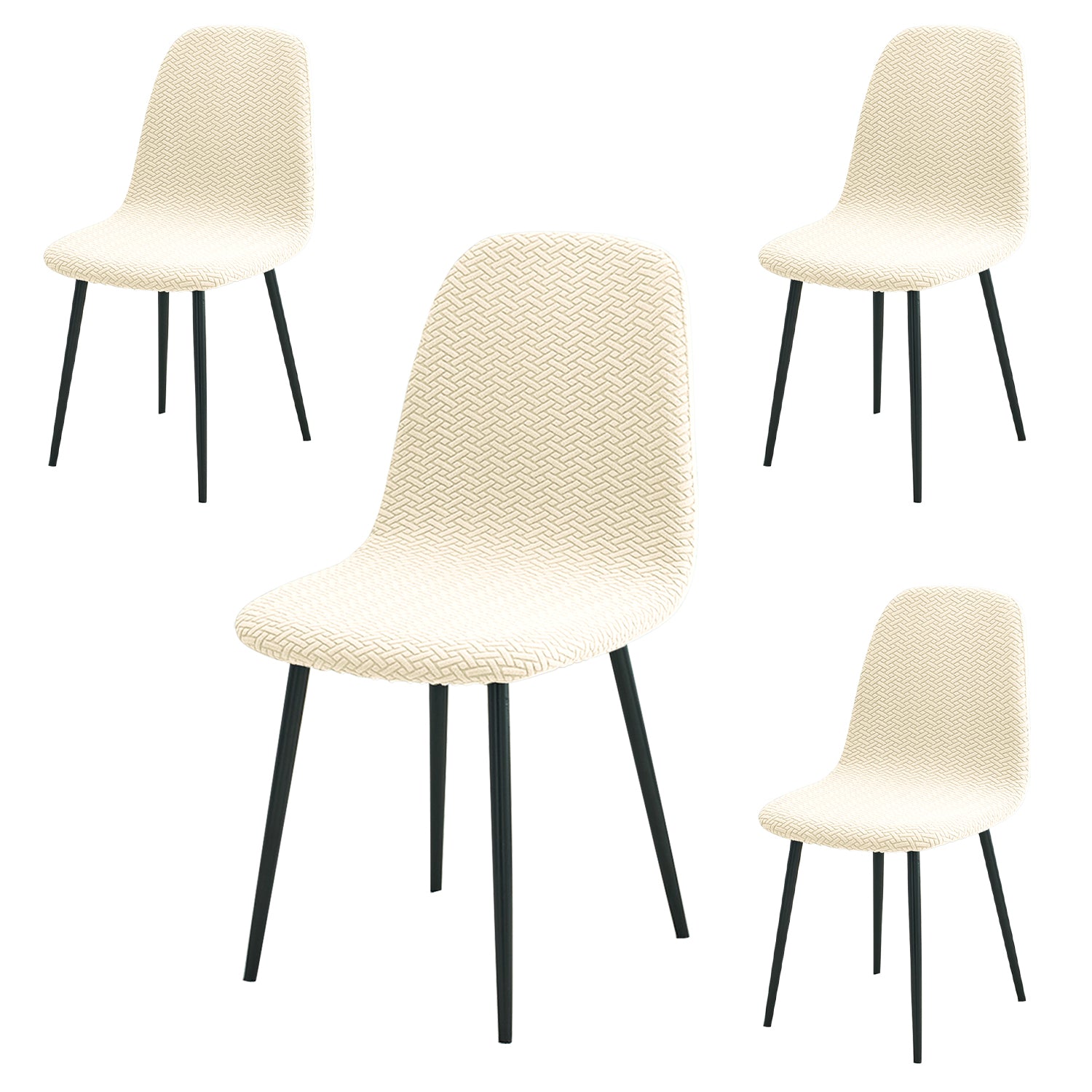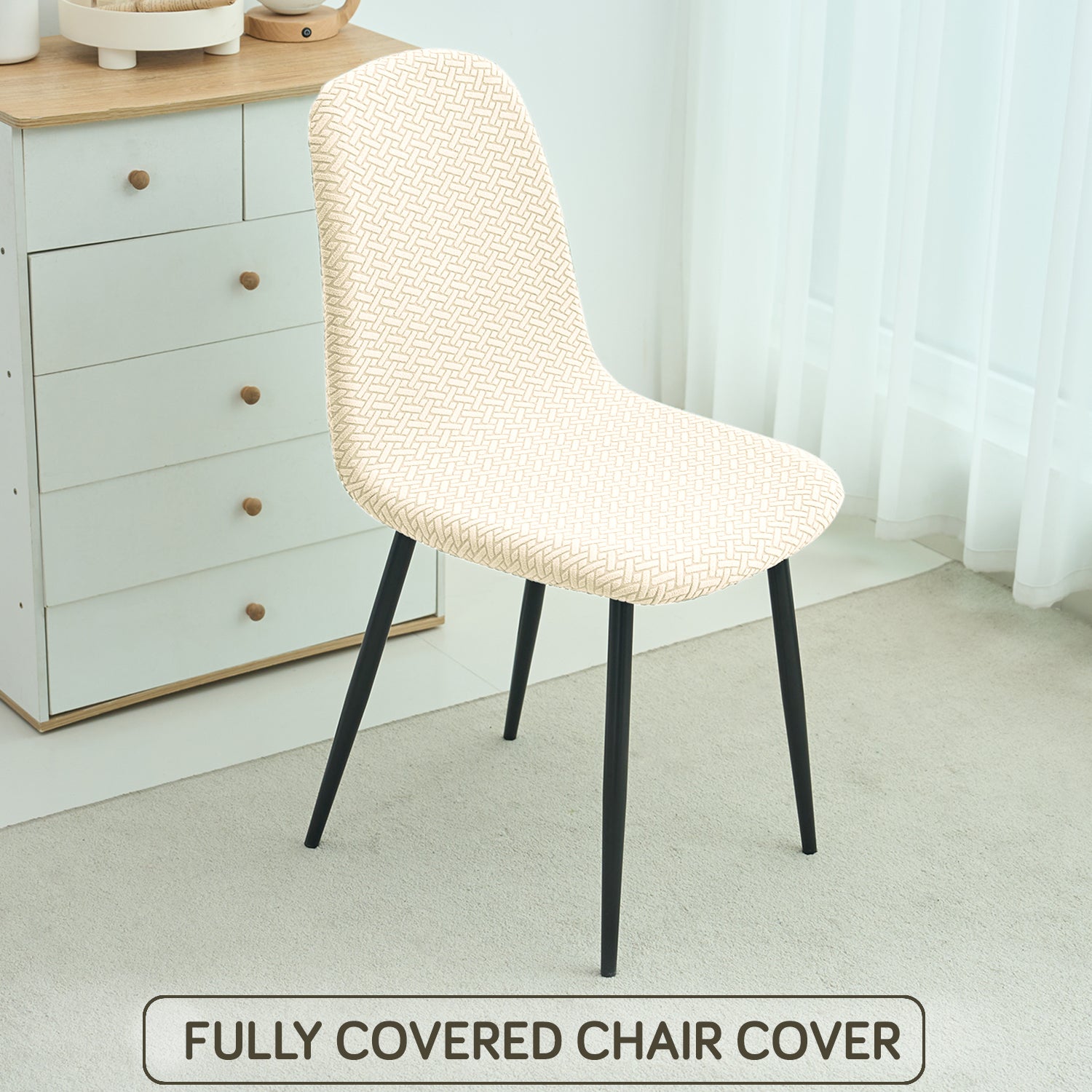 Premium Jacquard Fully Covered Cover for Mid Century Modern Dining Chair, Beige