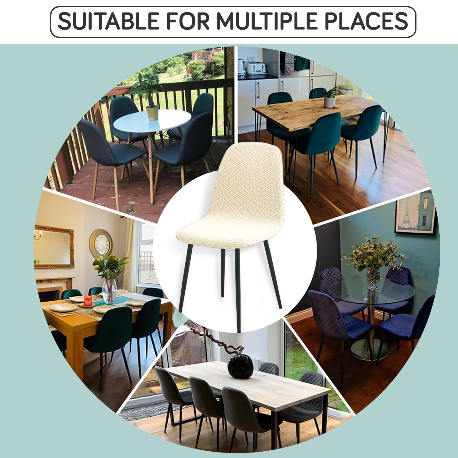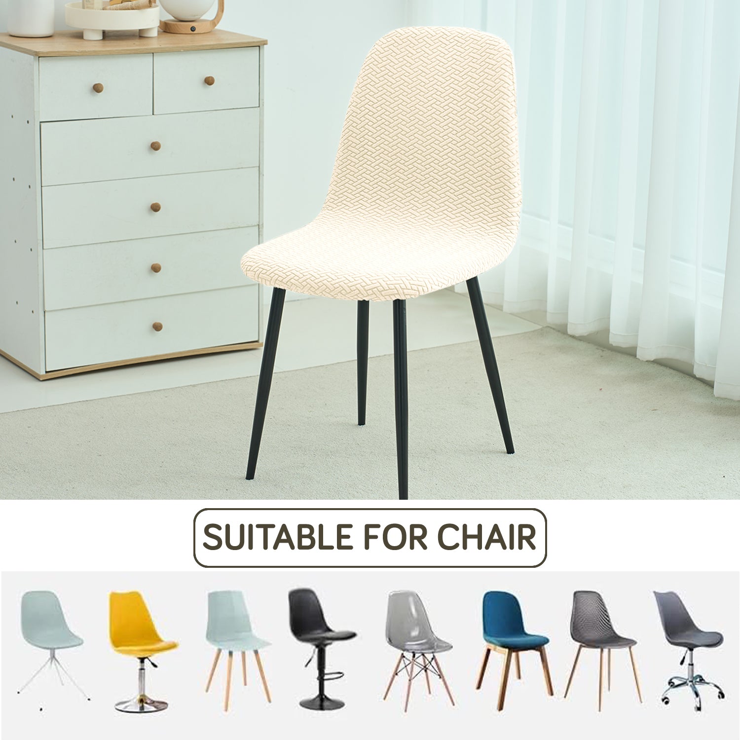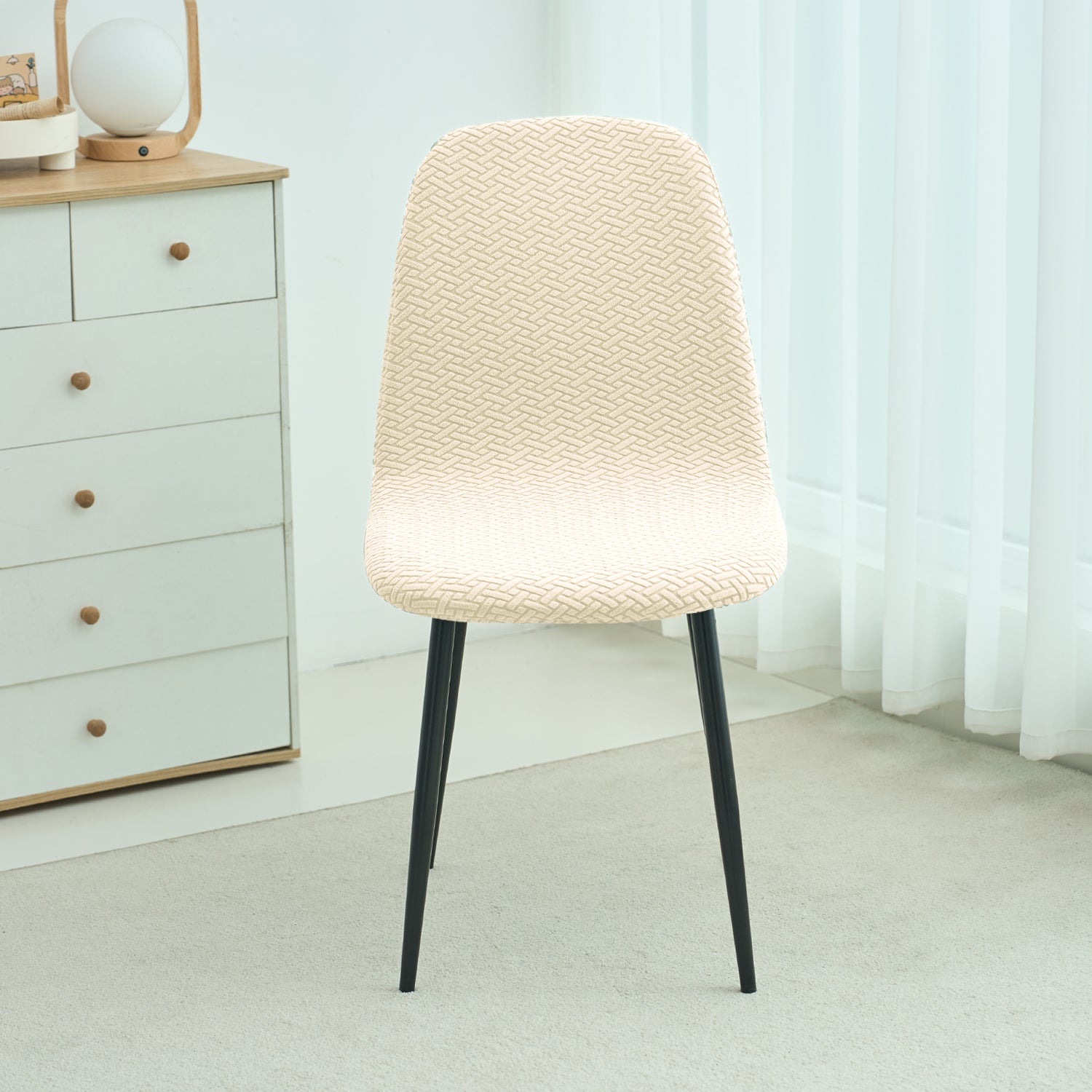 Premium Jacquard Fully Covered Cover for Mid Century Modern Dining Chair, Beige