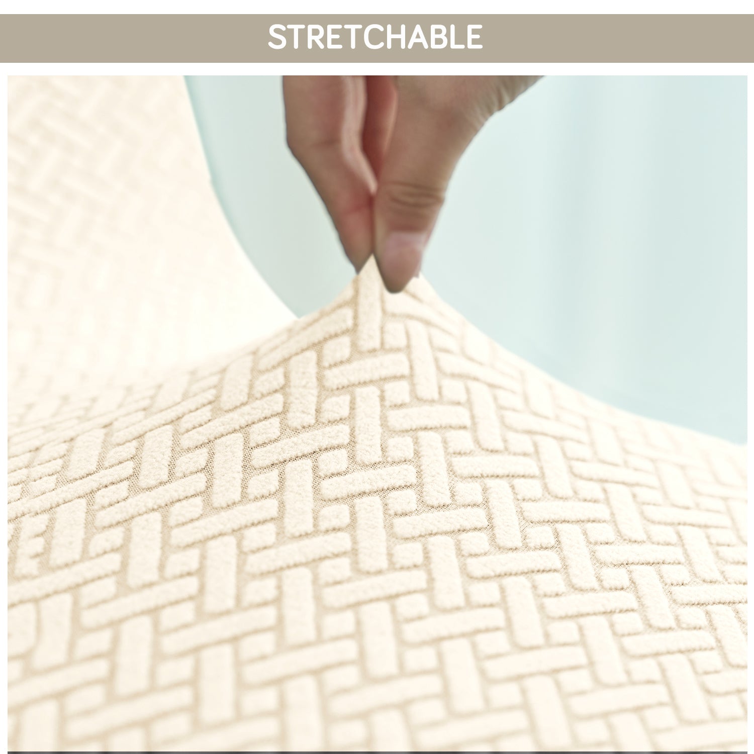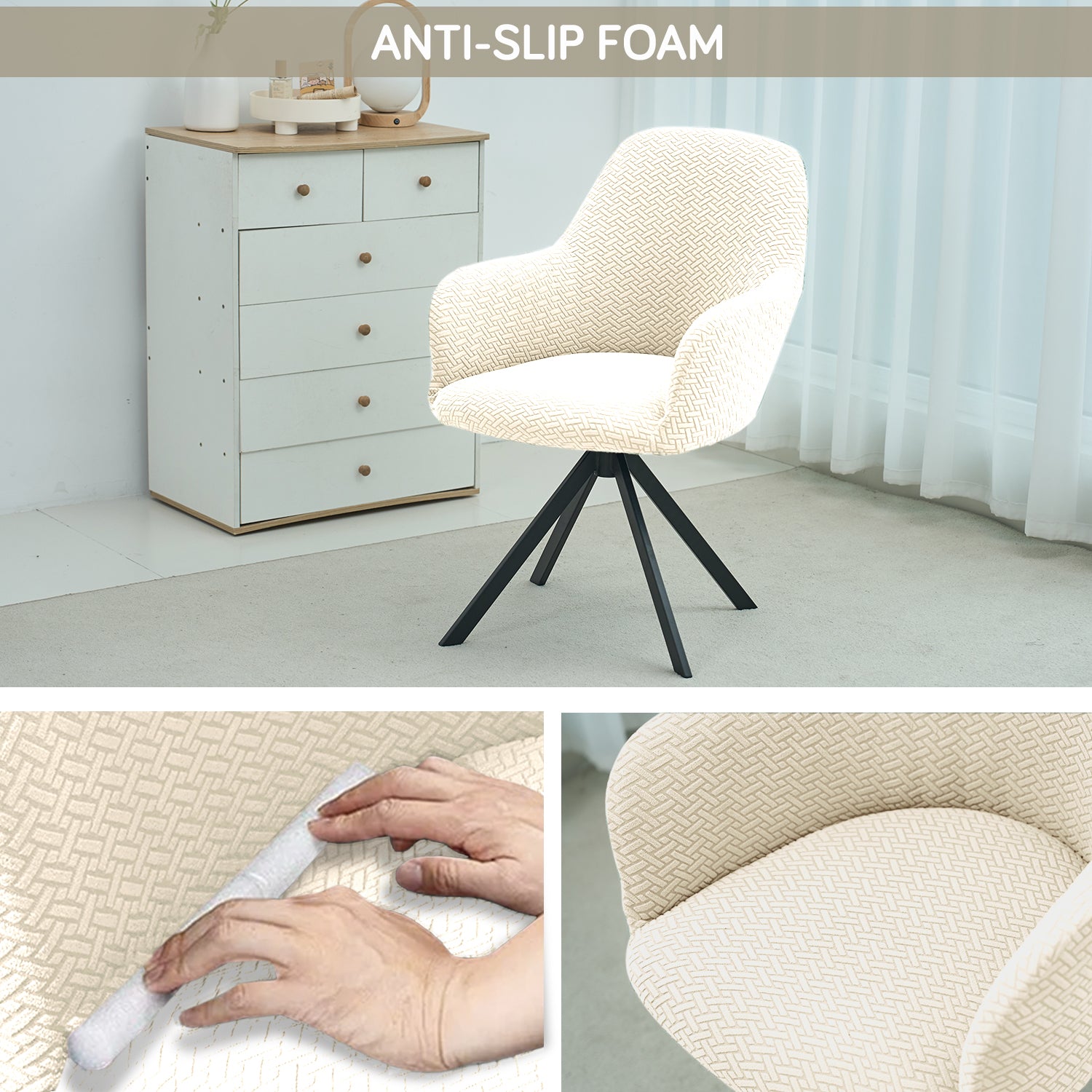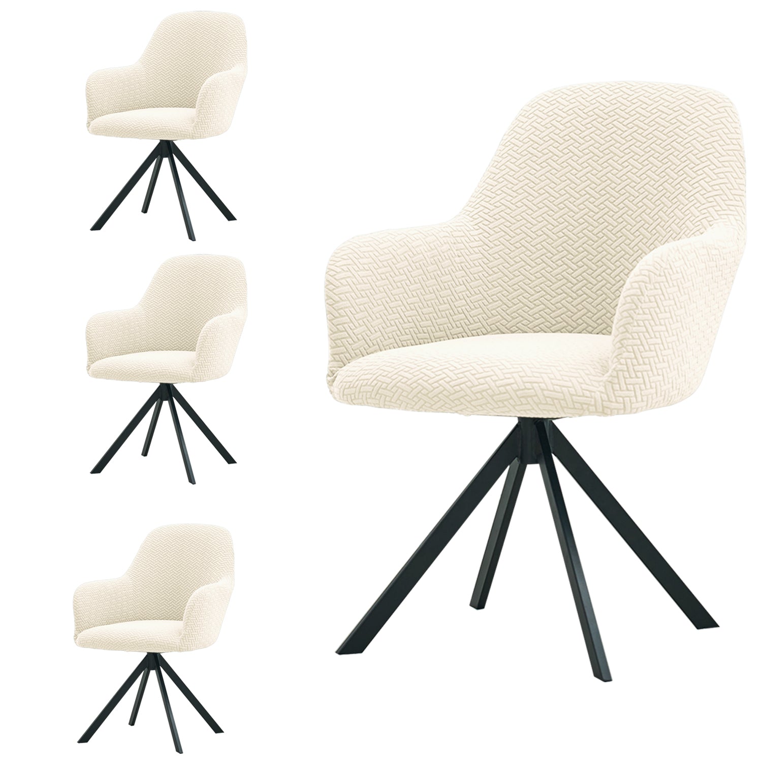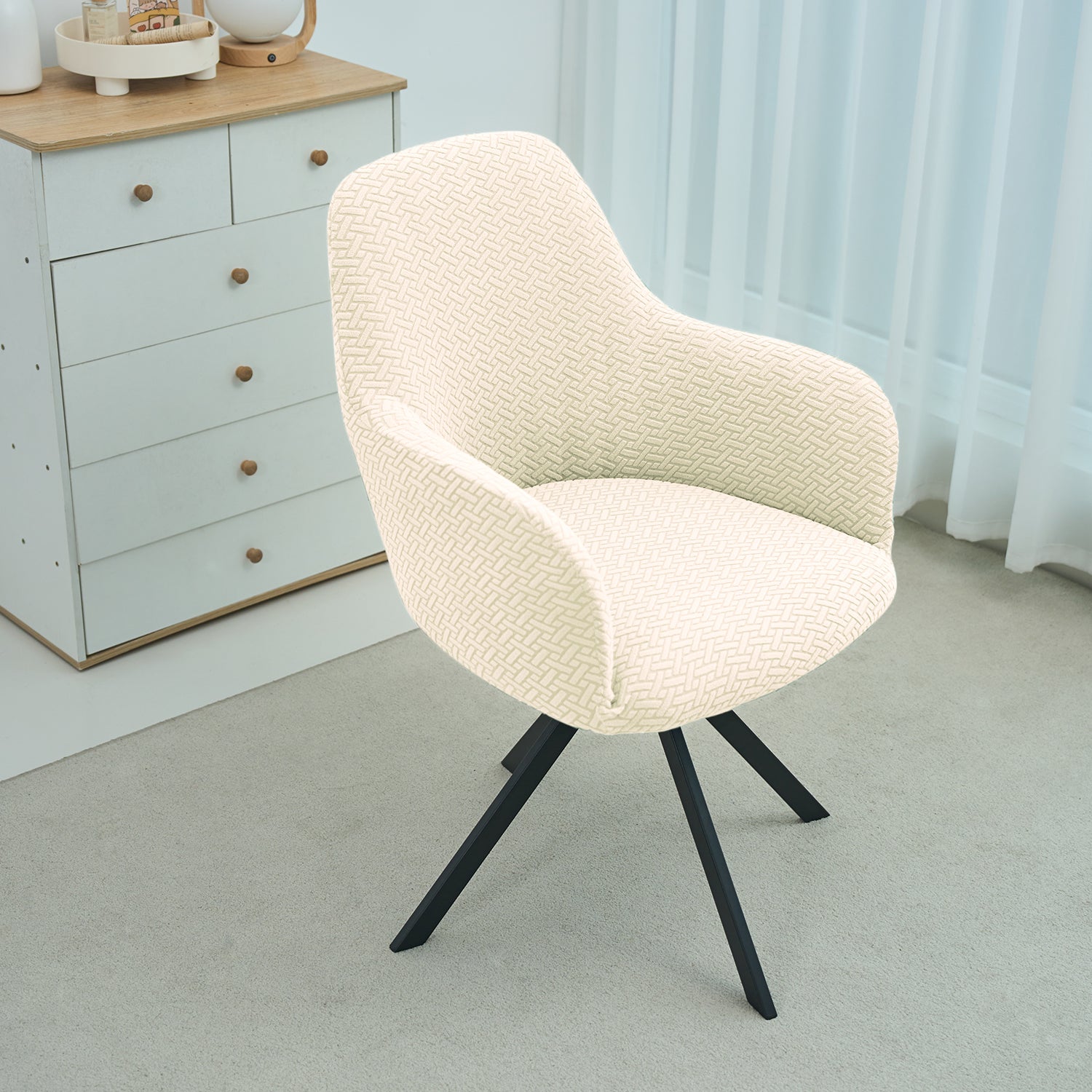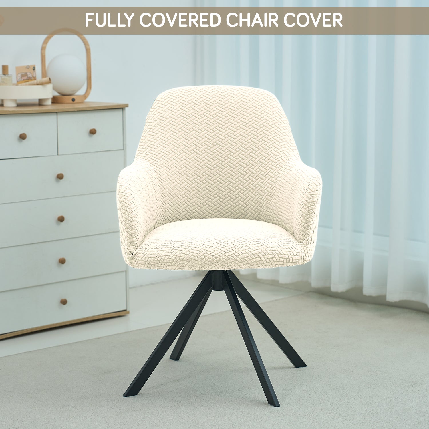 Premium Jacquard Fully Covered Cover for Swivel Dining Chair with Arms, Beige