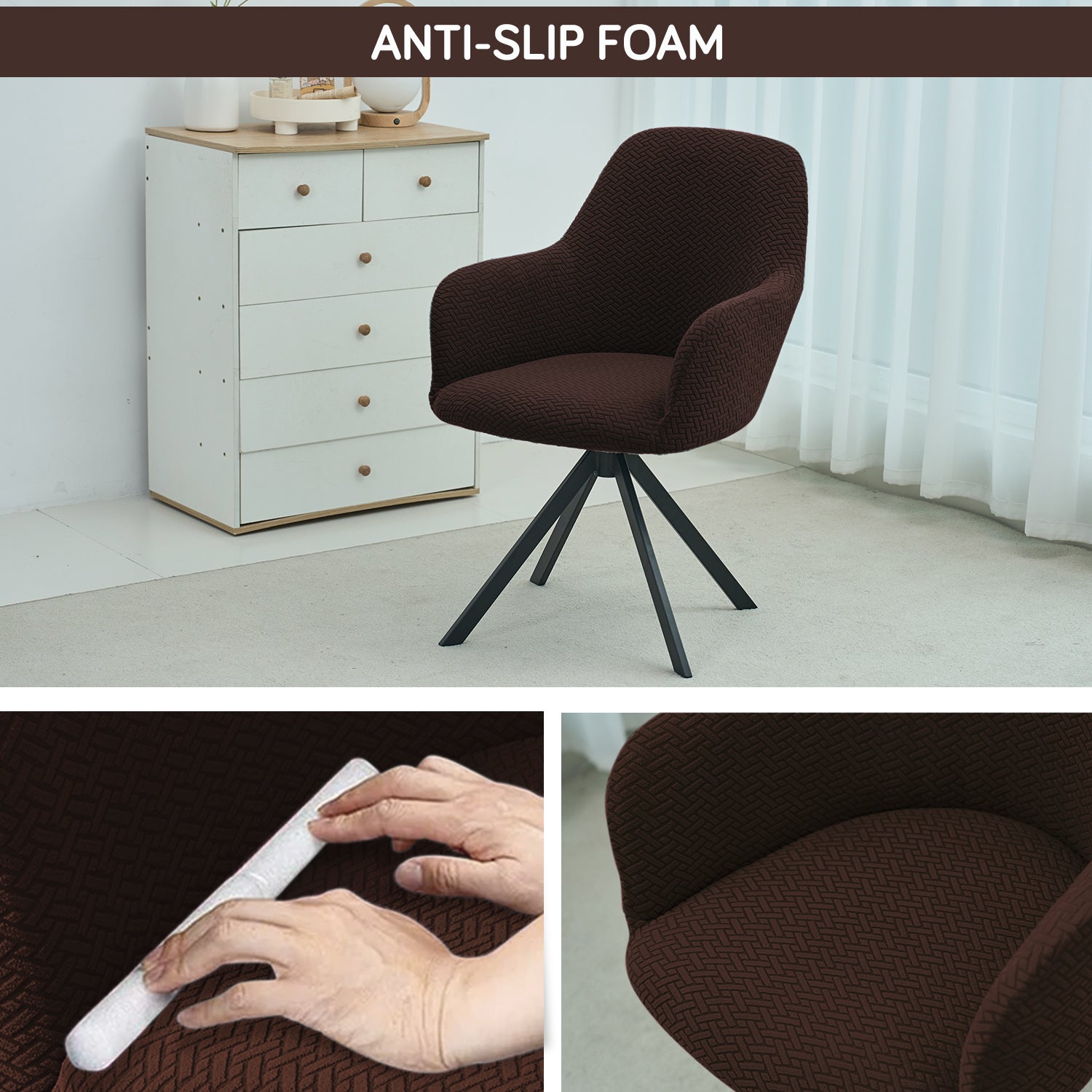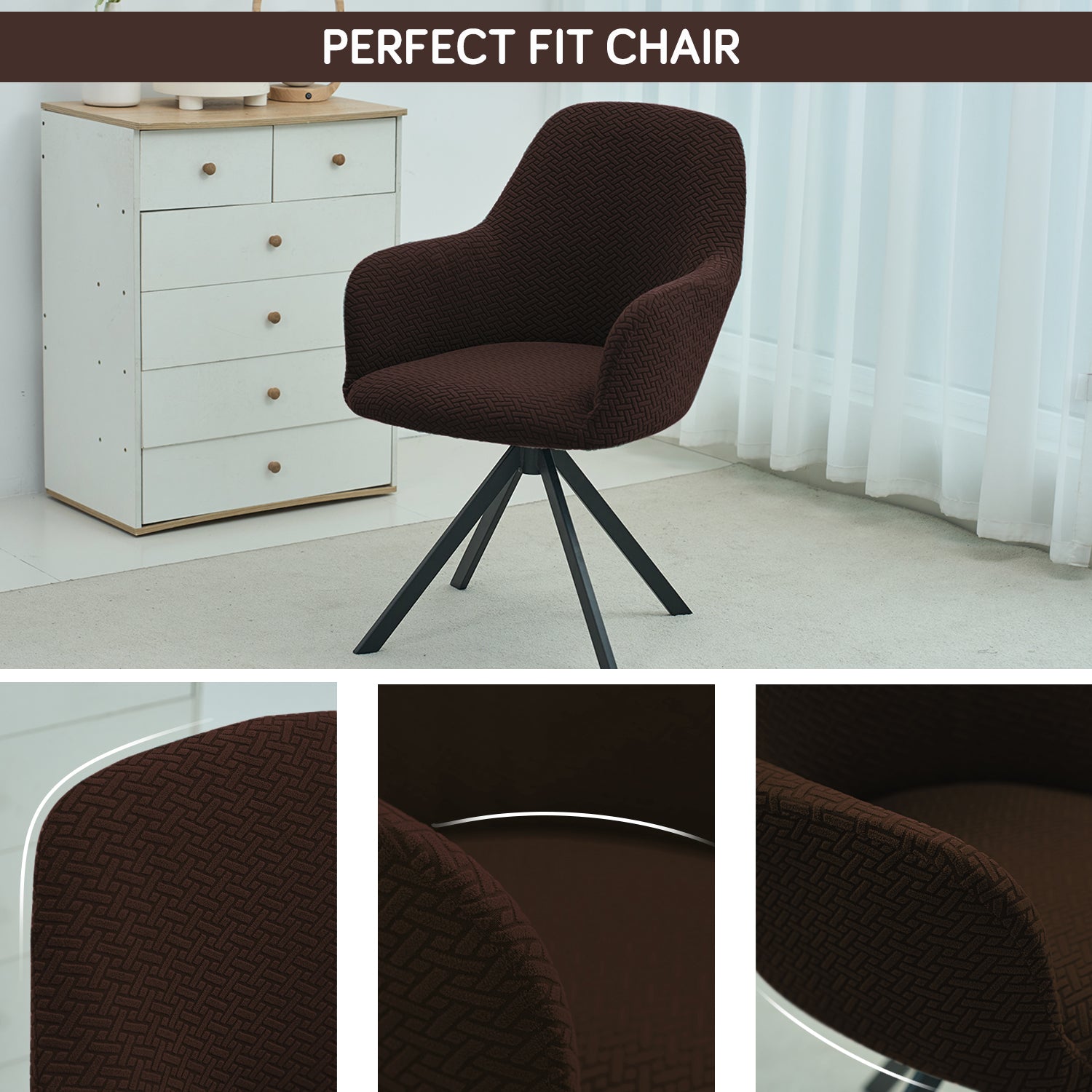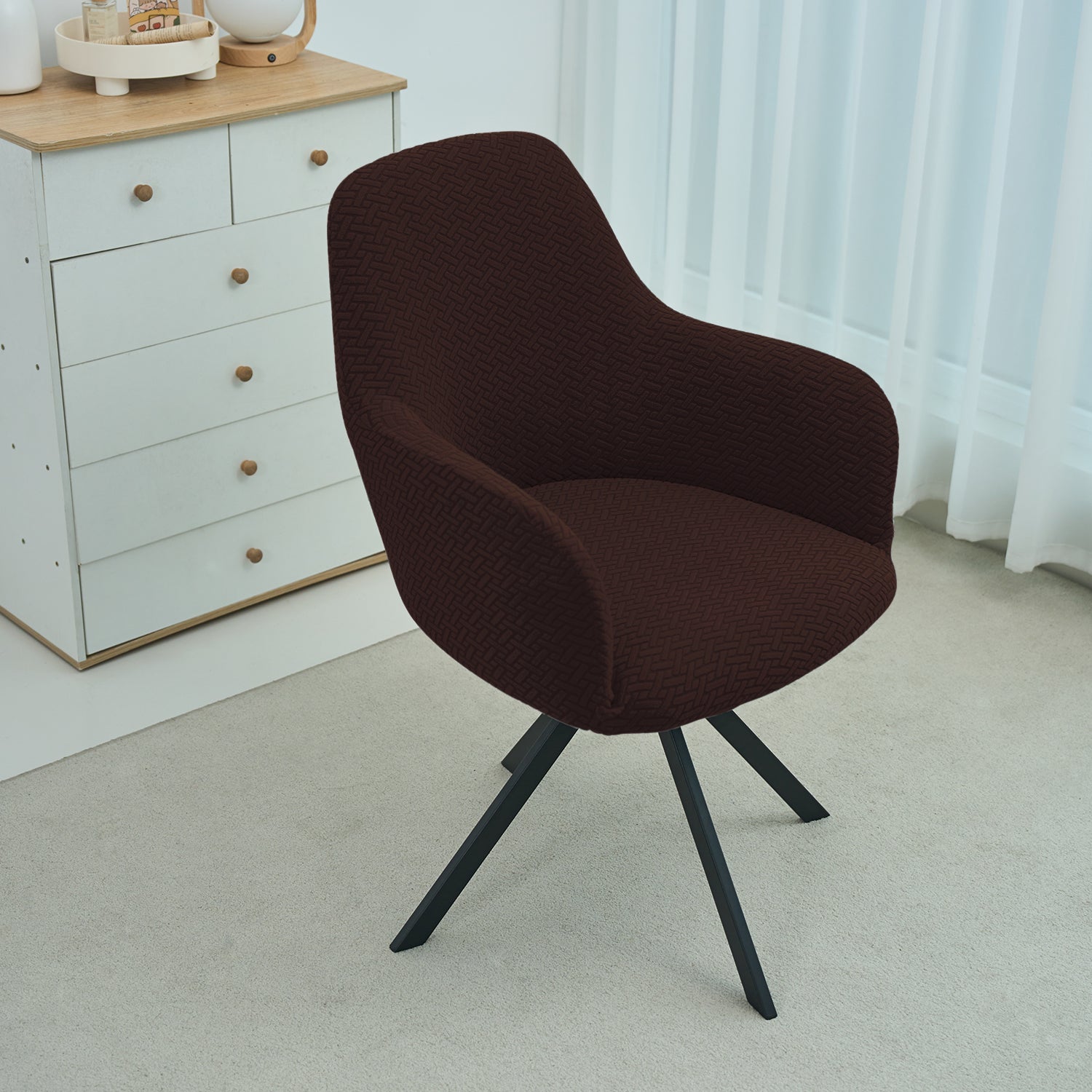 Premium Jacquard Fully Covered Cover for Swivel Dining Chair with Arms, Chocolate Brown