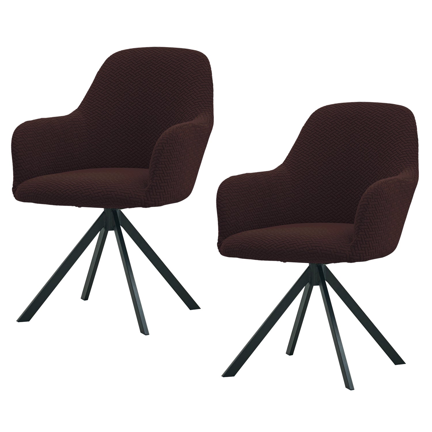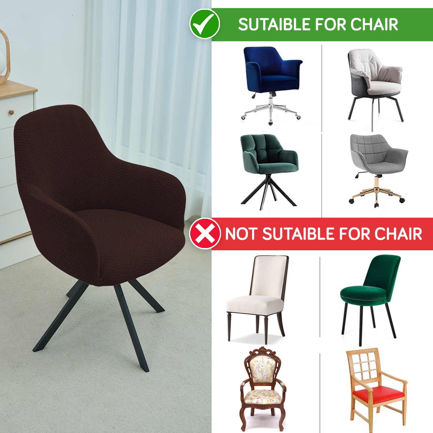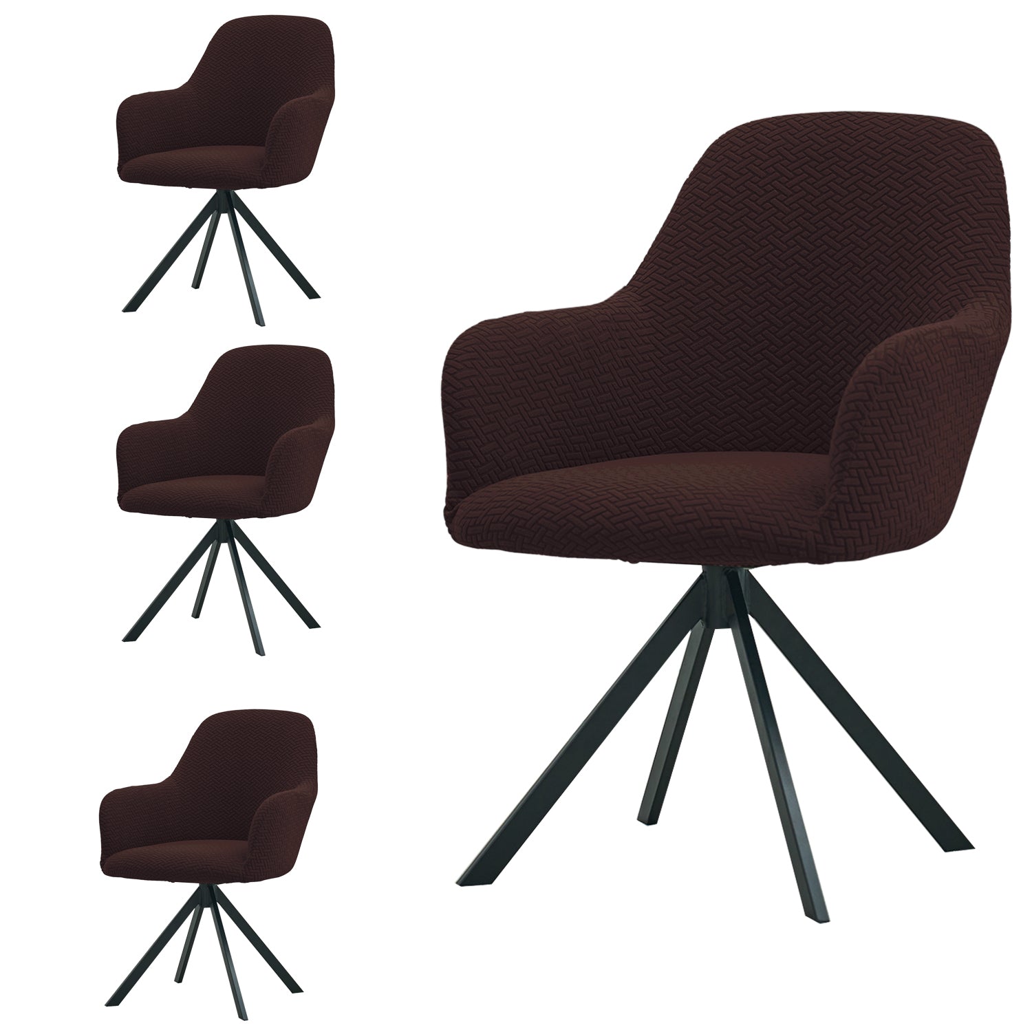 Premium Jacquard Fully Covered Cover for Swivel Dining Chair with Arms, Chocolate Brown