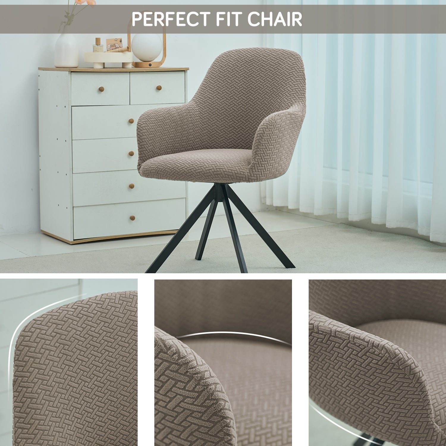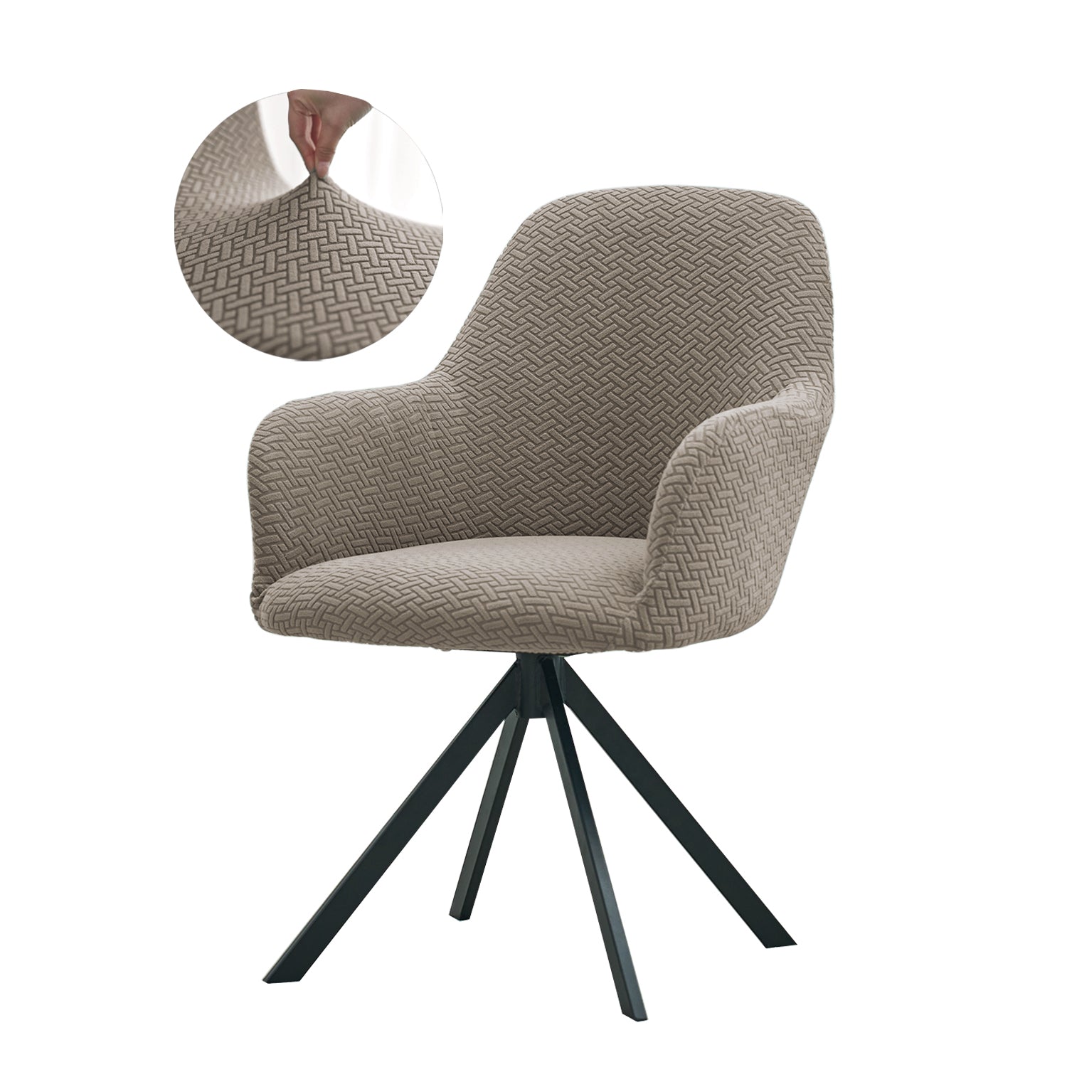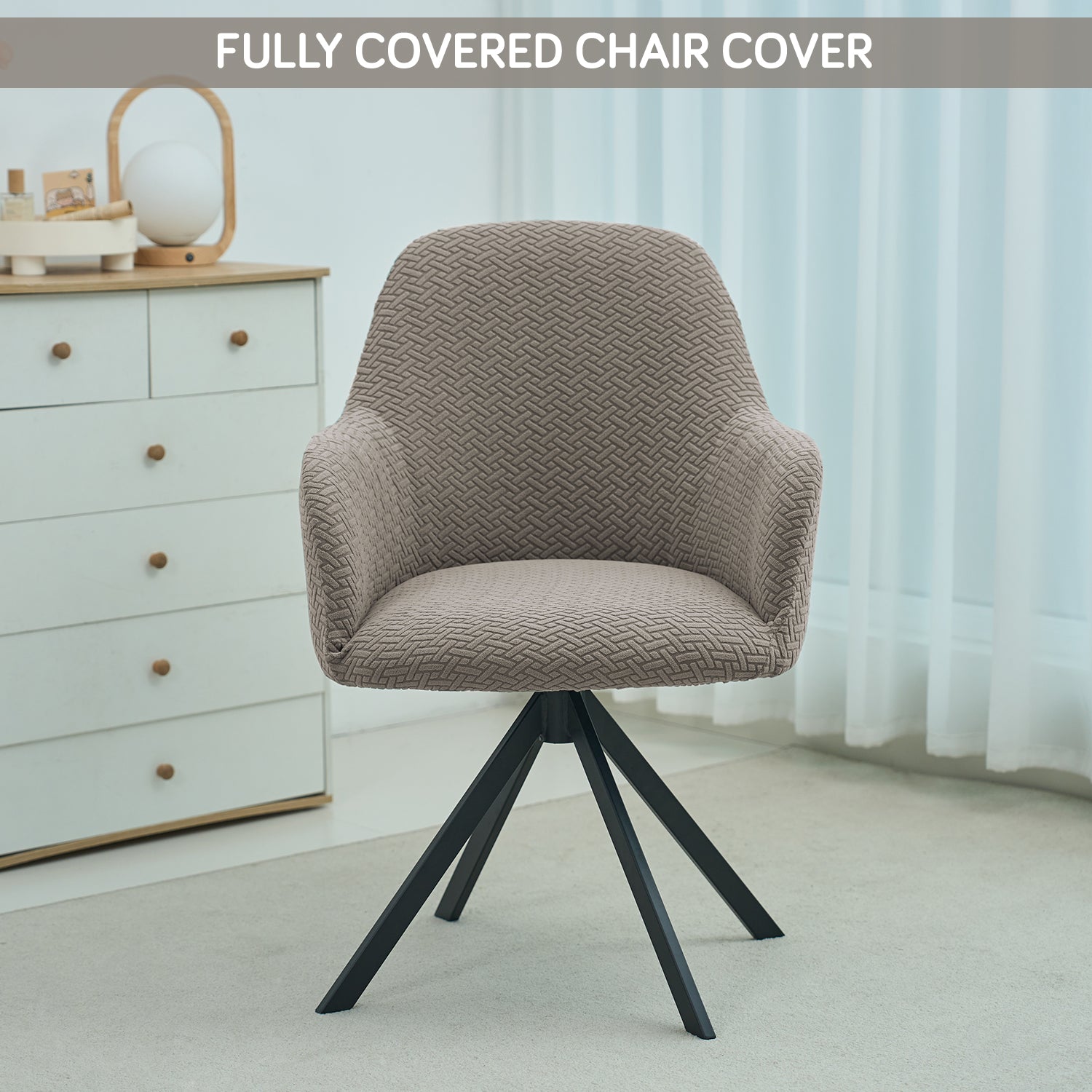 Premium Jacquard Fully Covered Cover for Swivel Dining Chair with Arms, Taupe Brown