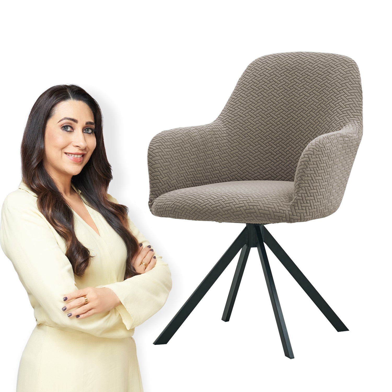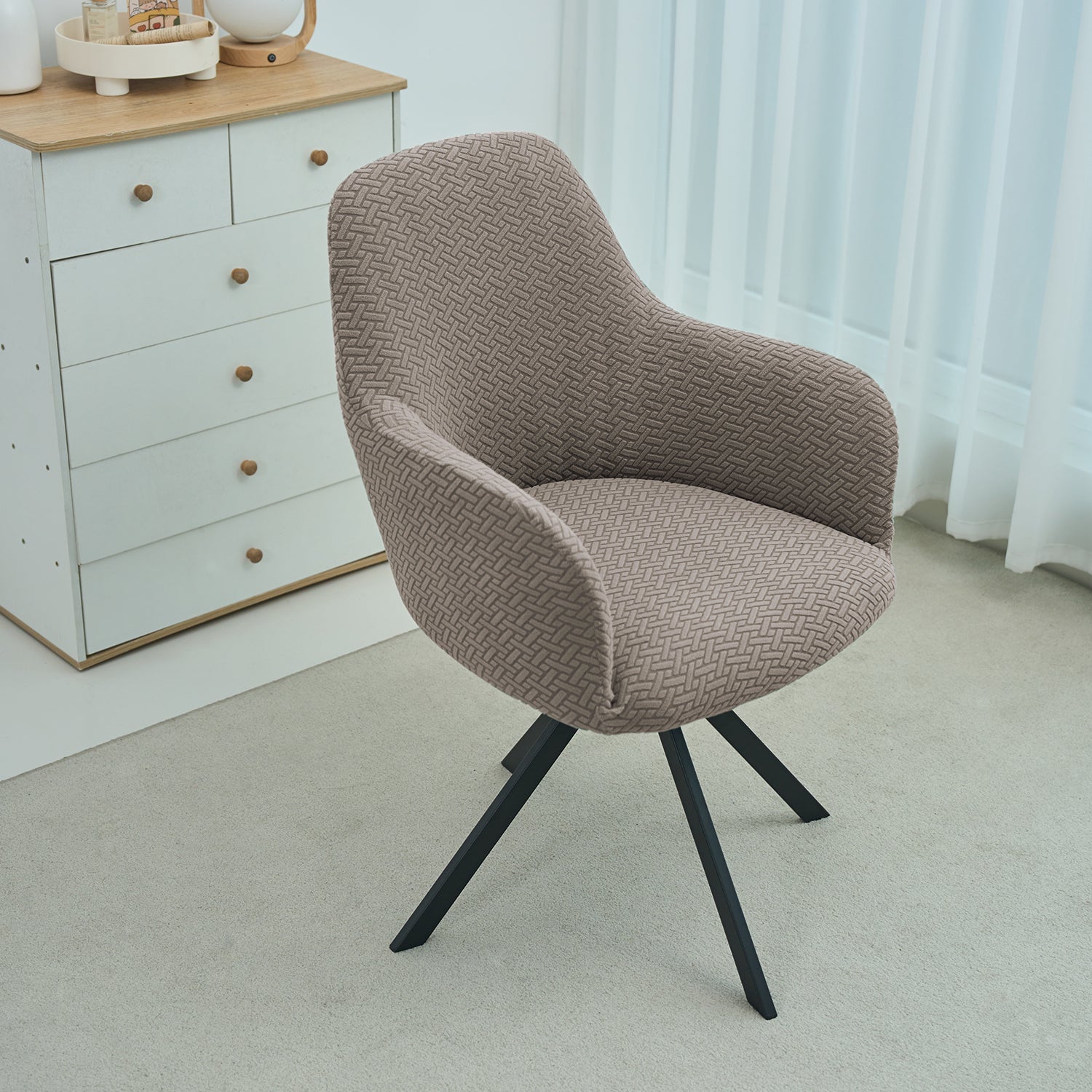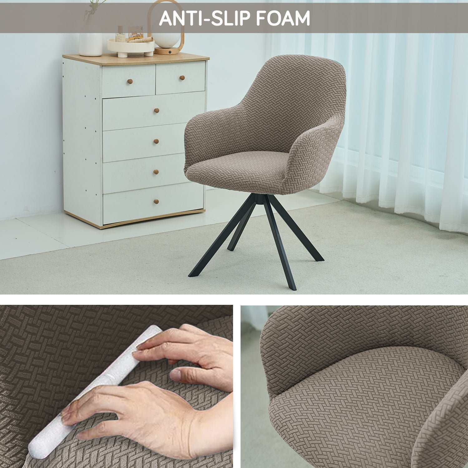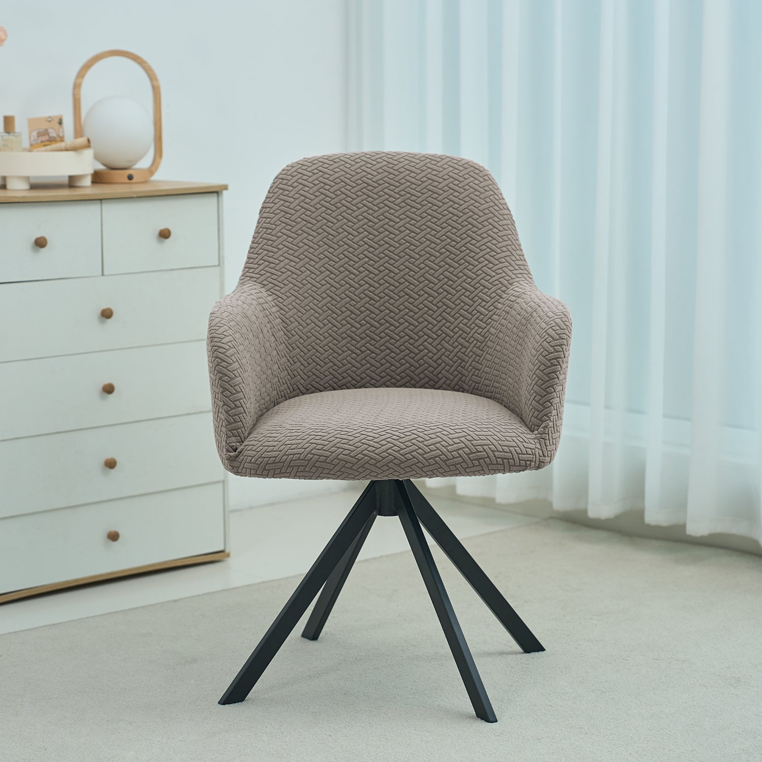 Premium Jacquard Fully Covered Cover for Swivel Dining Chair with Arms, Taupe Brown