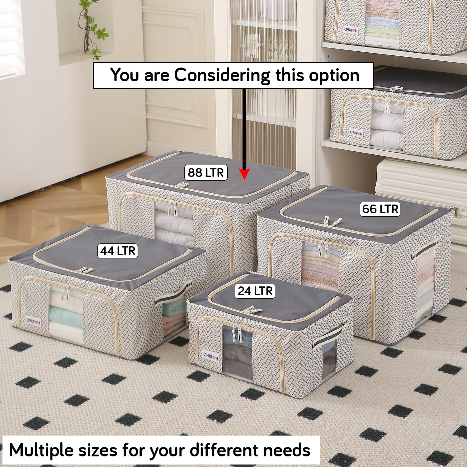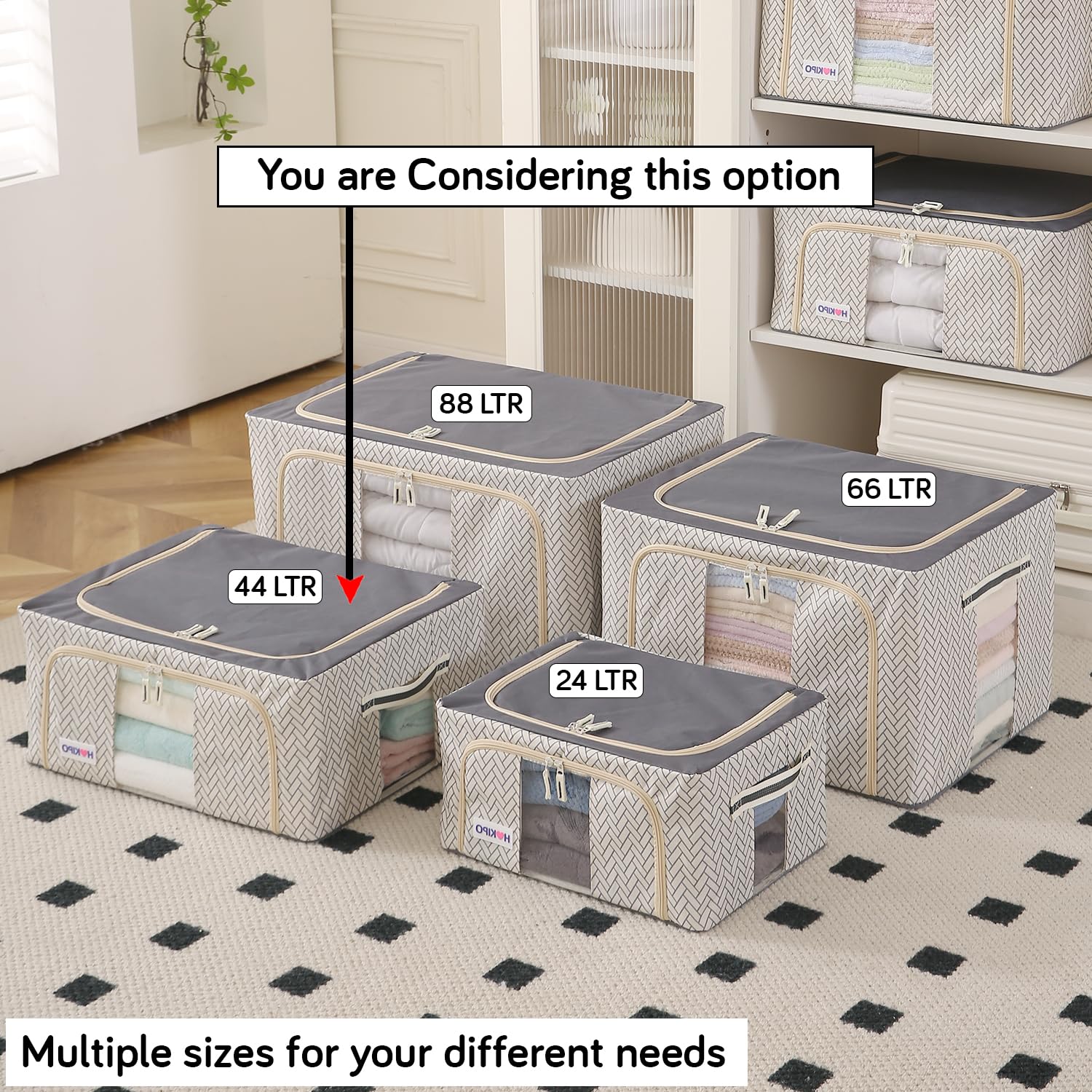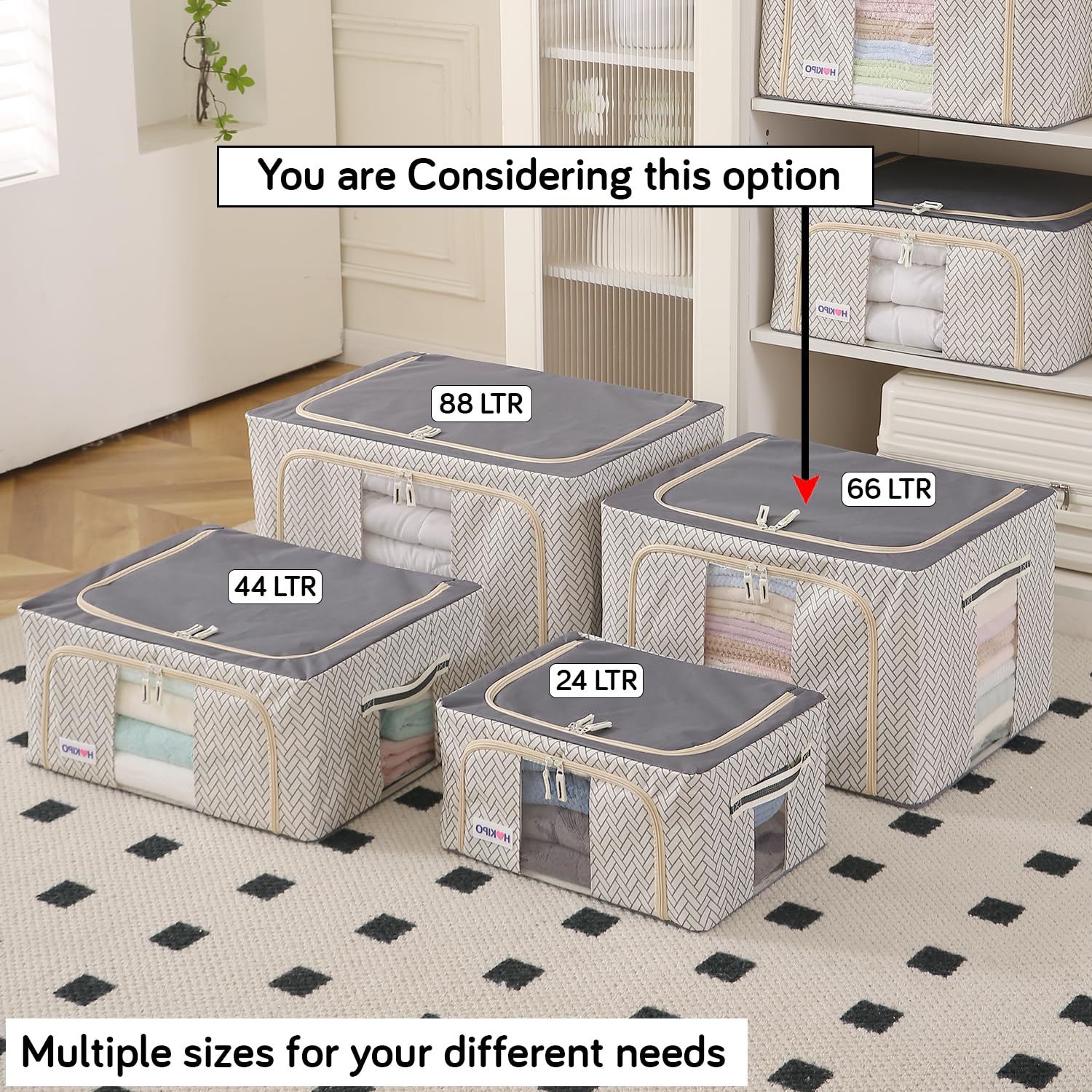 - Versatile Sizes: 24L - 40x30x20 cm, 44L - 50x40x22 cm, 66L - 50x40x33 cm, 88L - 60x42x35 is ideal for clothes, sarees, blankets, and more.