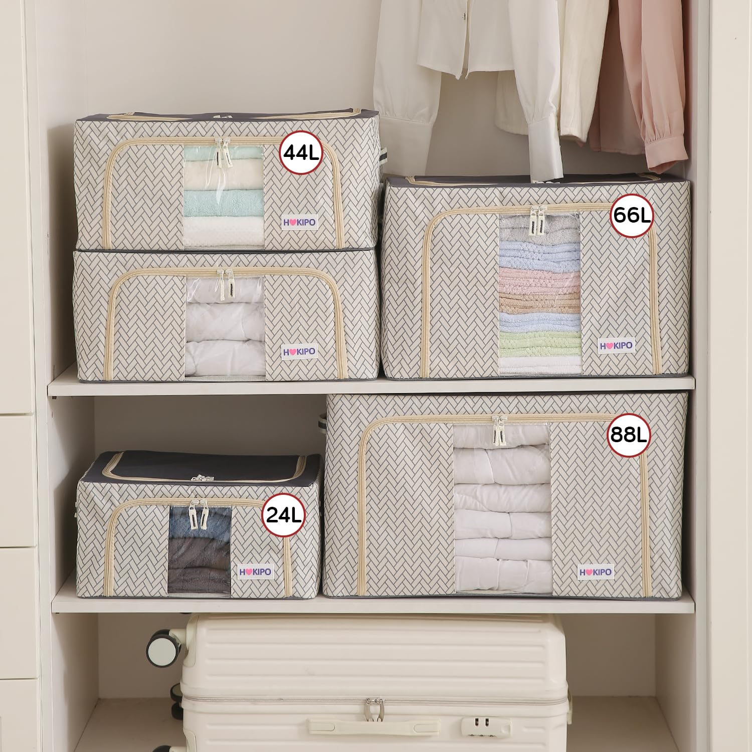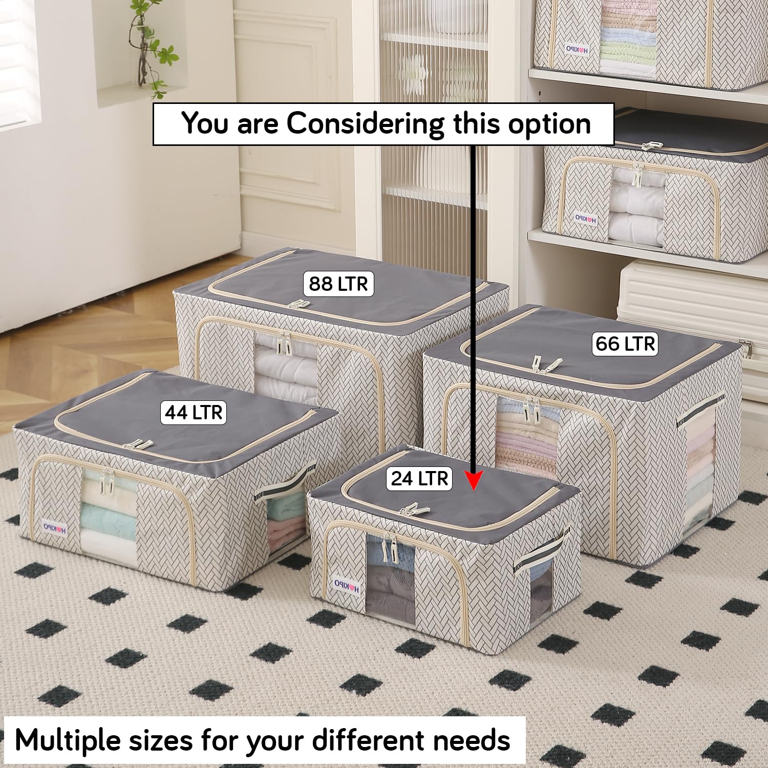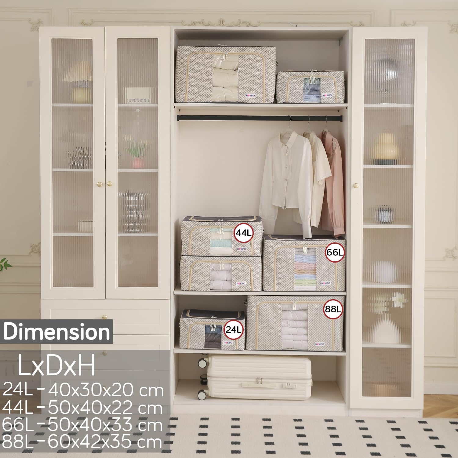 - Versatile Sizes: 24L - 40x30x20 cm, 44L - 50x40x22 cm, 66L - 50x40x33 cm, 88L - 60x42x35 is ideal for clothes, sarees, blankets, and more.