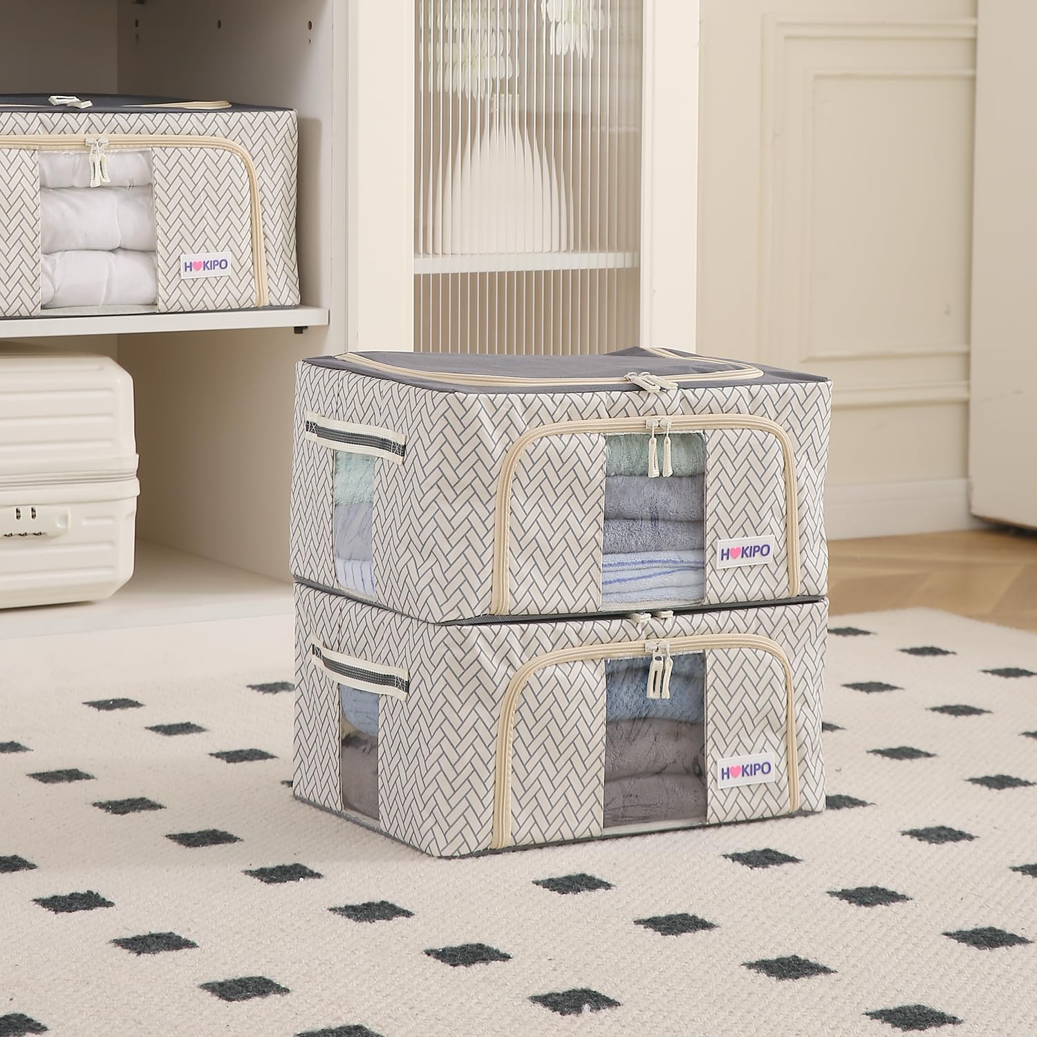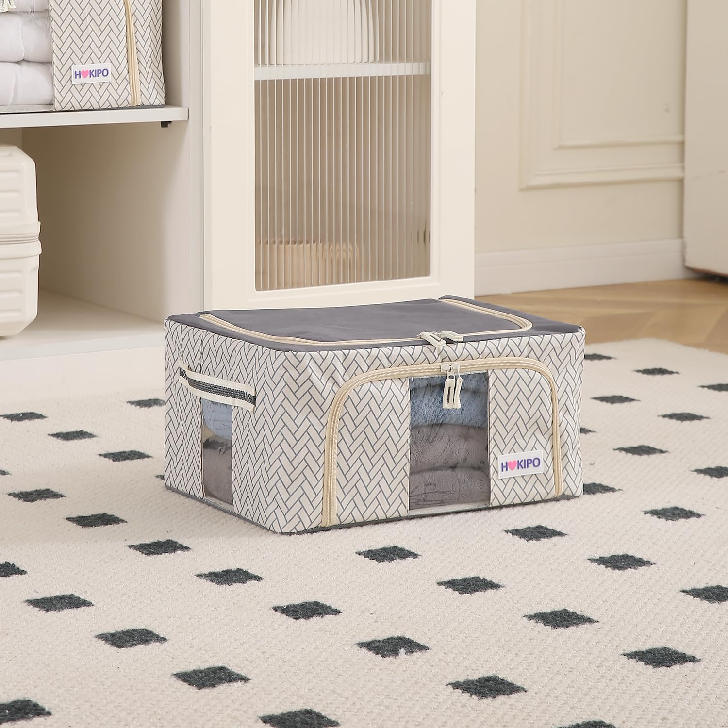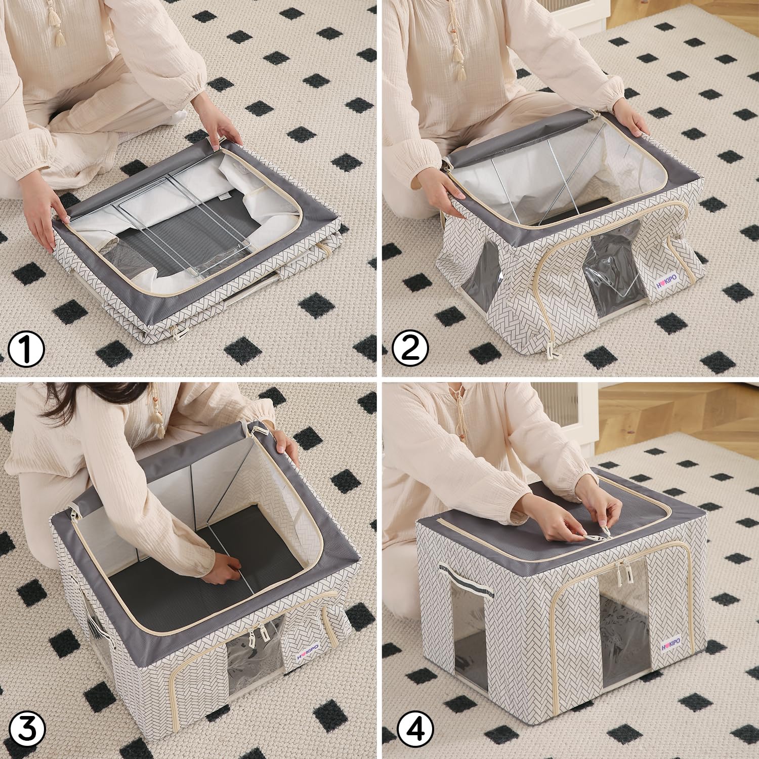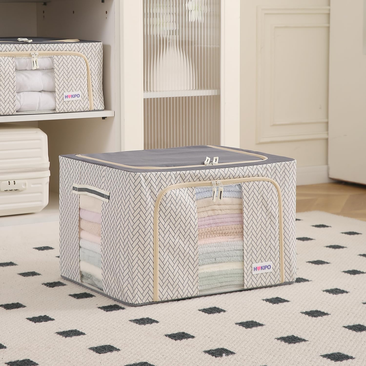 Wardrobe Organizer Storage Box | Foldable Cloth Storage Boxes with Metal Frame & Window | 600D Oxford Fabric, Cream Mist