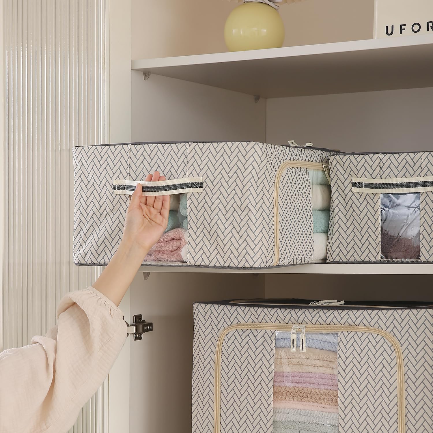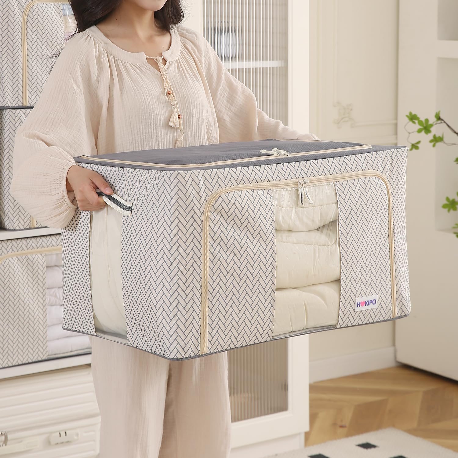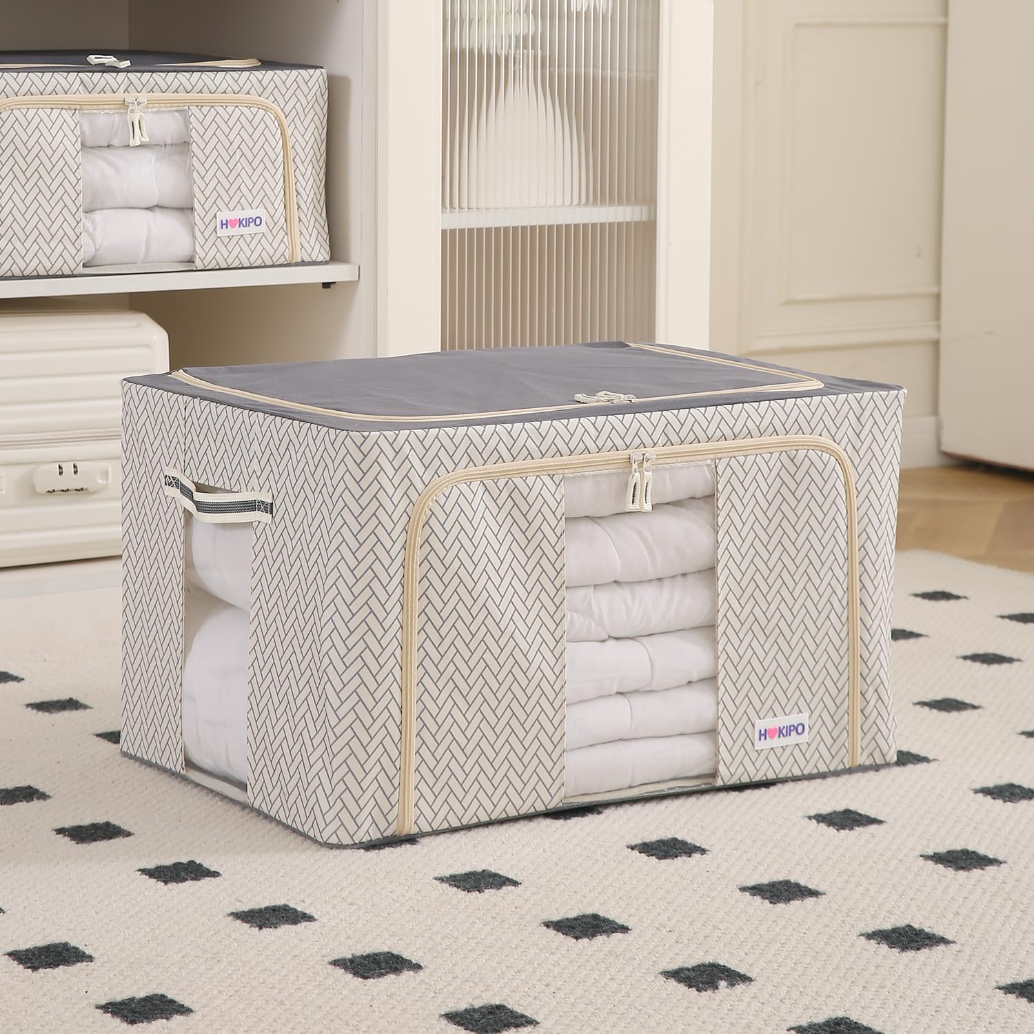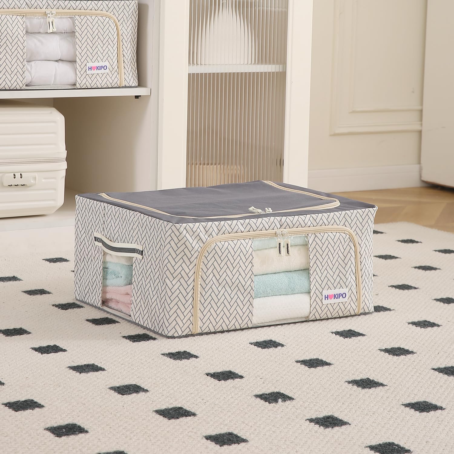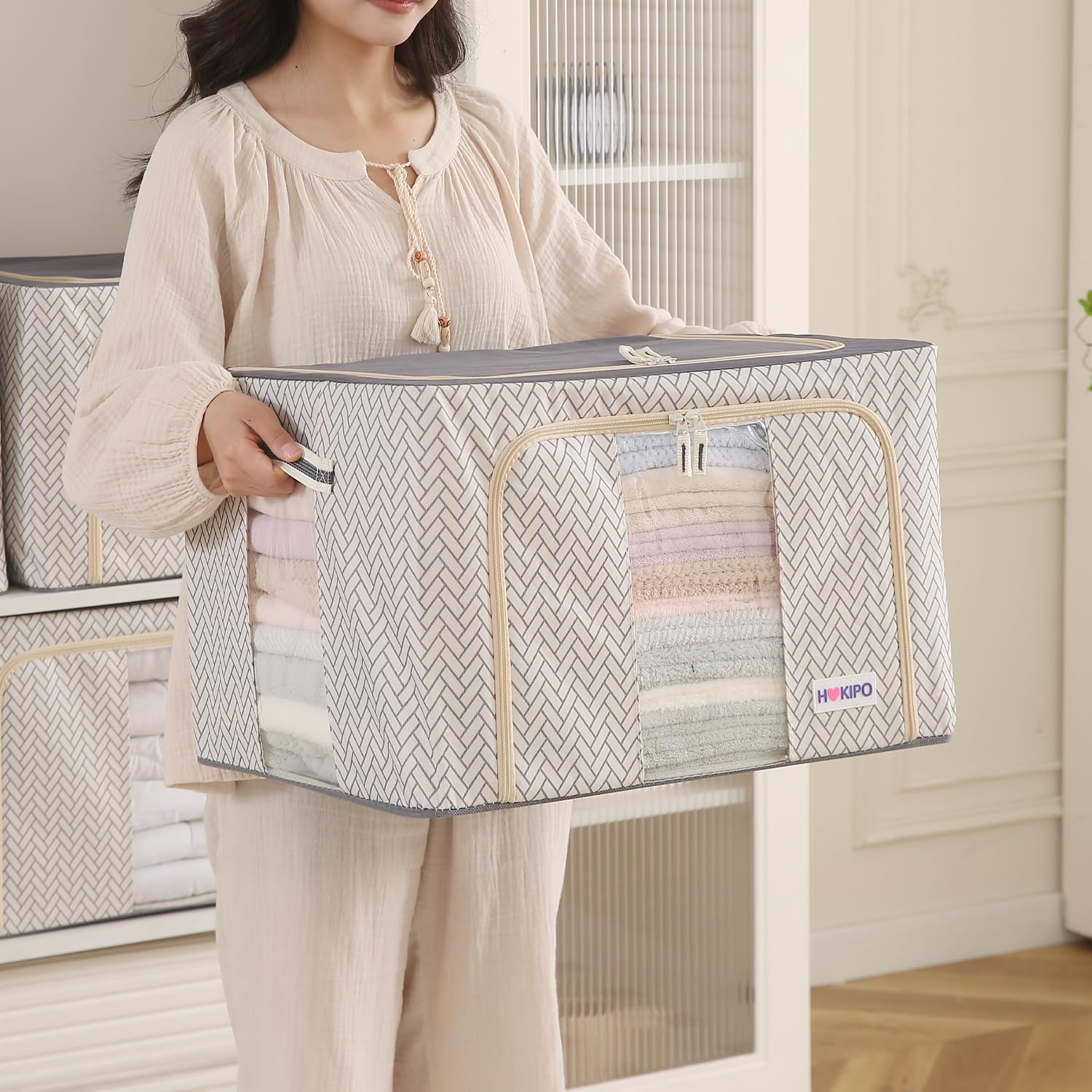 Wardrobe Organizer Storage Box | Foldable Cloth Storage Boxes with Metal Frame & Window | 600D Oxford Fabric, Cream Mist
