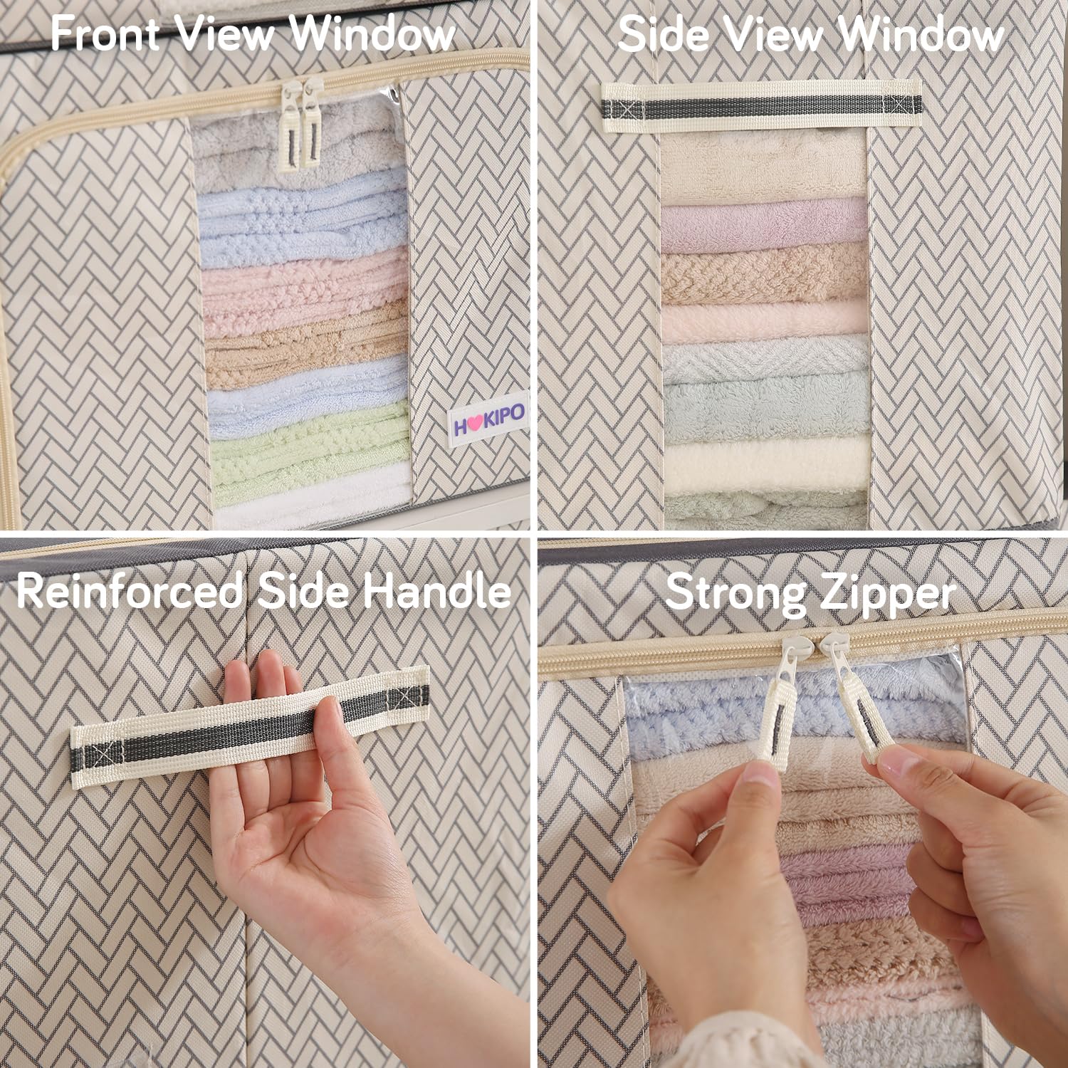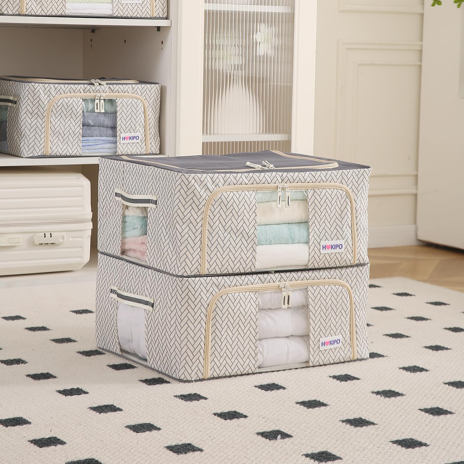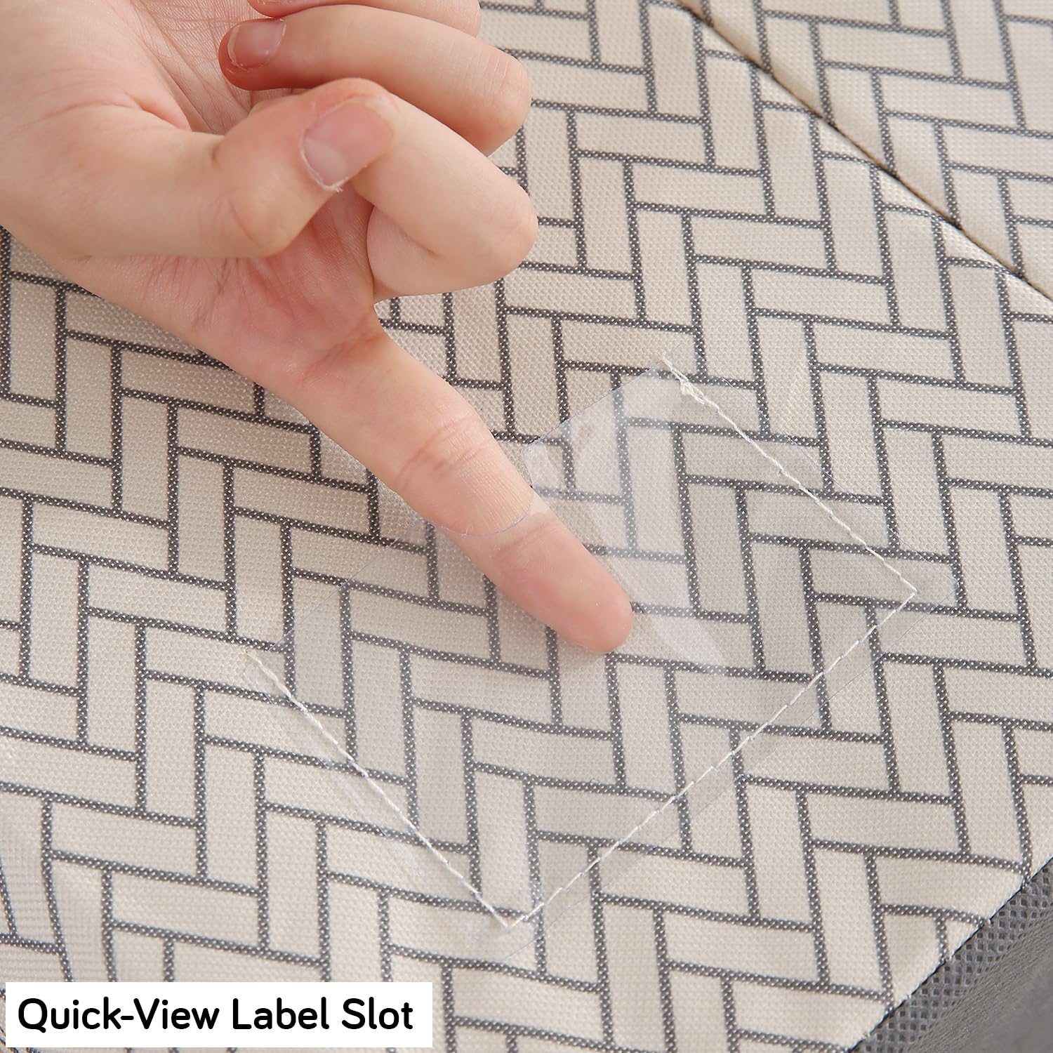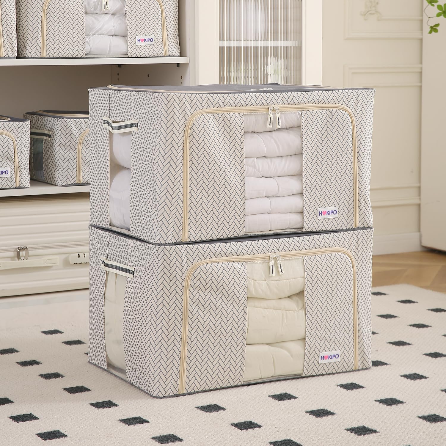 Wardrobe Organizer Storage Box | Foldable Cloth Storage Boxes with Metal Frame & Window | 600D Oxford Fabric, Cream Mist
