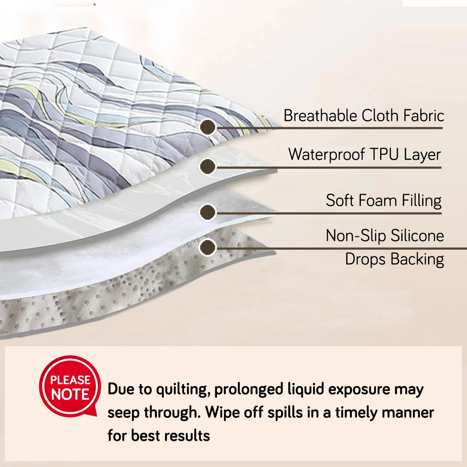 Quilted, Waterproof and Anti-Slip Sofa Cover Mat, Curved Lines Pearl White