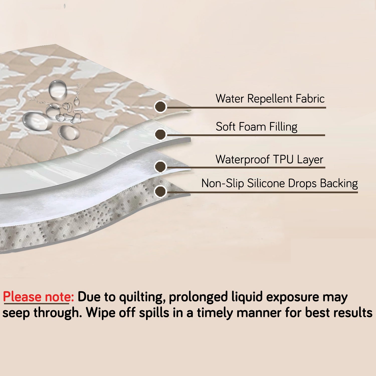 - 4-Layer Design: Breathable top layer for comfort, TPU layer for waterproofing, microfiber filling for cushioning, and anti-slip coating (effectiveness varies by sofa fabric).