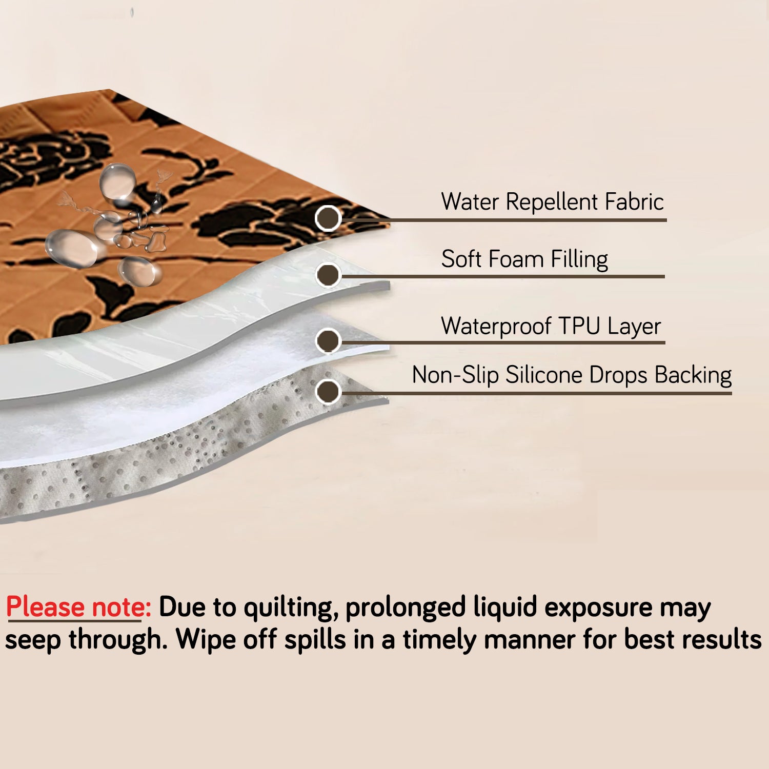 Waterproof Printed Quilted Quick Dry L Shape Sofa Seat Cover Mat, Copper Brown Floral