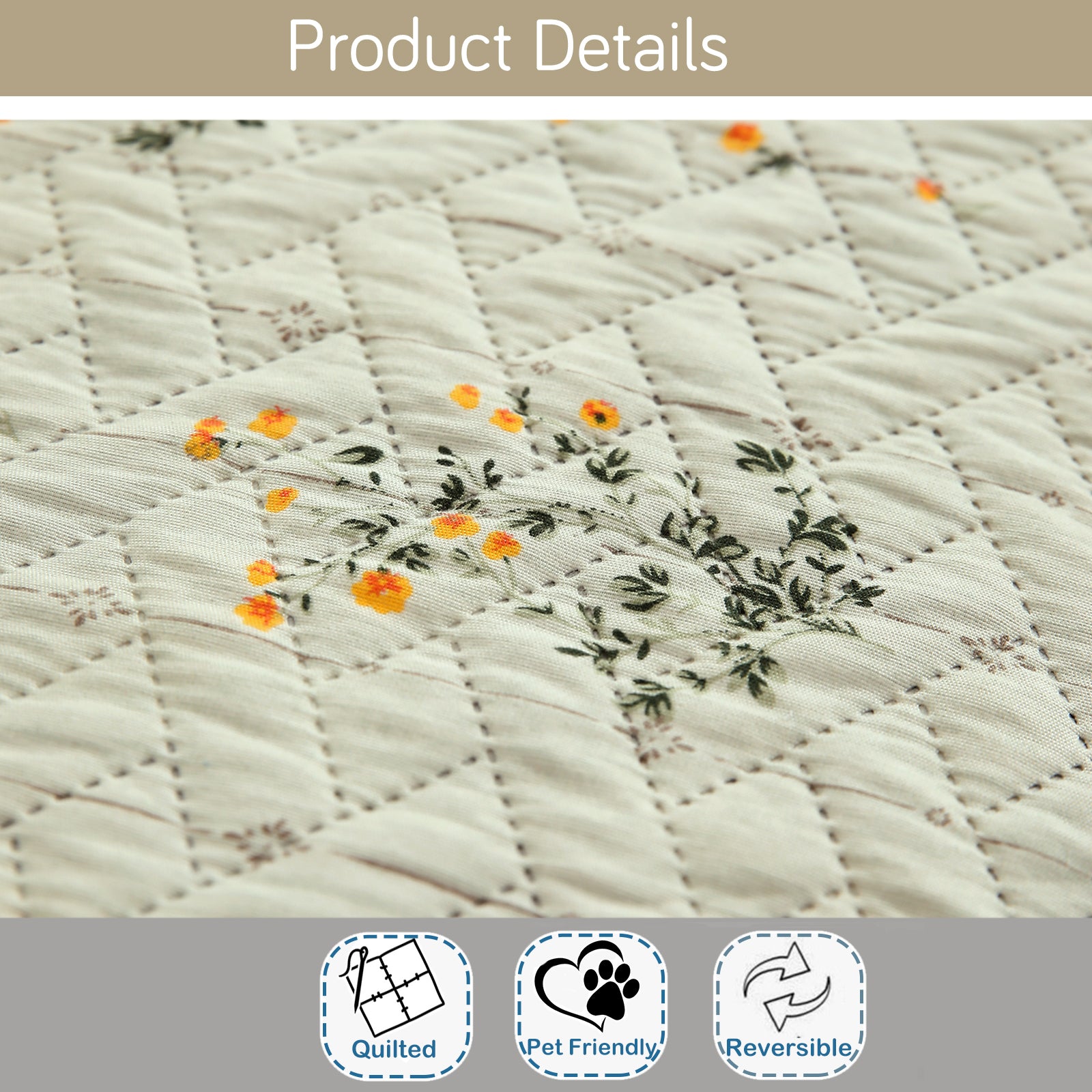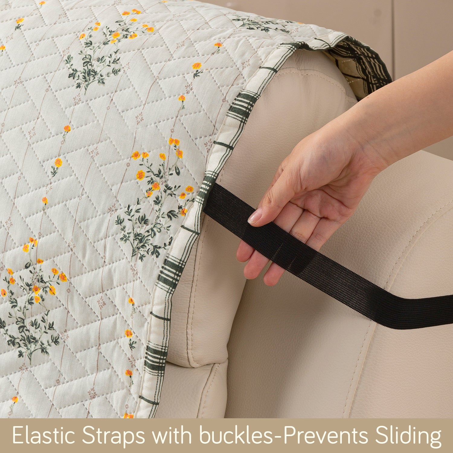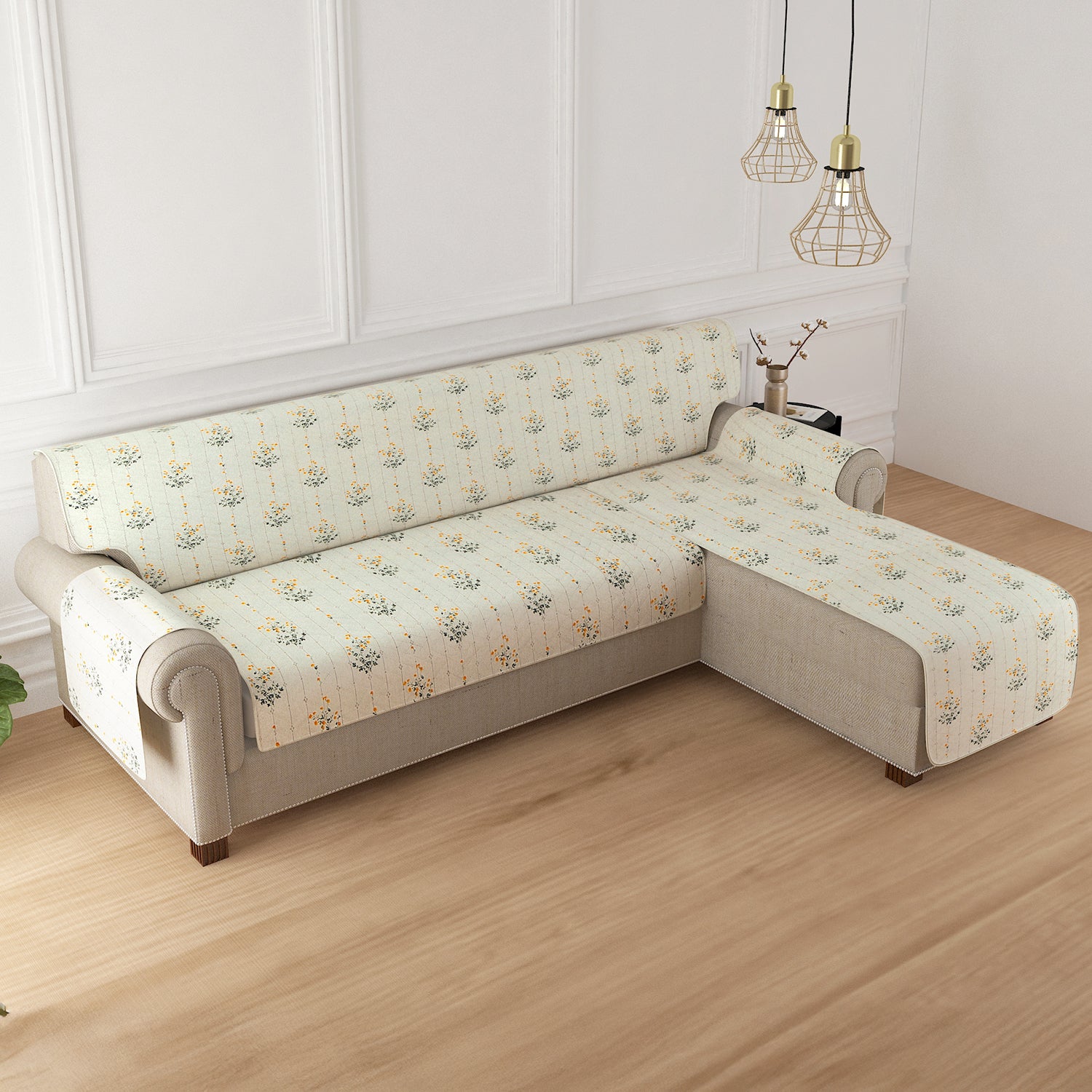 HomeHues Series Quilted Sofa Cover with Secure Fit Belt for L Shape sofa, Light Green Ash Gypsy Flower