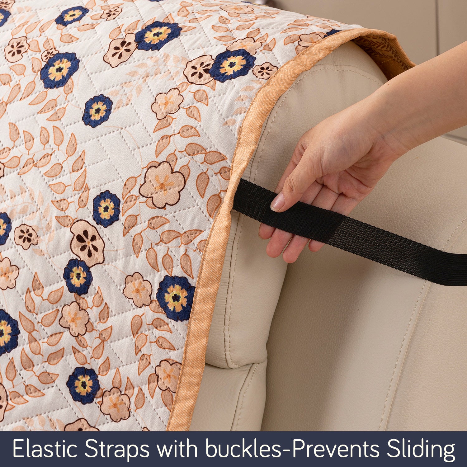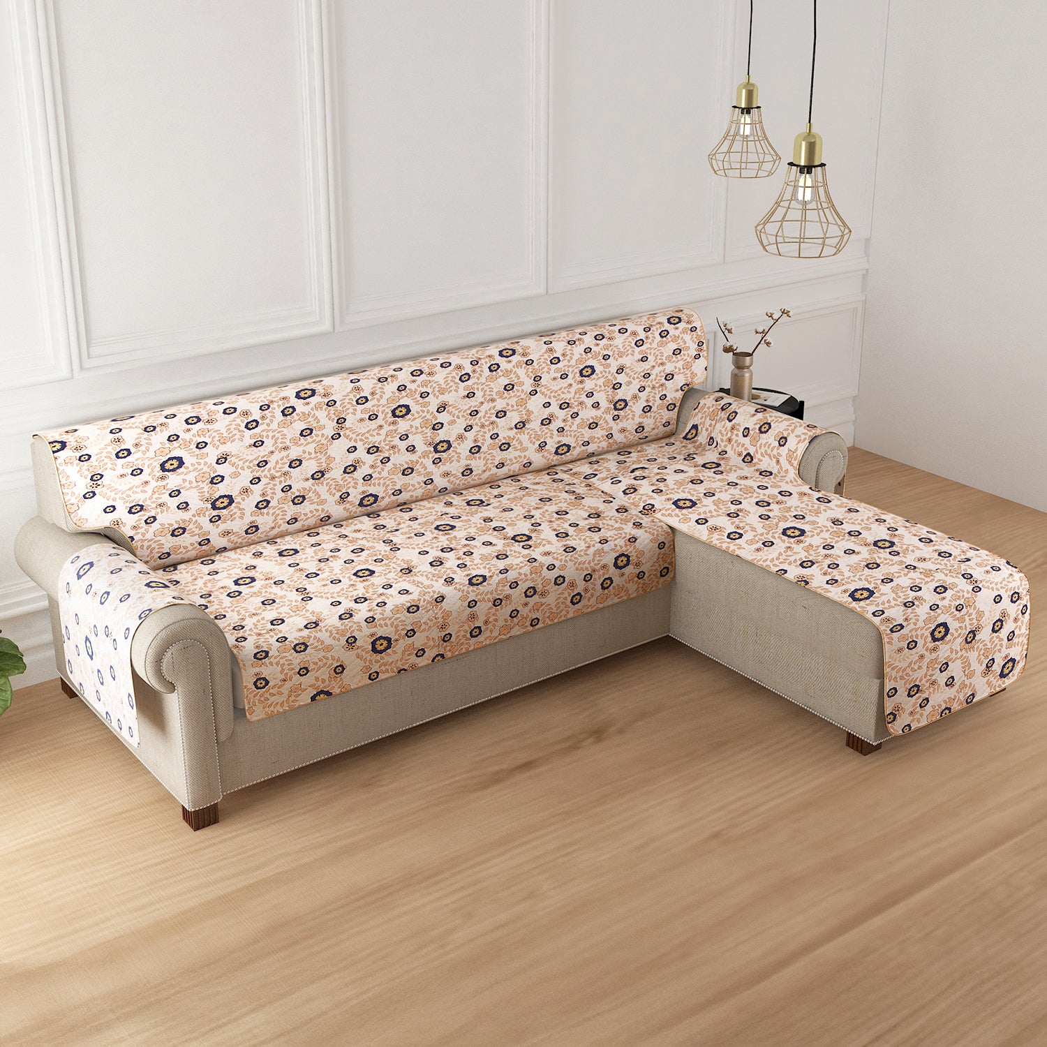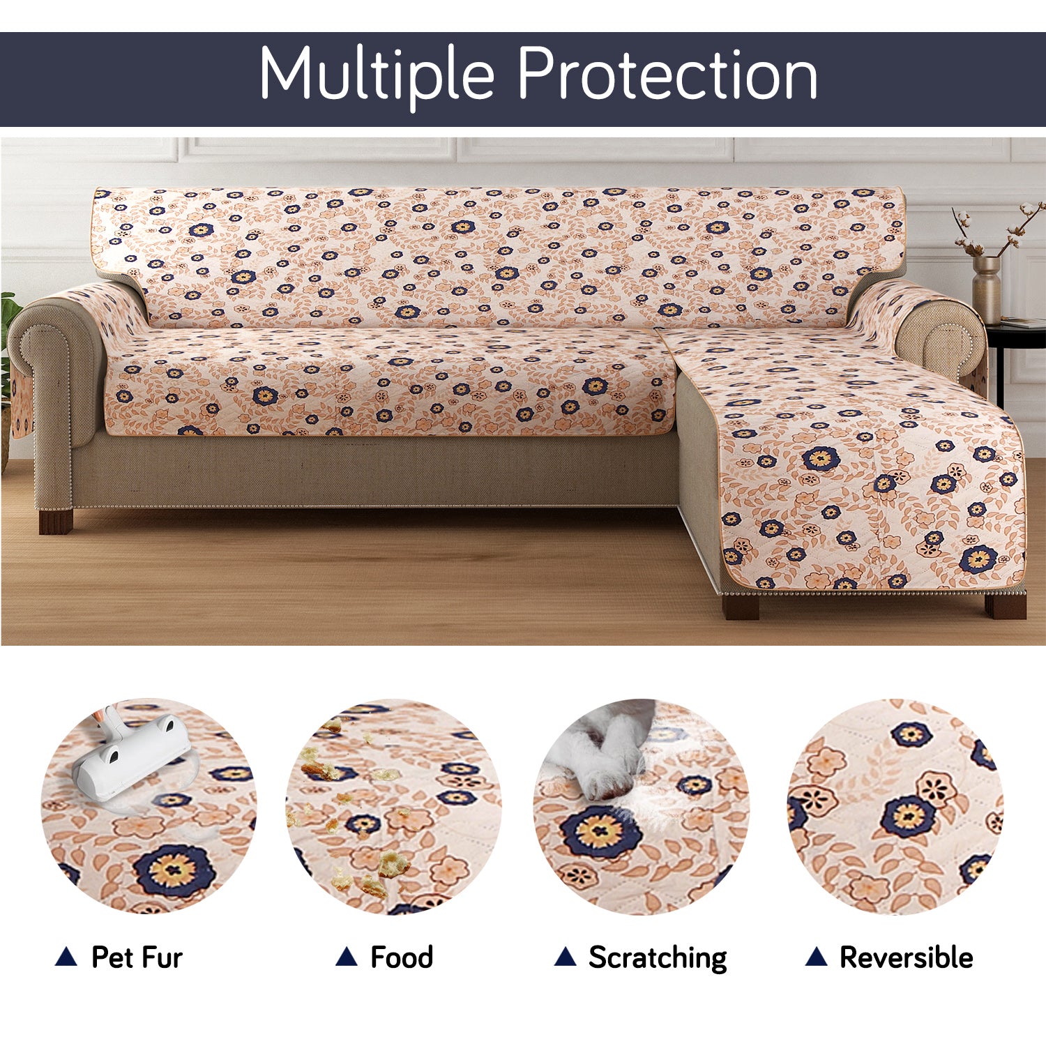 HomeHues Series Quilted Sofa Cover with Secure Fit Belt for L Shape sofa, Light Peach Candytuft