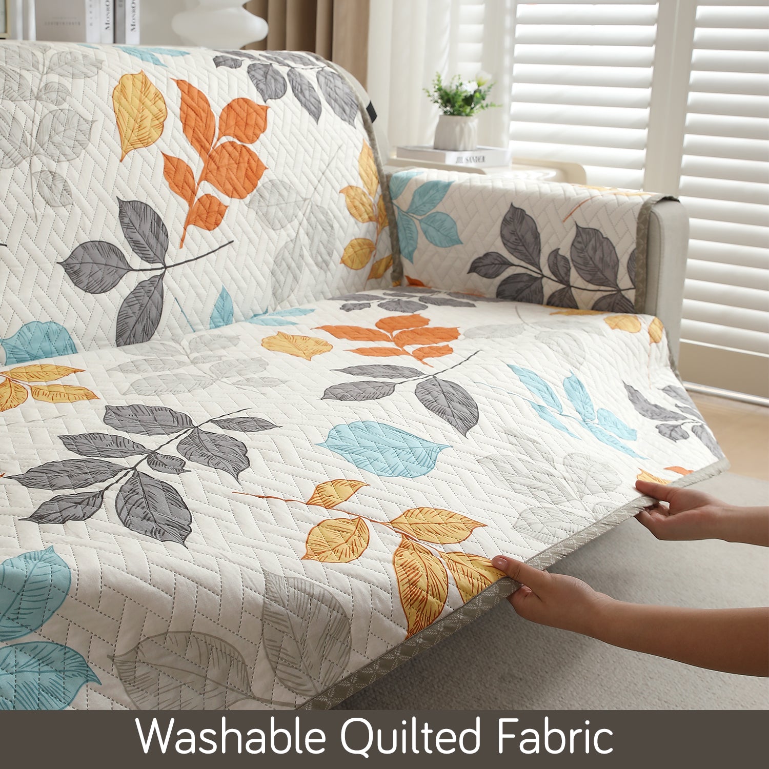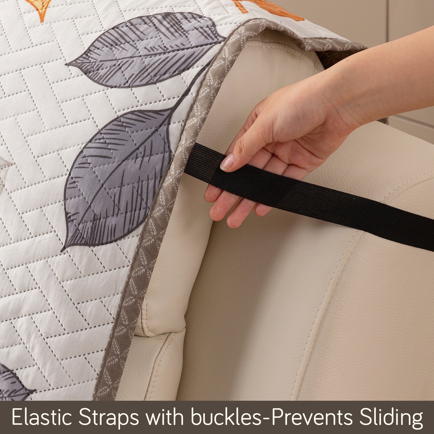 HomeHues Series Quilted Sofa Cover with Secure Fit Belt for L Shape sofa, Multicolor Leaves