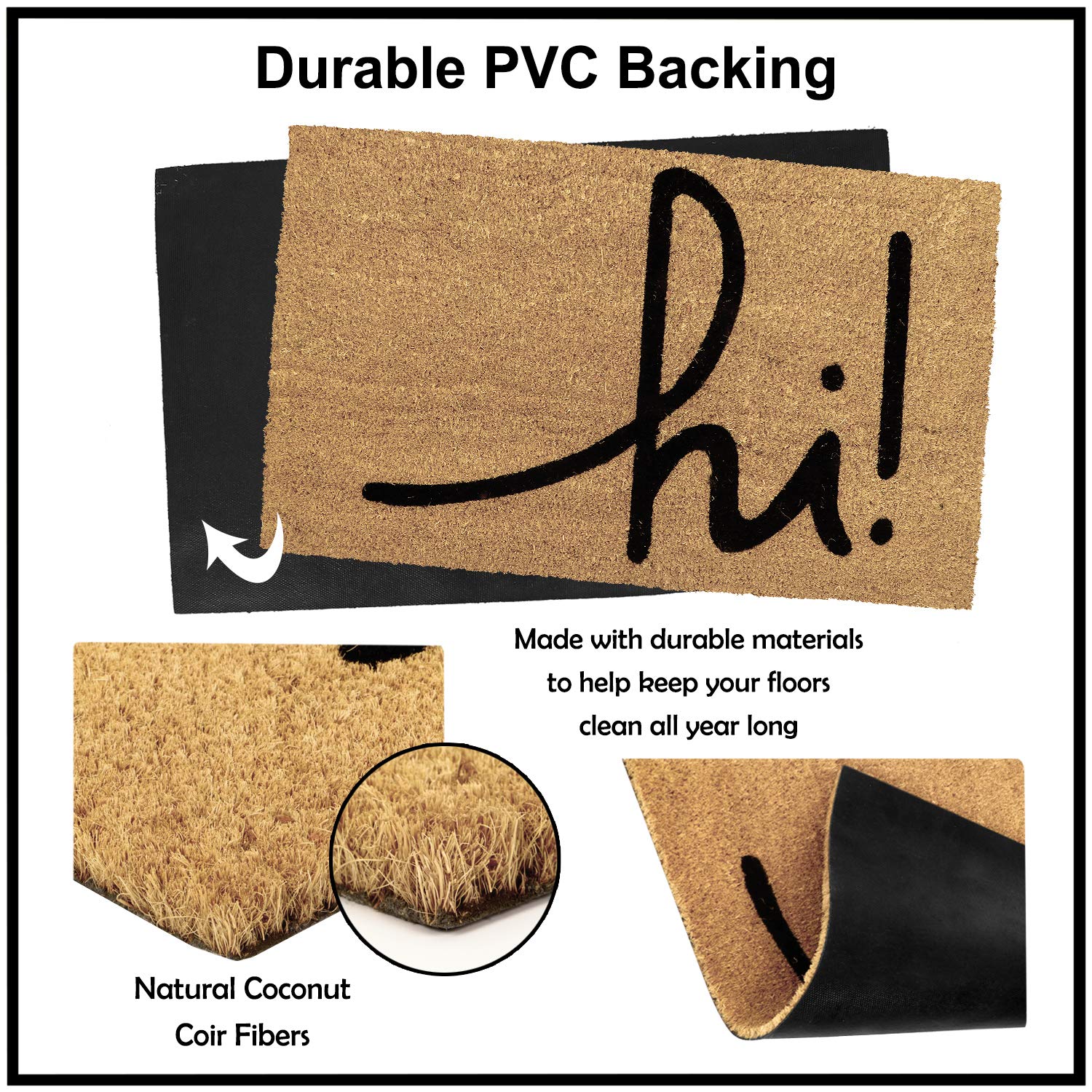 • NATURAL COIR RUBBER DOORMAT – Made from 100% natural coco coir fiber and durable rubber, this decorative mat is perfect for your front porch or entryway.