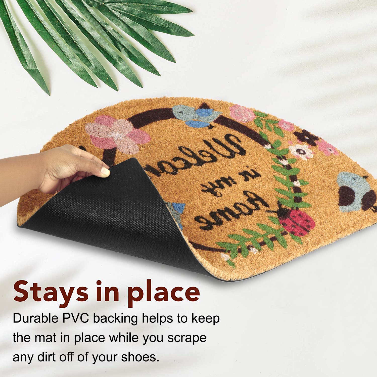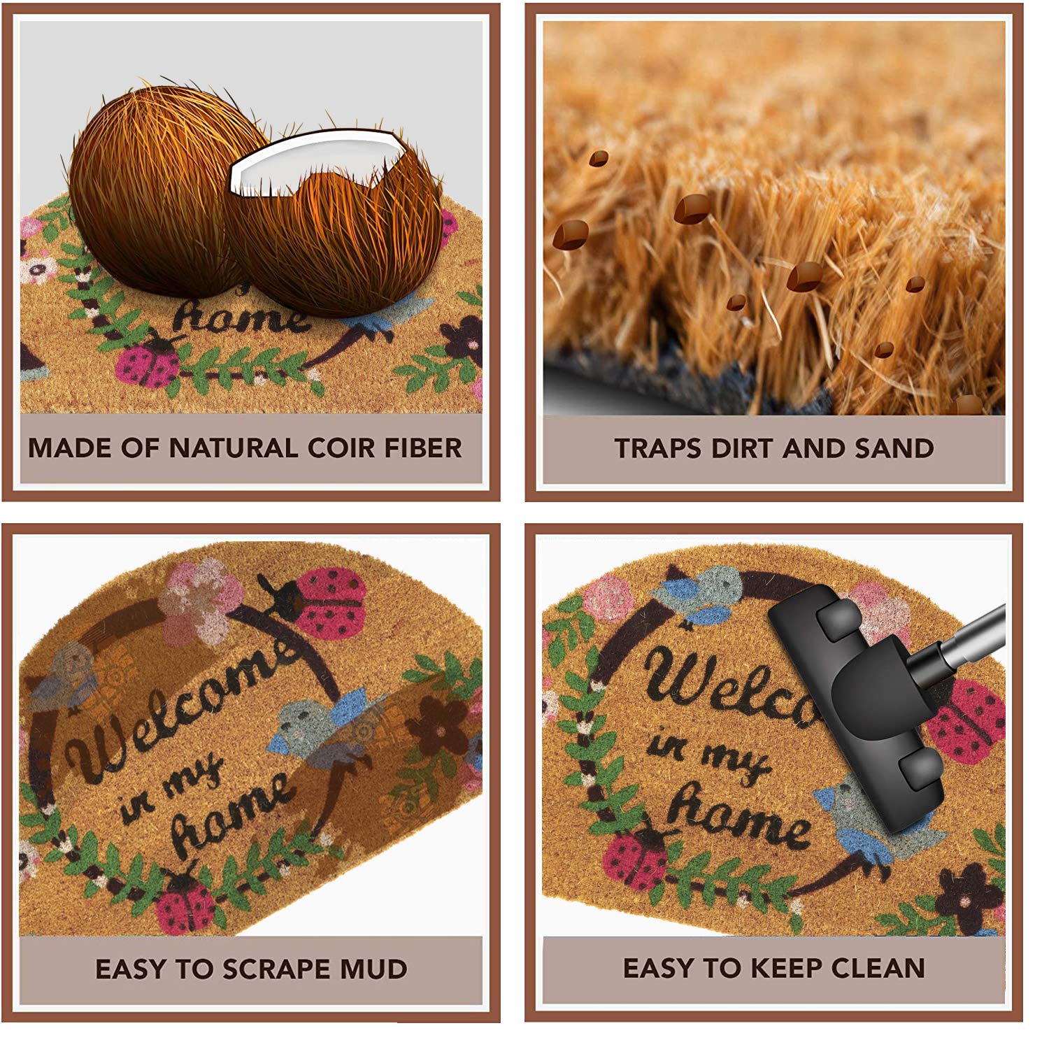 • NATURAL COIR RUBBER DOORMAT – Made from 100% natural coco coir fiber and durable rubber, this decorative mat is perfect for your front porch or entryway.