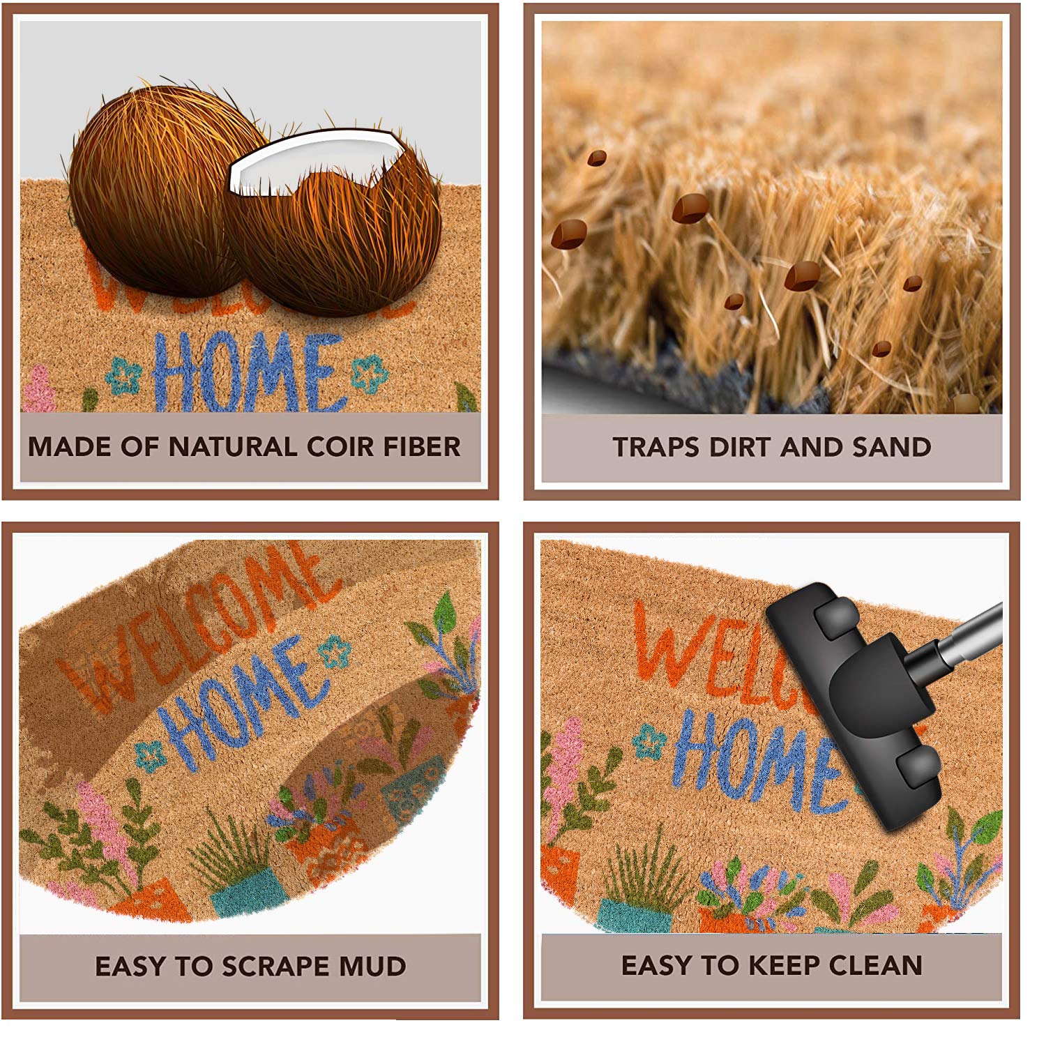 • EFFECTIVE DIRT REMOVAL – The textured coir surface easily scrapes off dirt, mud, and moisture from shoes, keeping your home cleaner.