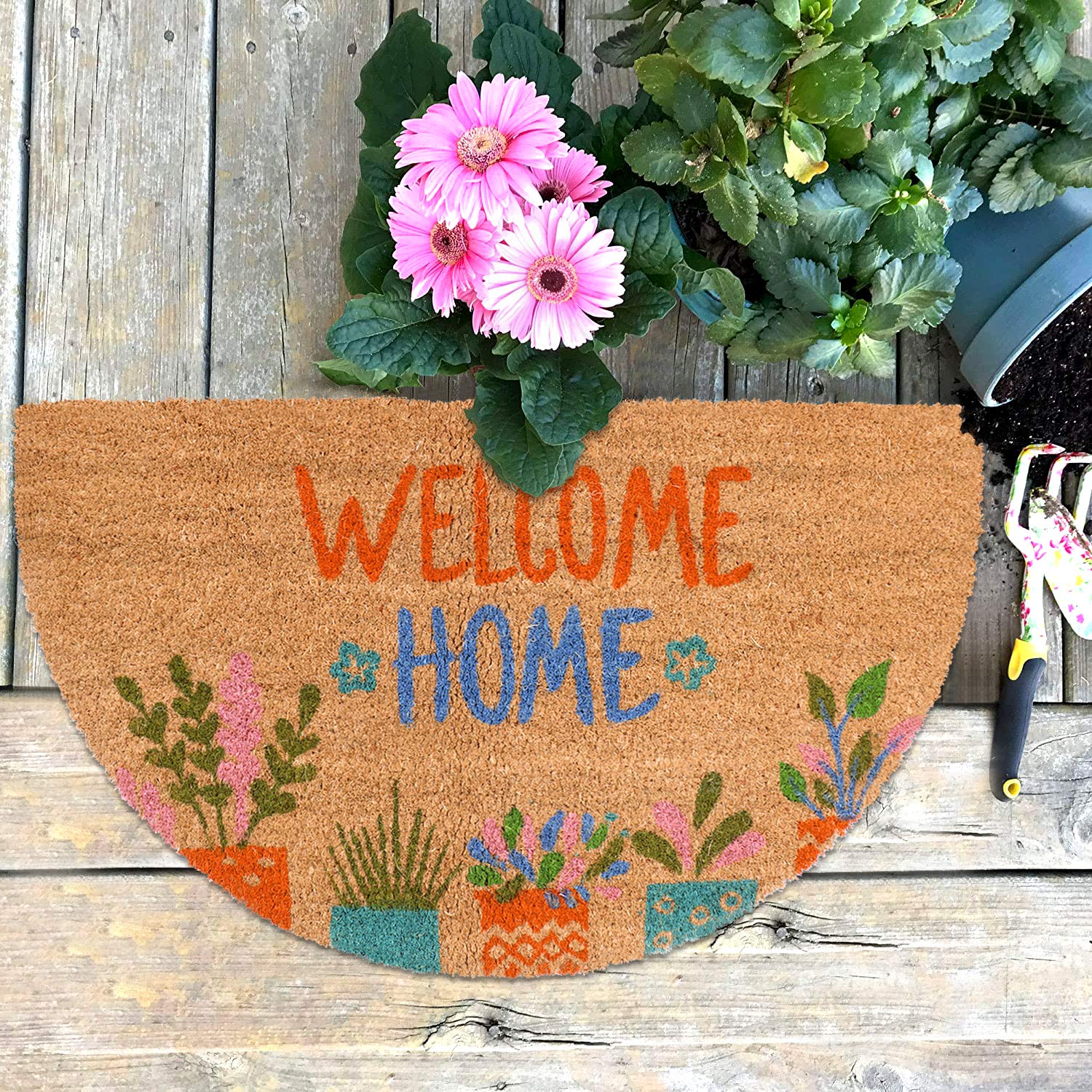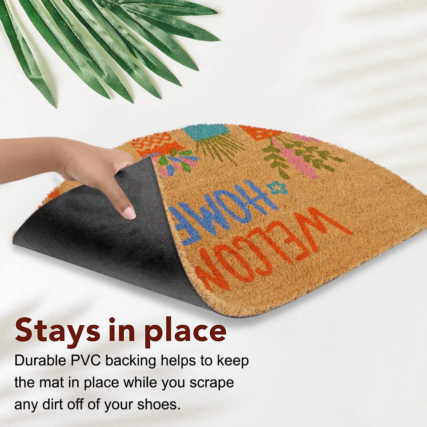 • NATURAL COIR RUBBER DOORMAT – Made from 100% natural coco coir fiber and durable rubber, this decorative mat is perfect for your front porch or entryway.