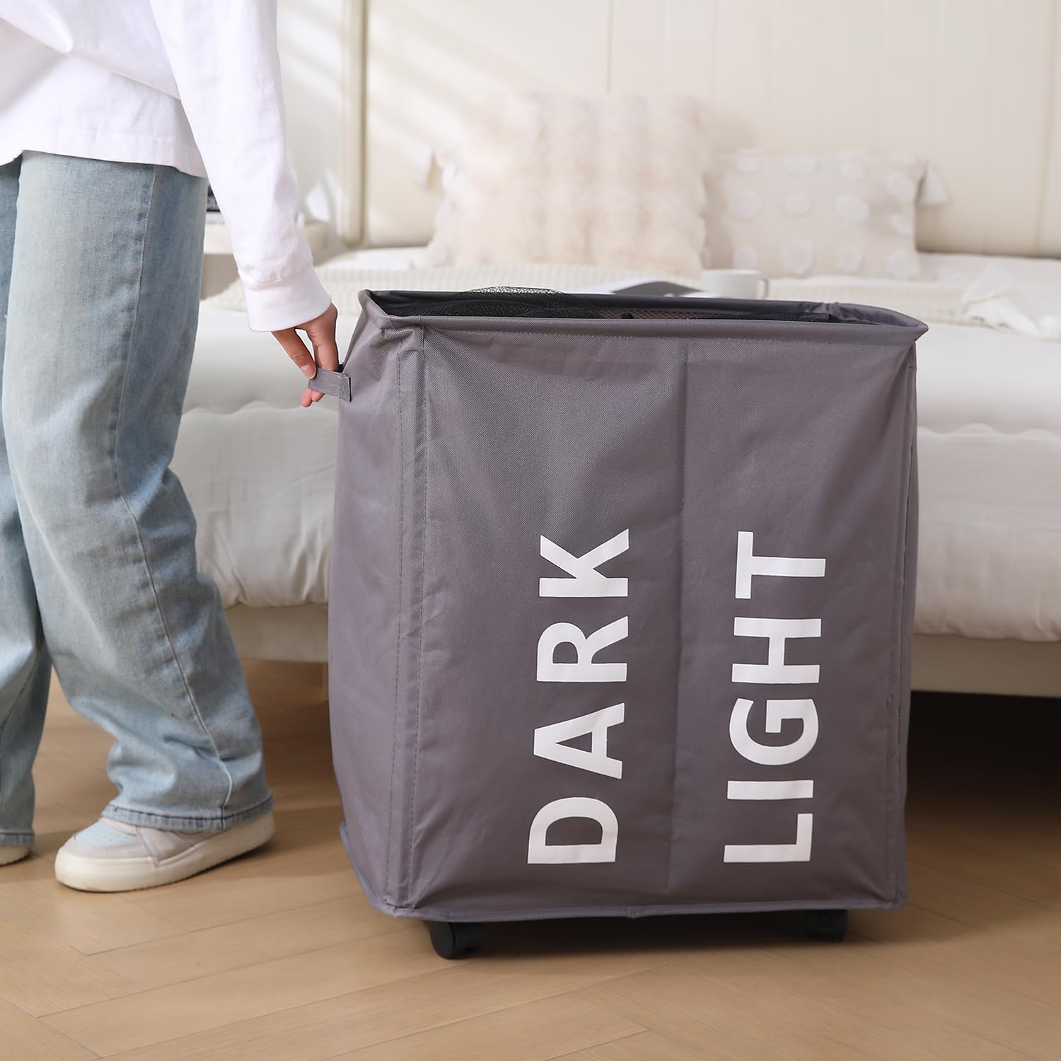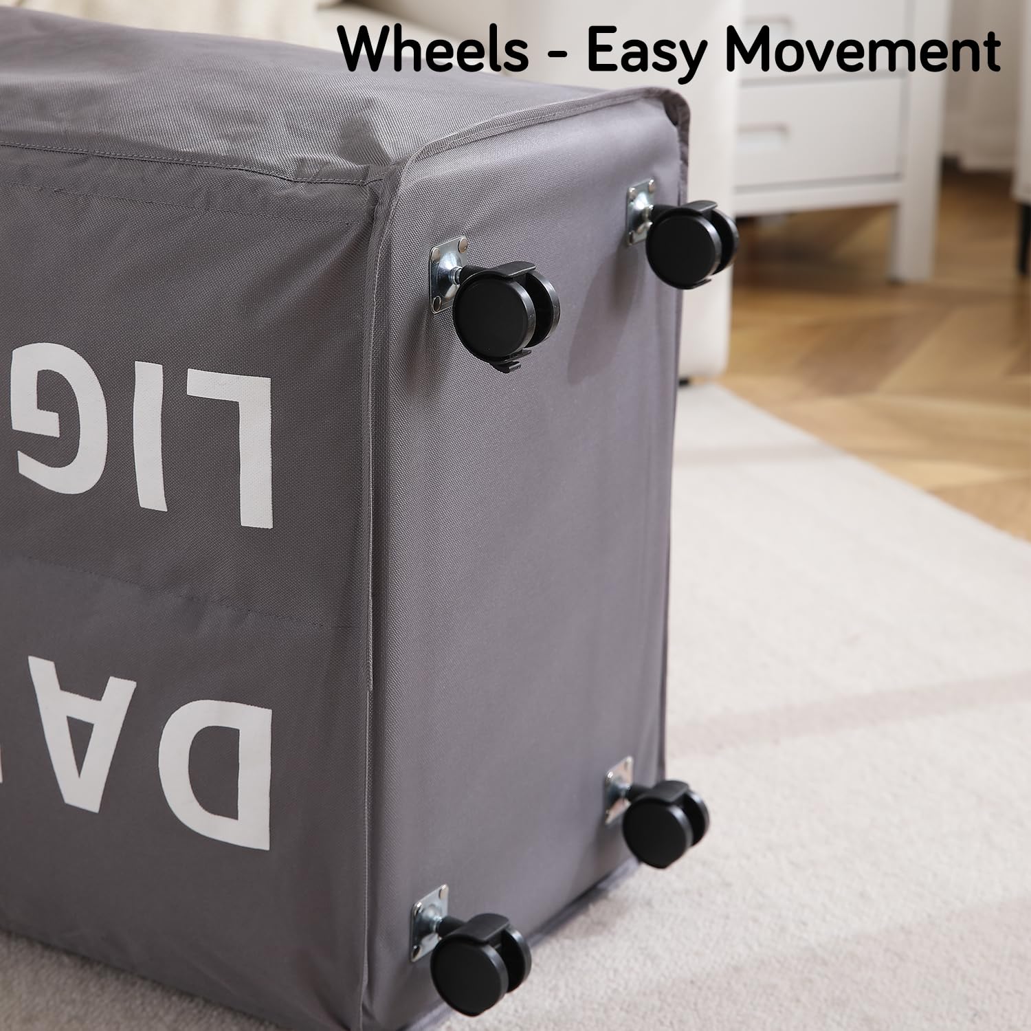 Large Laundry Basket Foldable Hamper With Wheels, Grey