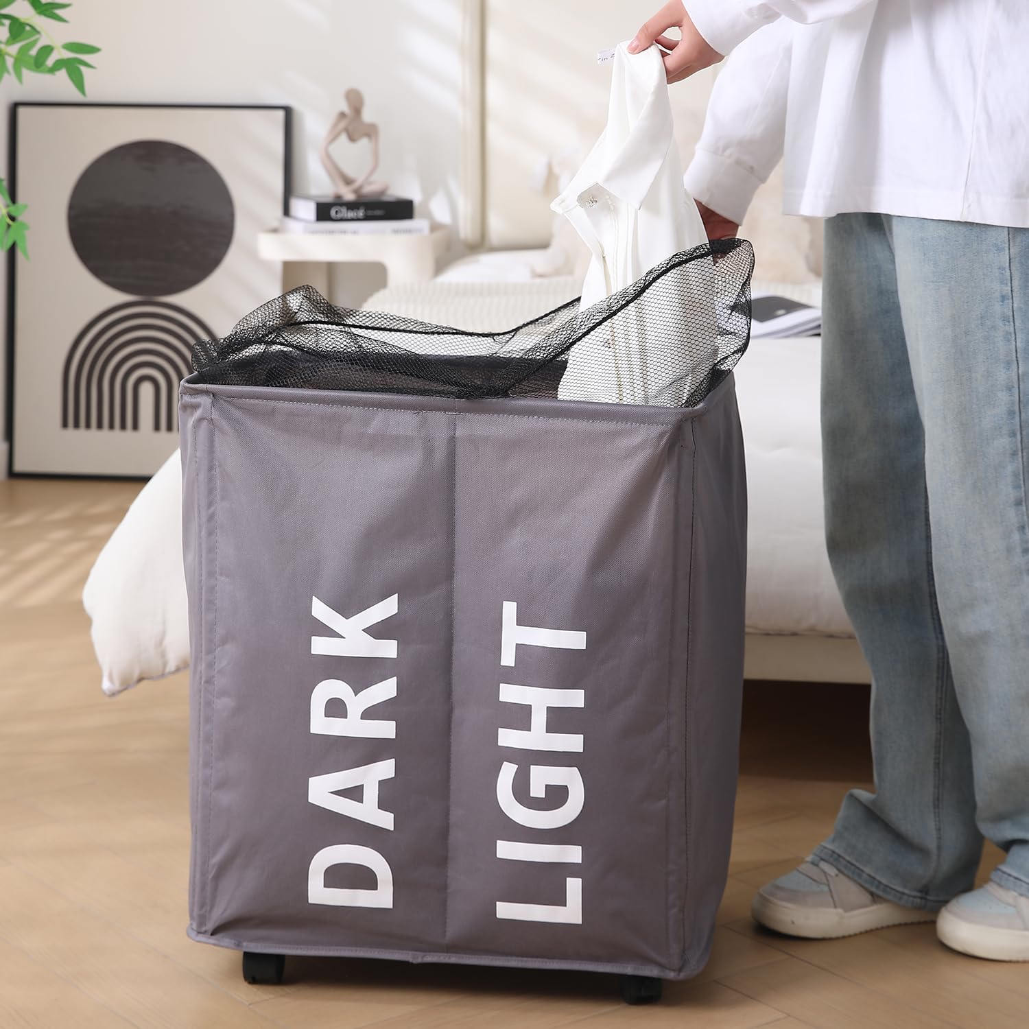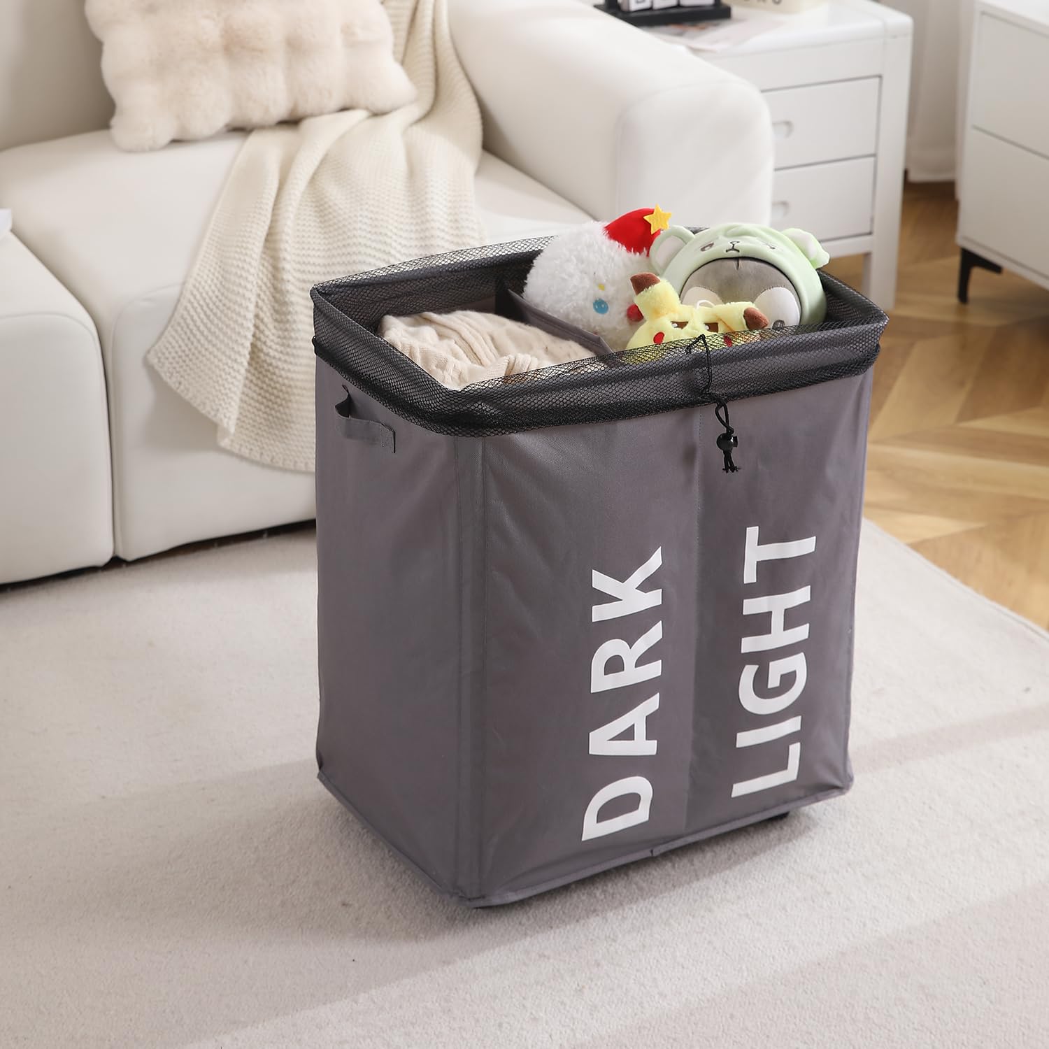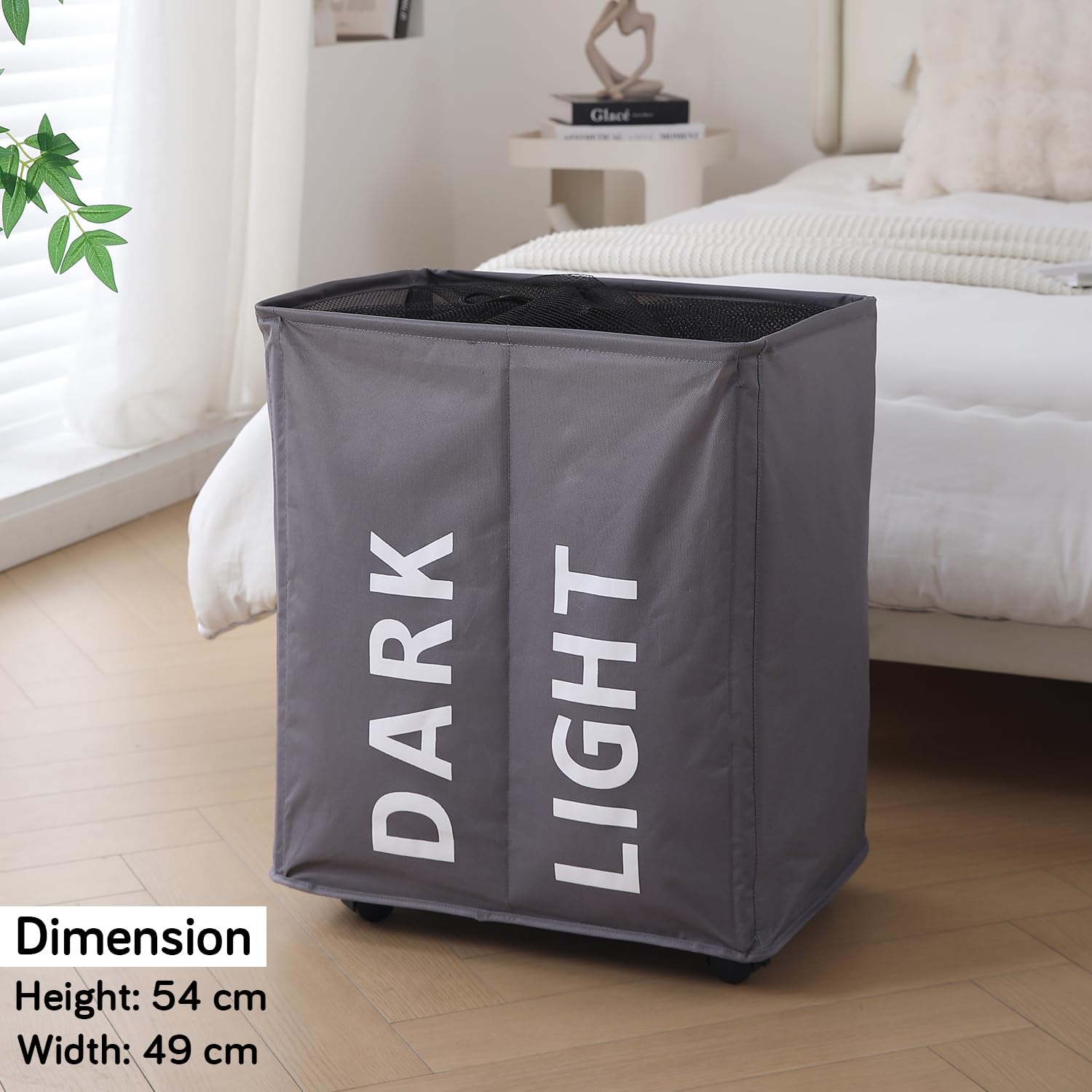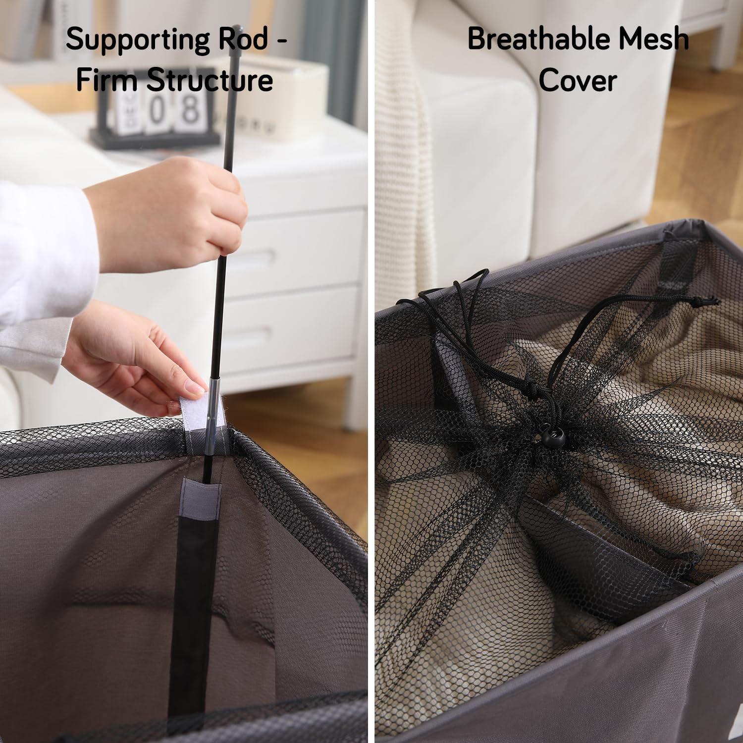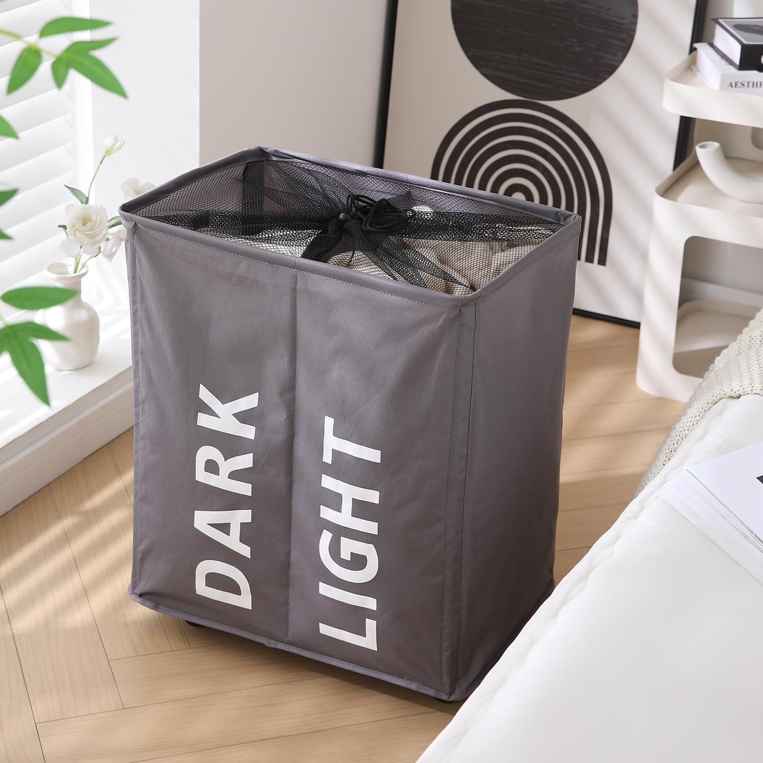 • Sturdy & Sectioned Design – Features a strong metal frame with 4 corner rods and two compartments for sorting clothes.