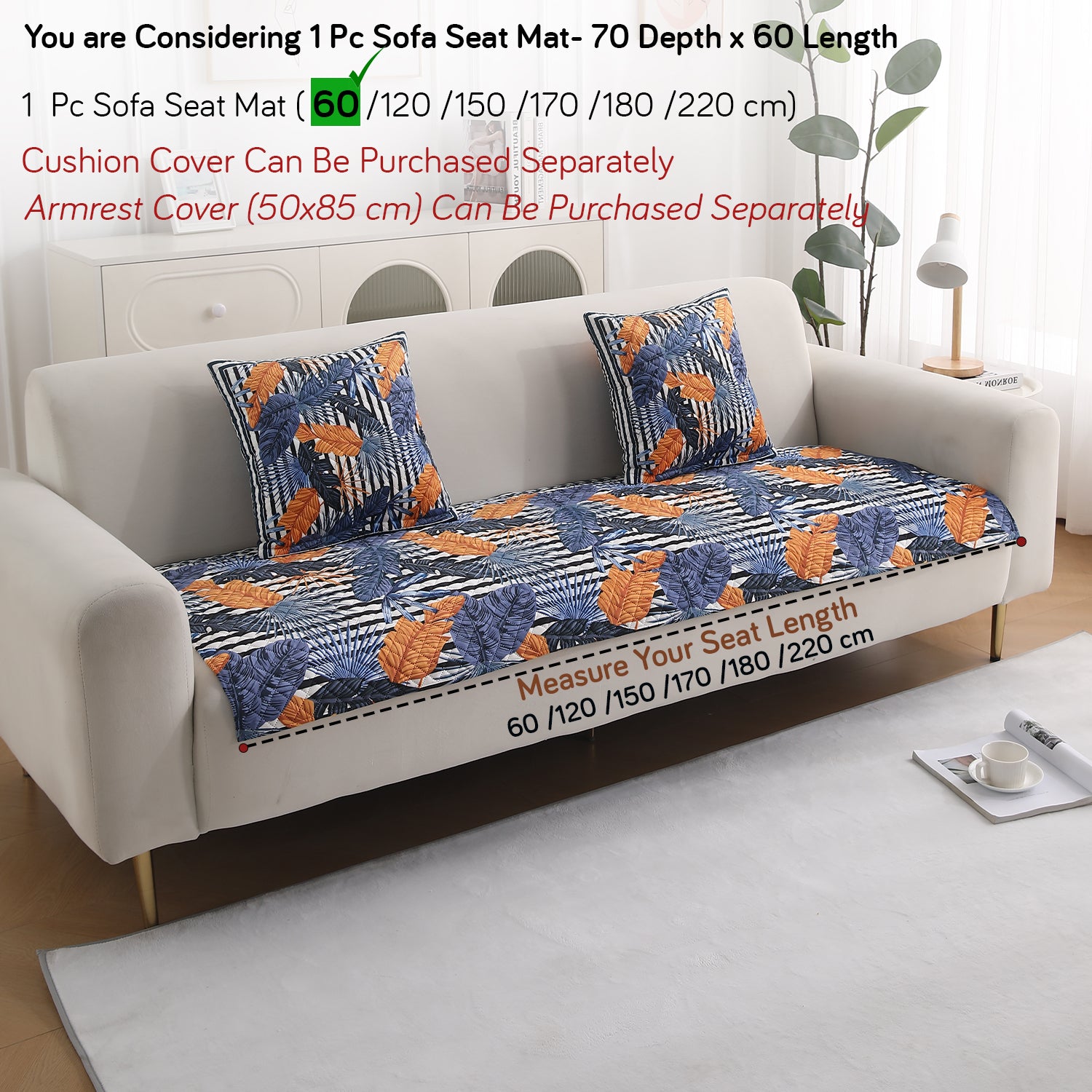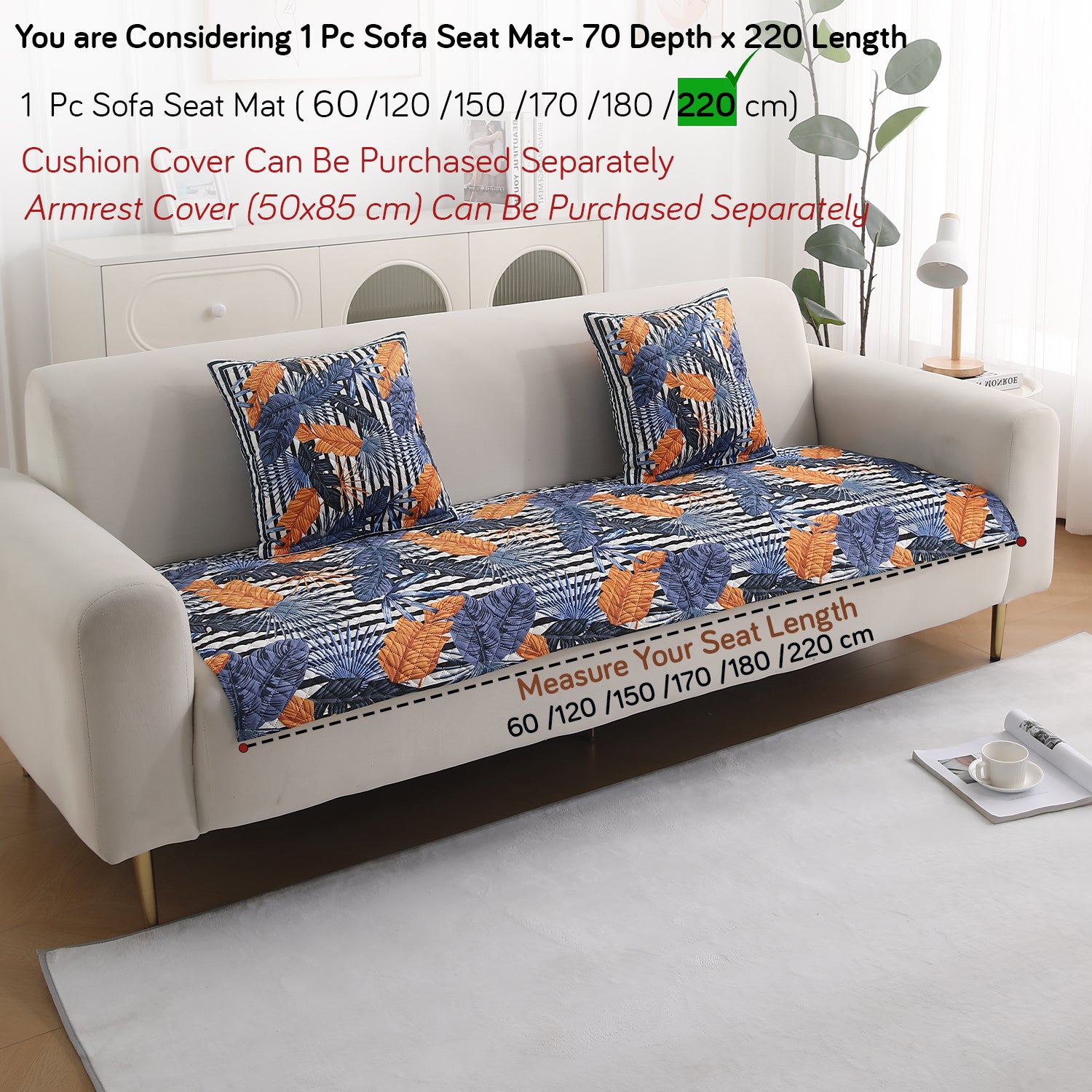 LiefNest Holland Velvet Sofa Cover Mat with Foam Filling - Tropical Leaves Dusk Blue