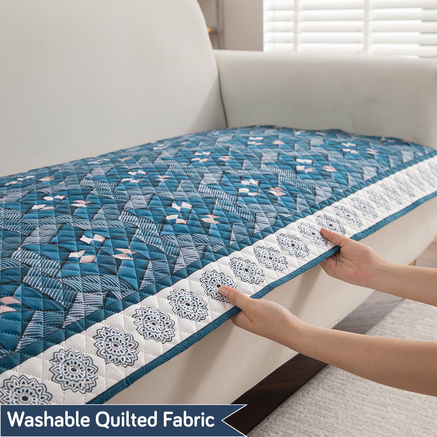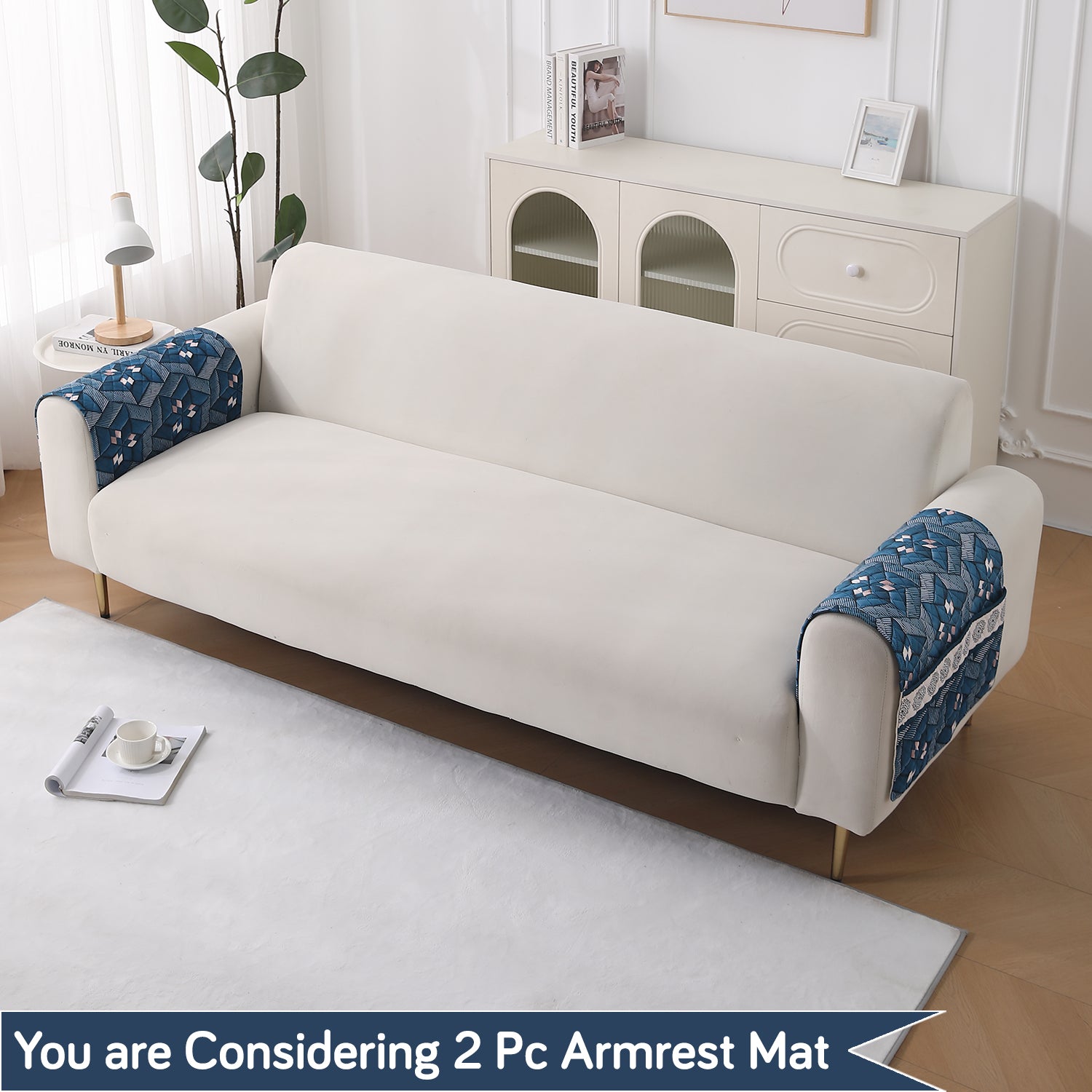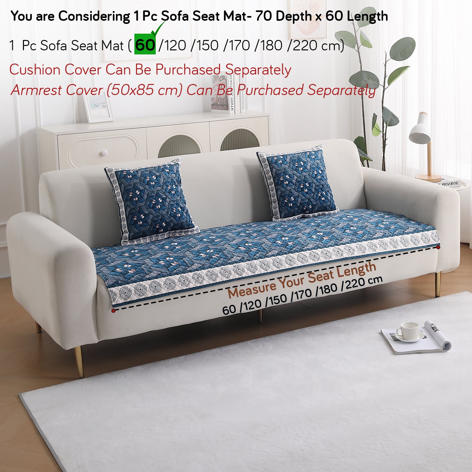 LiefNest Holland Velvet Sofa Cover Mat with Foam Filling - Geometric Floral Oriental Blue
