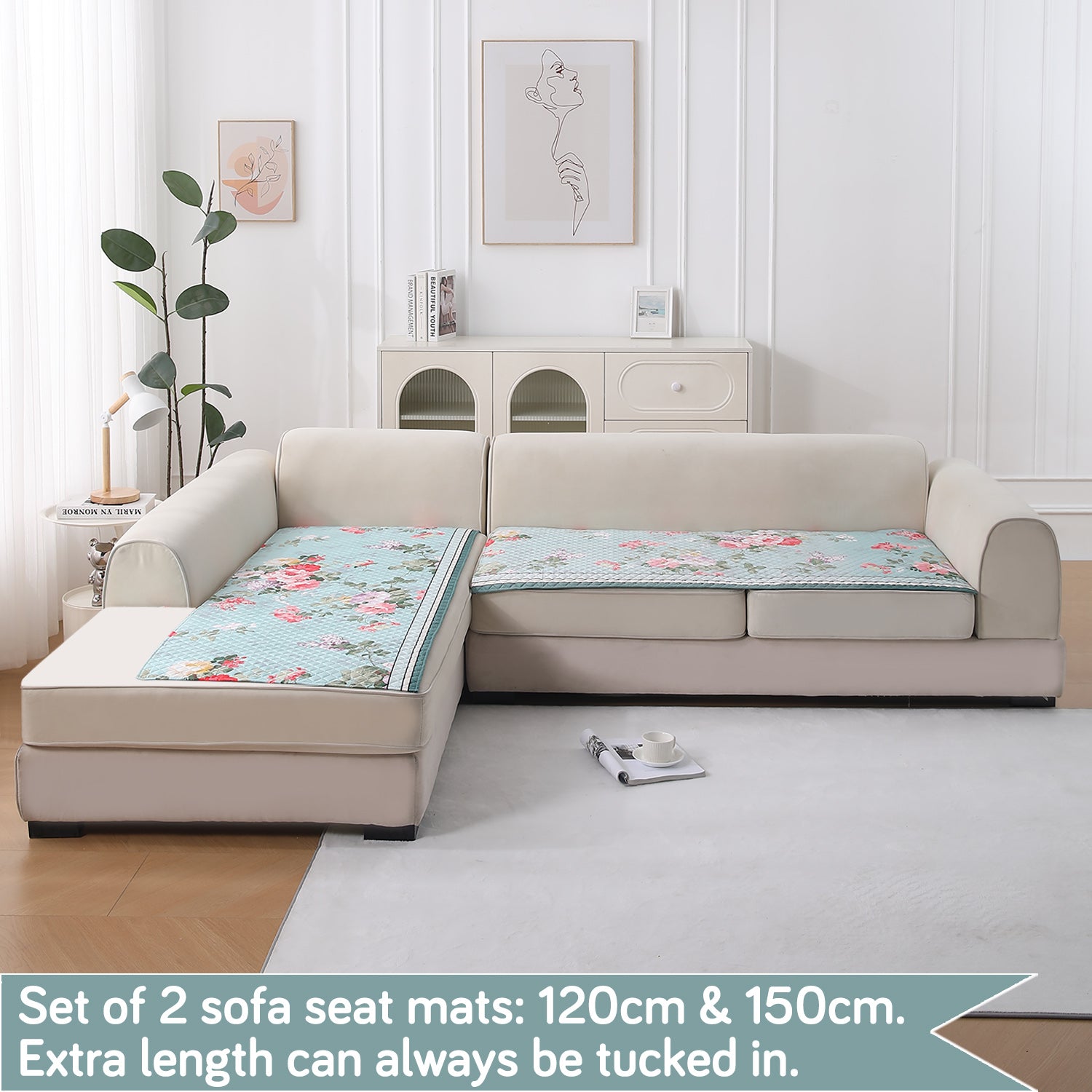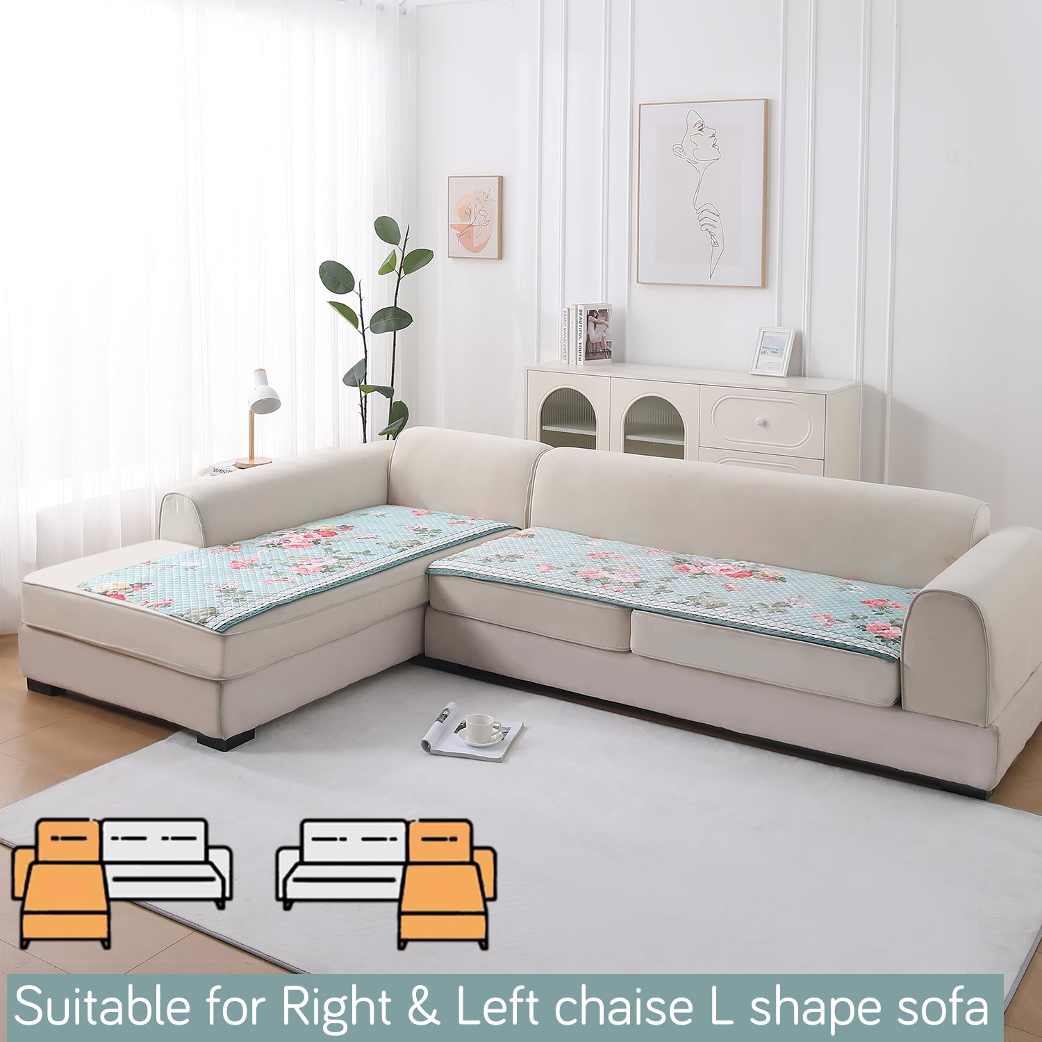 Perfect Fit: Quilted L-shape sofa mat for 2+2 seater (120 cm + 150 cm), 3+2 seater (180 cm + 150 cm), 3+3 seater (180 cm + 150 cm) ; extra length tucks in neatly.
