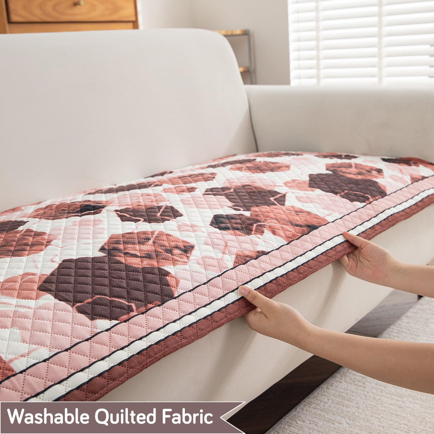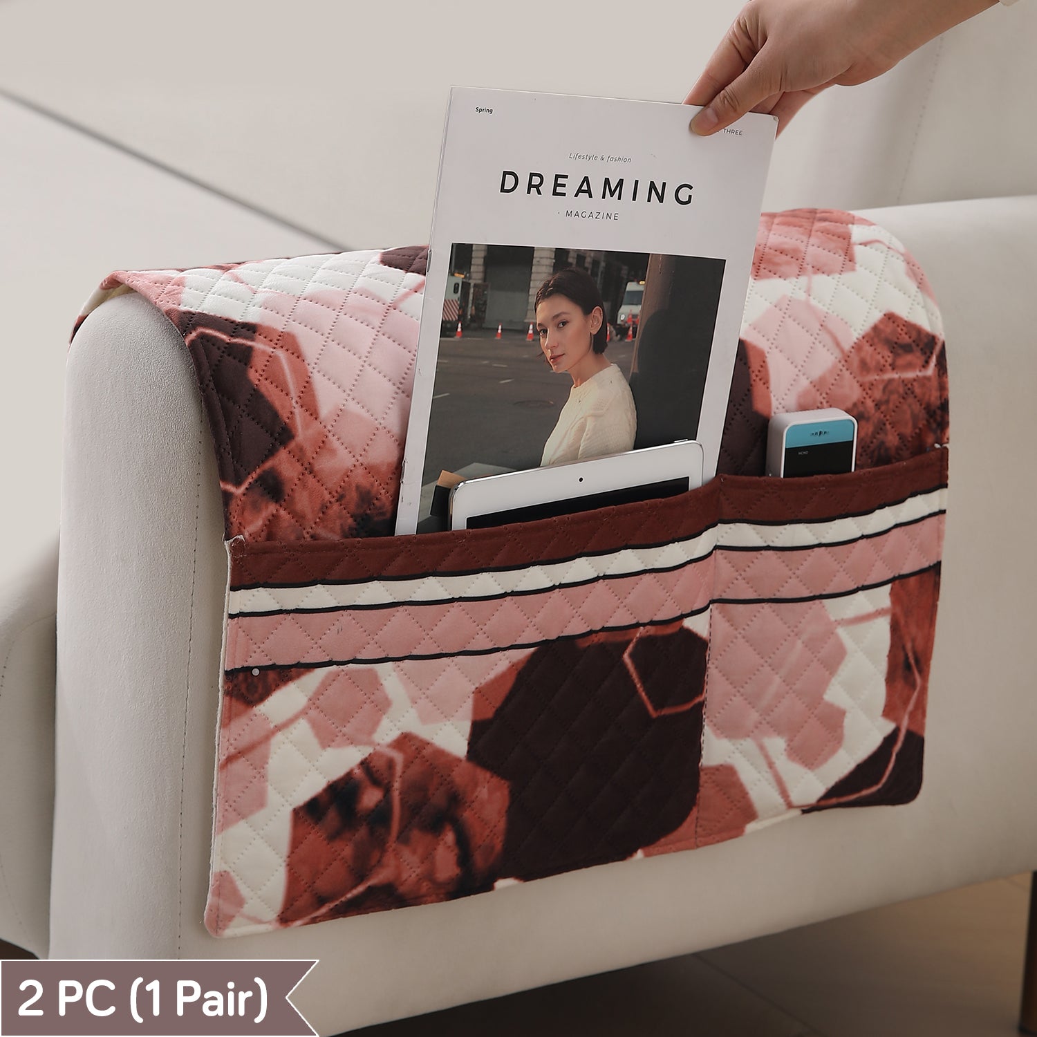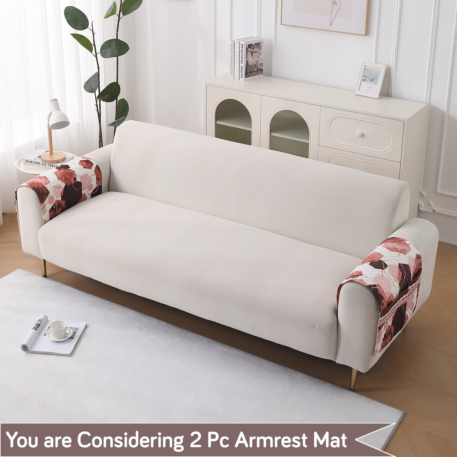LiefNest Printed Holland Velvet Sofa Mat with Foam Filling - Geometric Hexagon Cider Red for 1/2/3 Seater & Armrest