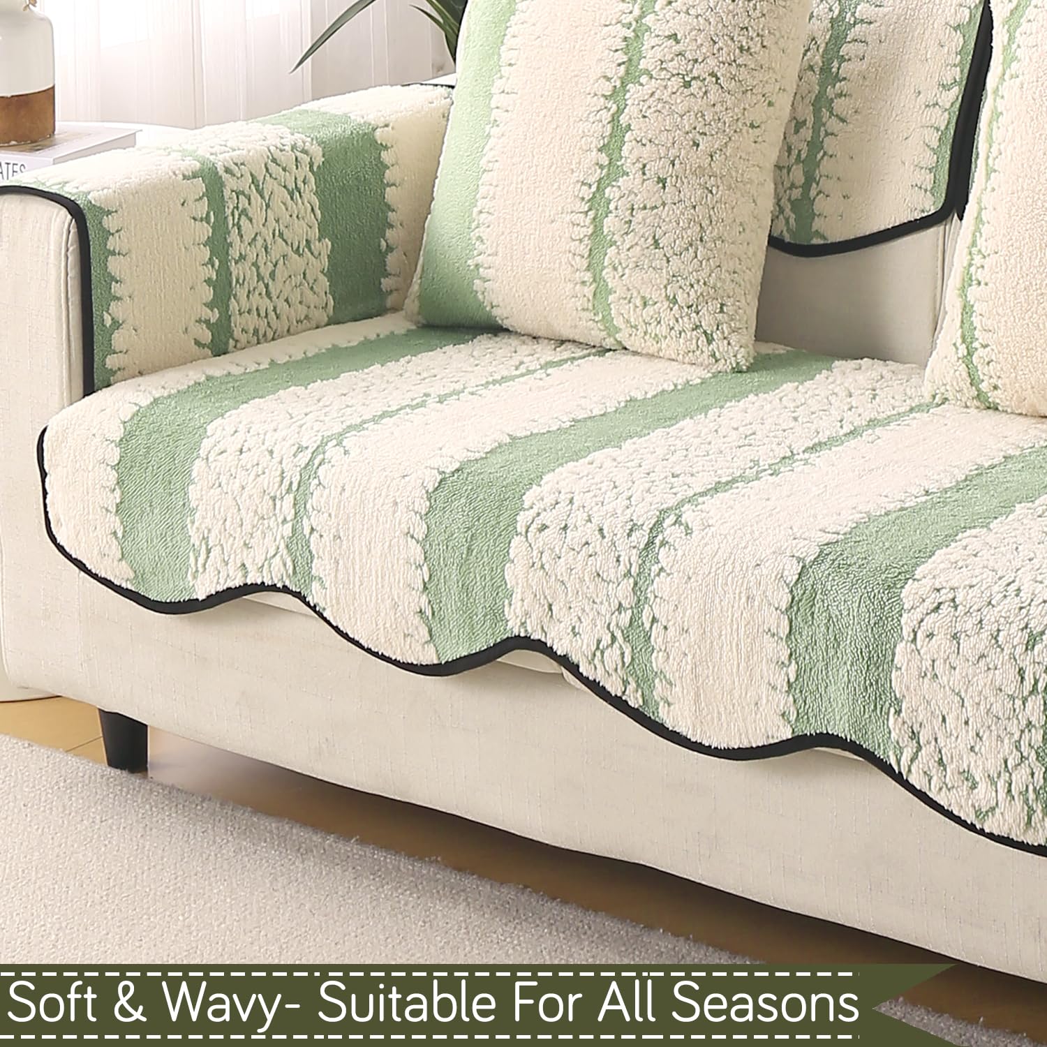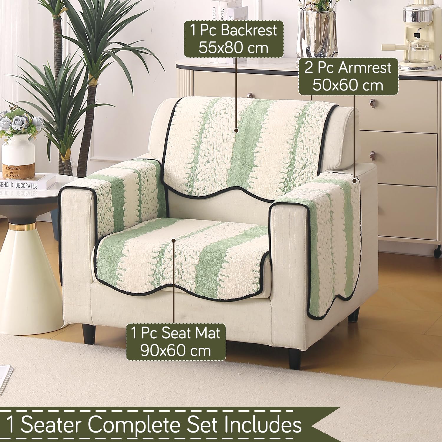 Luxury Sofa Cover Set | Seat, Back & Arm Covers | Anti-Slip Wavy Mat – Pistachio Green