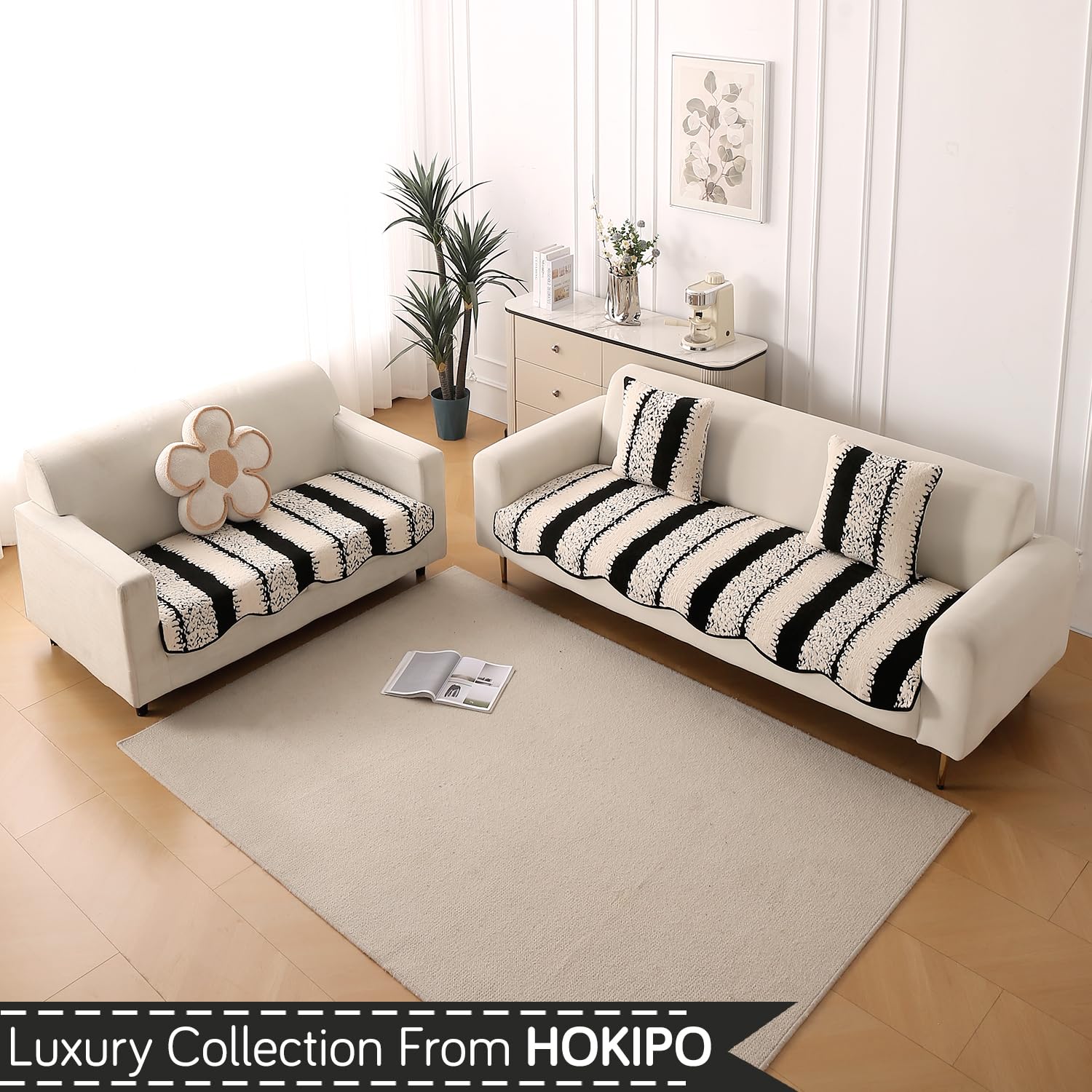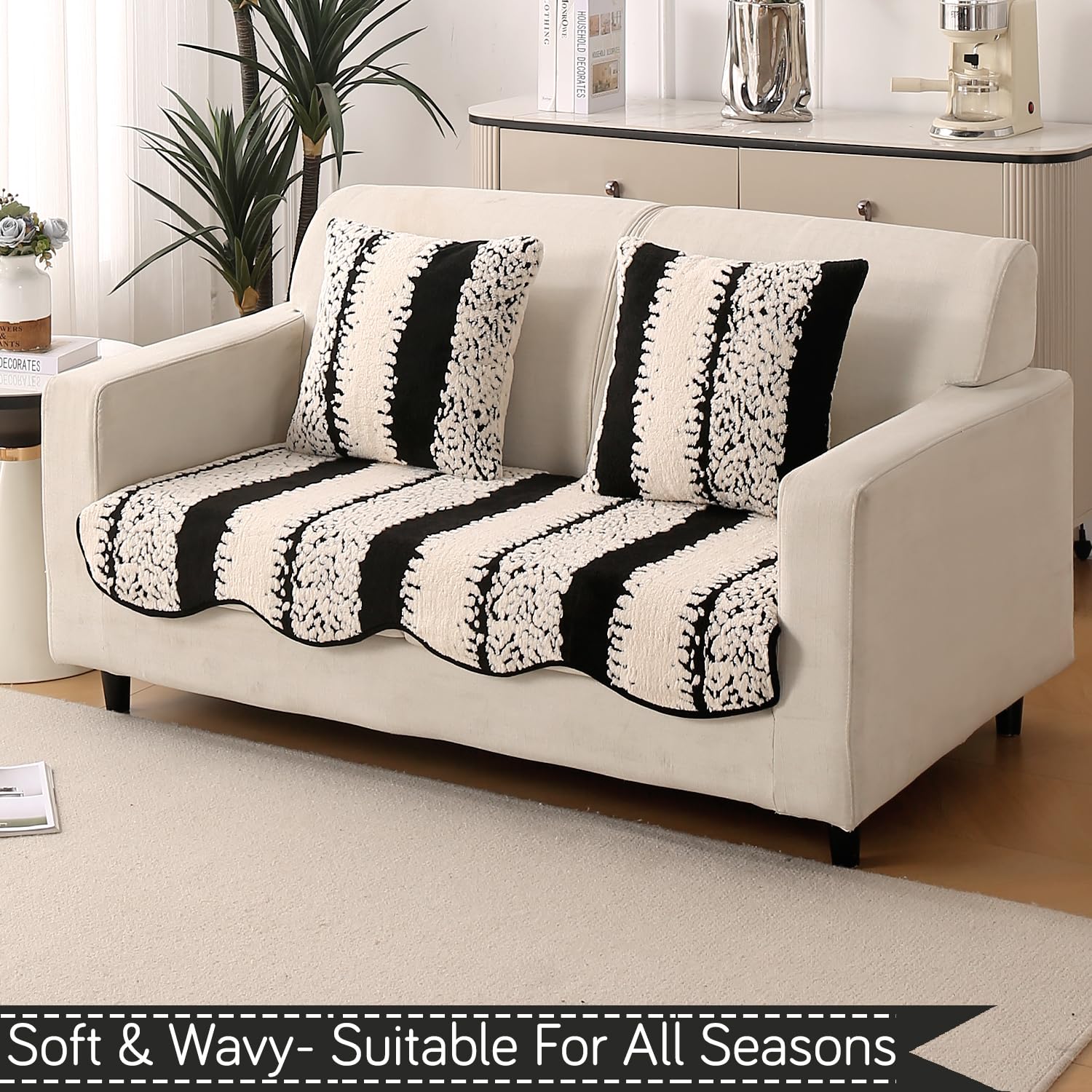 Strong Anti-Slip Backing – Special dotted base keeps the sofa cover firmly in place during daily use, preventing sliding or shifting.Stylish curved wavy edges with contrast detailing of your sofa