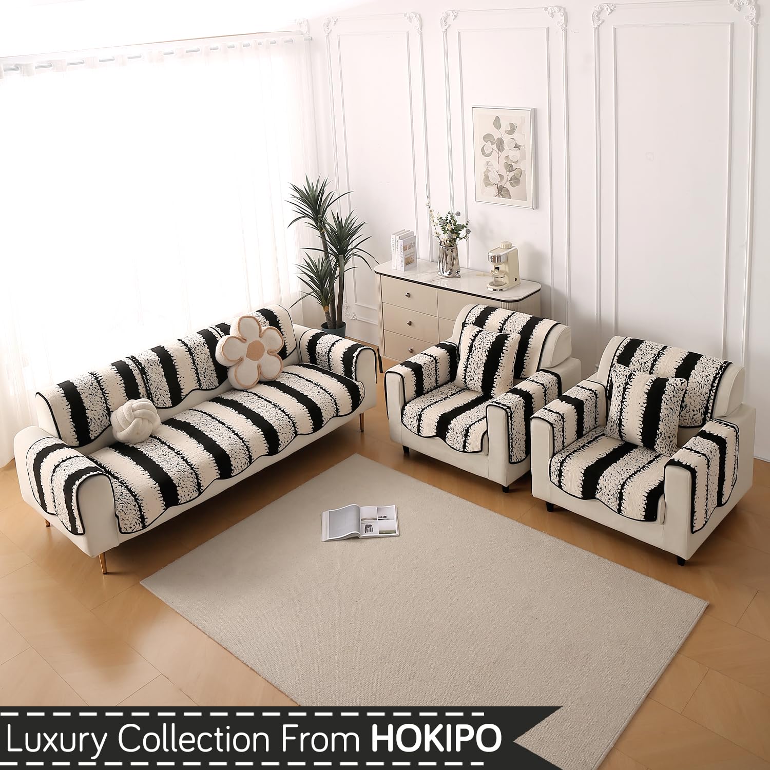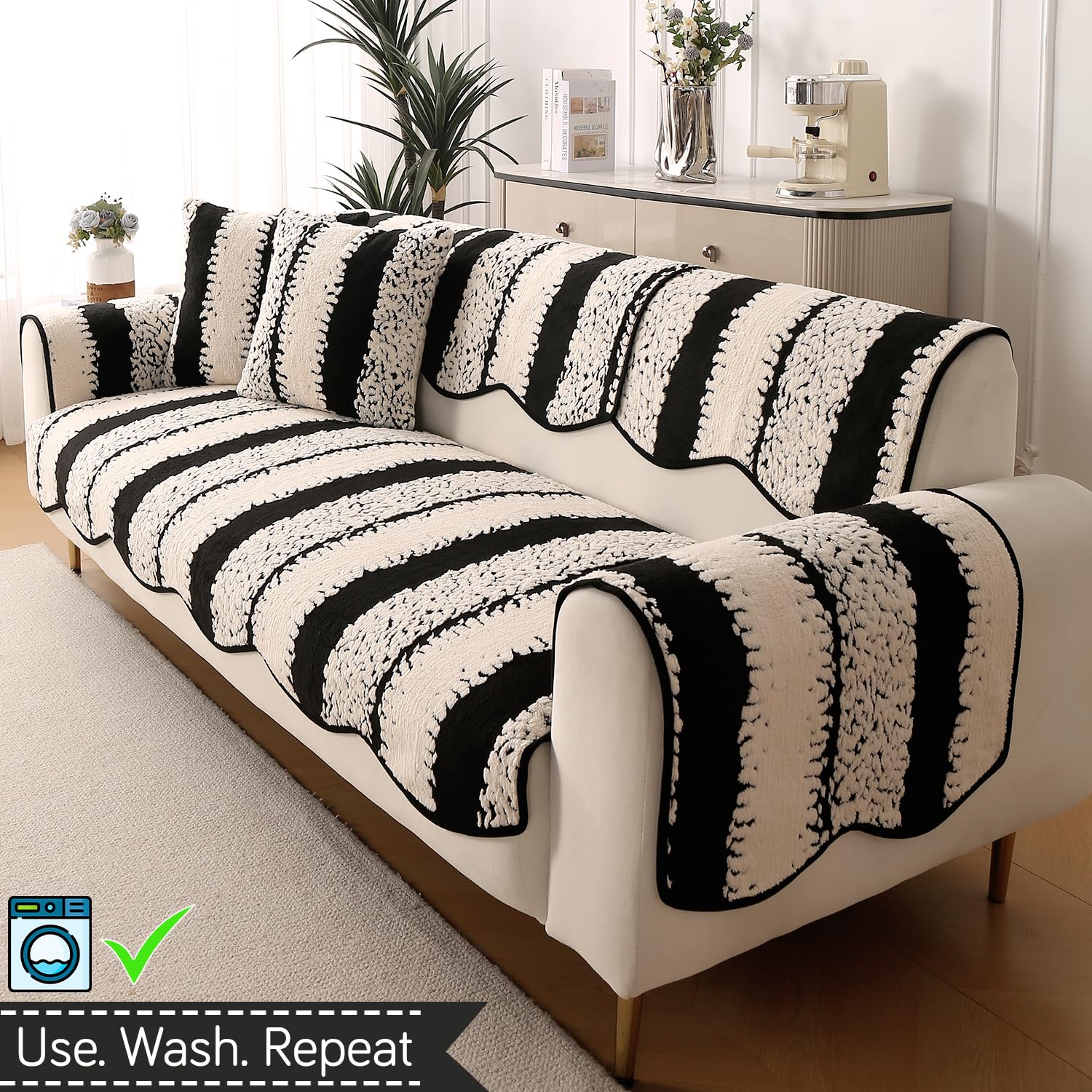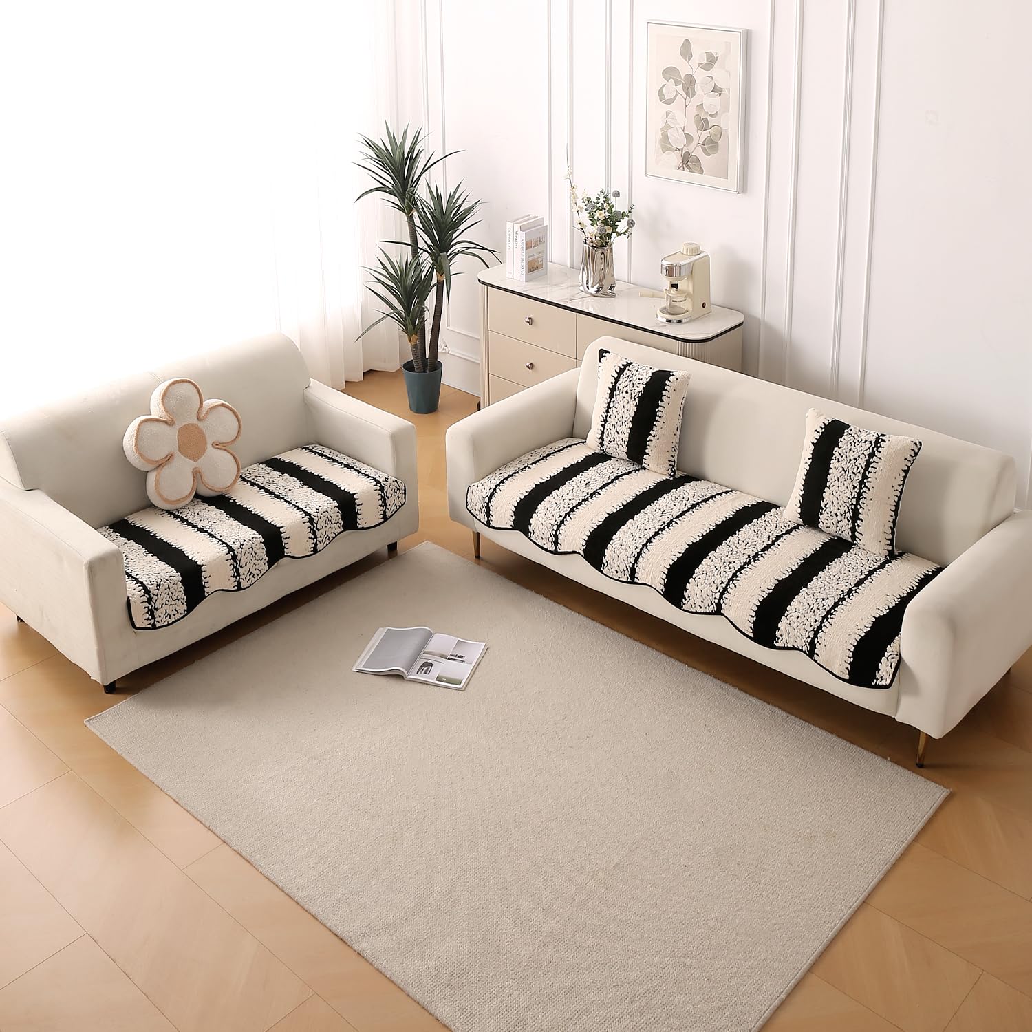 Luxury Wavy Anti Slip Plush Sofa Cover Mat, Black