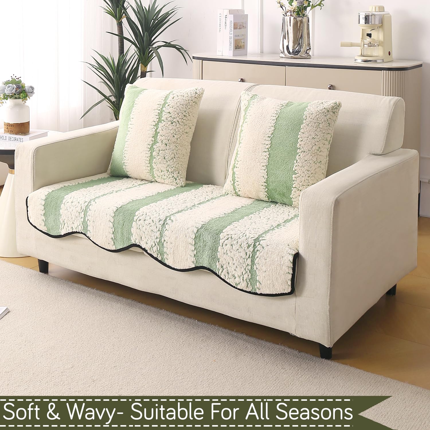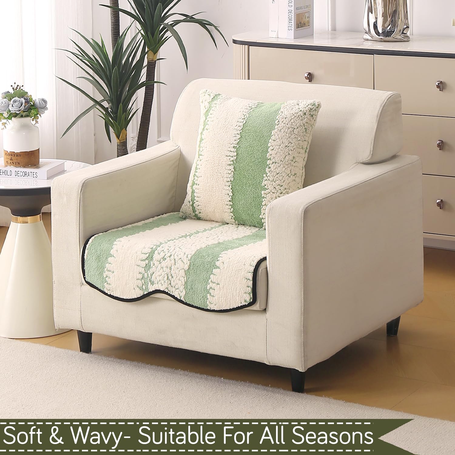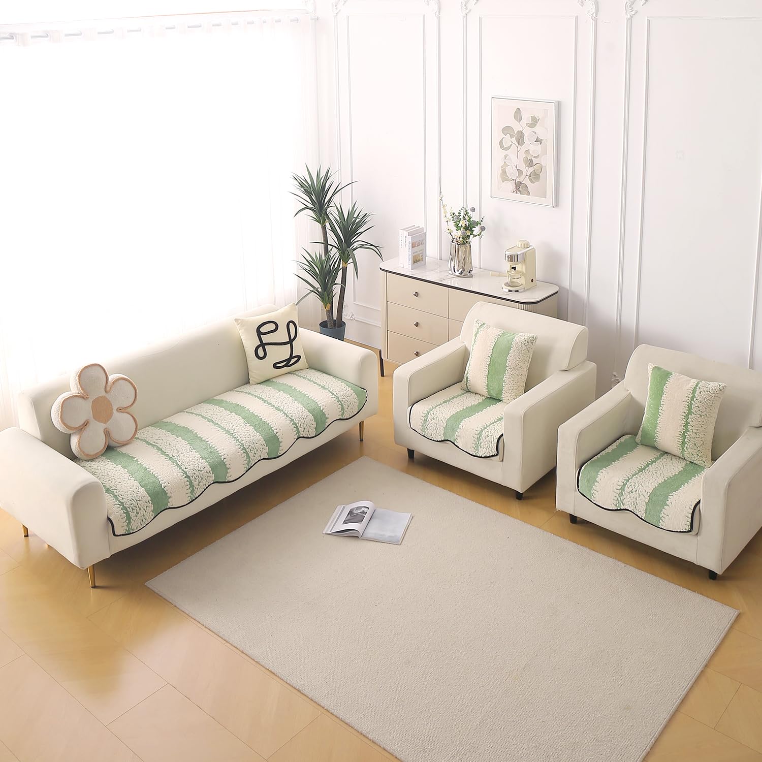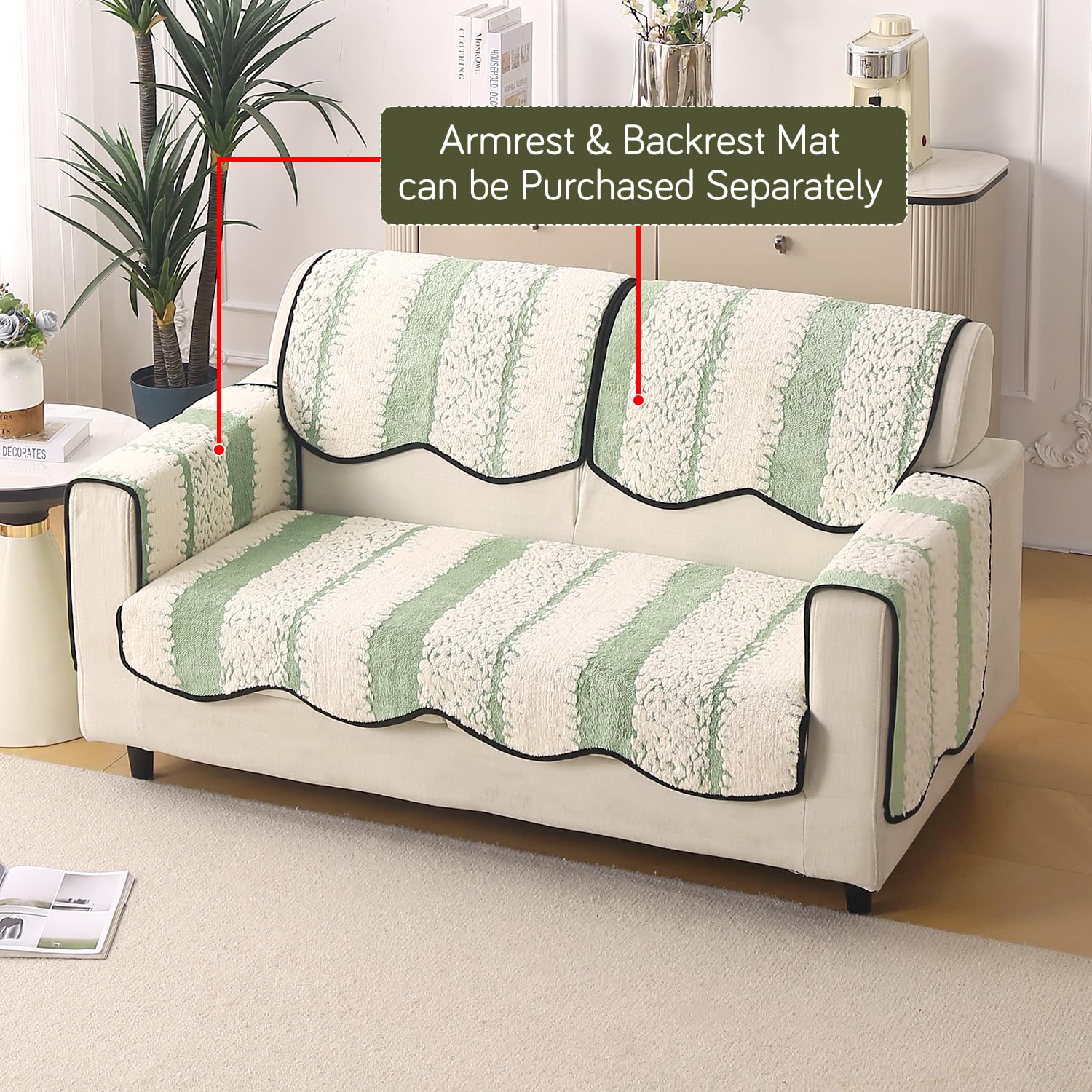 Luxury Wavy Anti Slip Plush Sofa Cover Mat, Pistachio Green