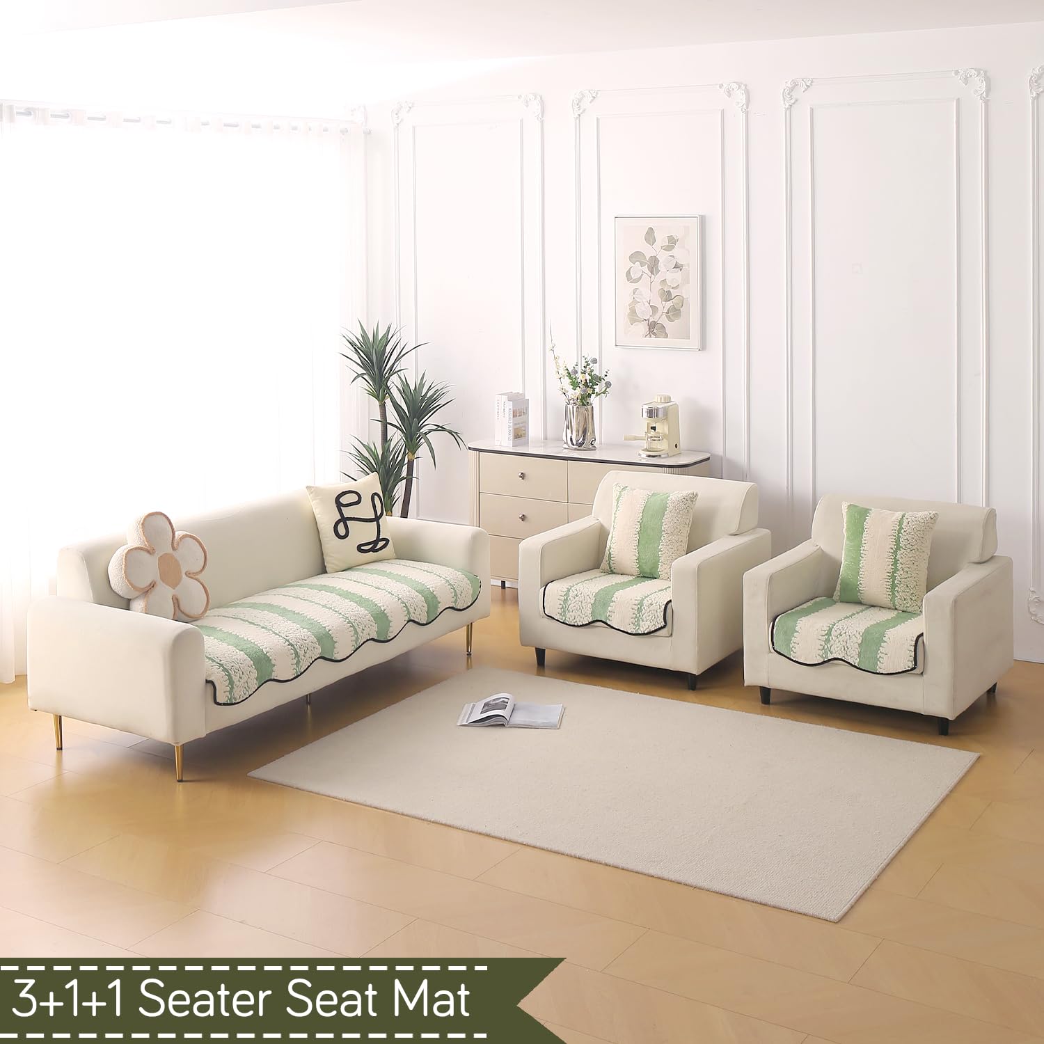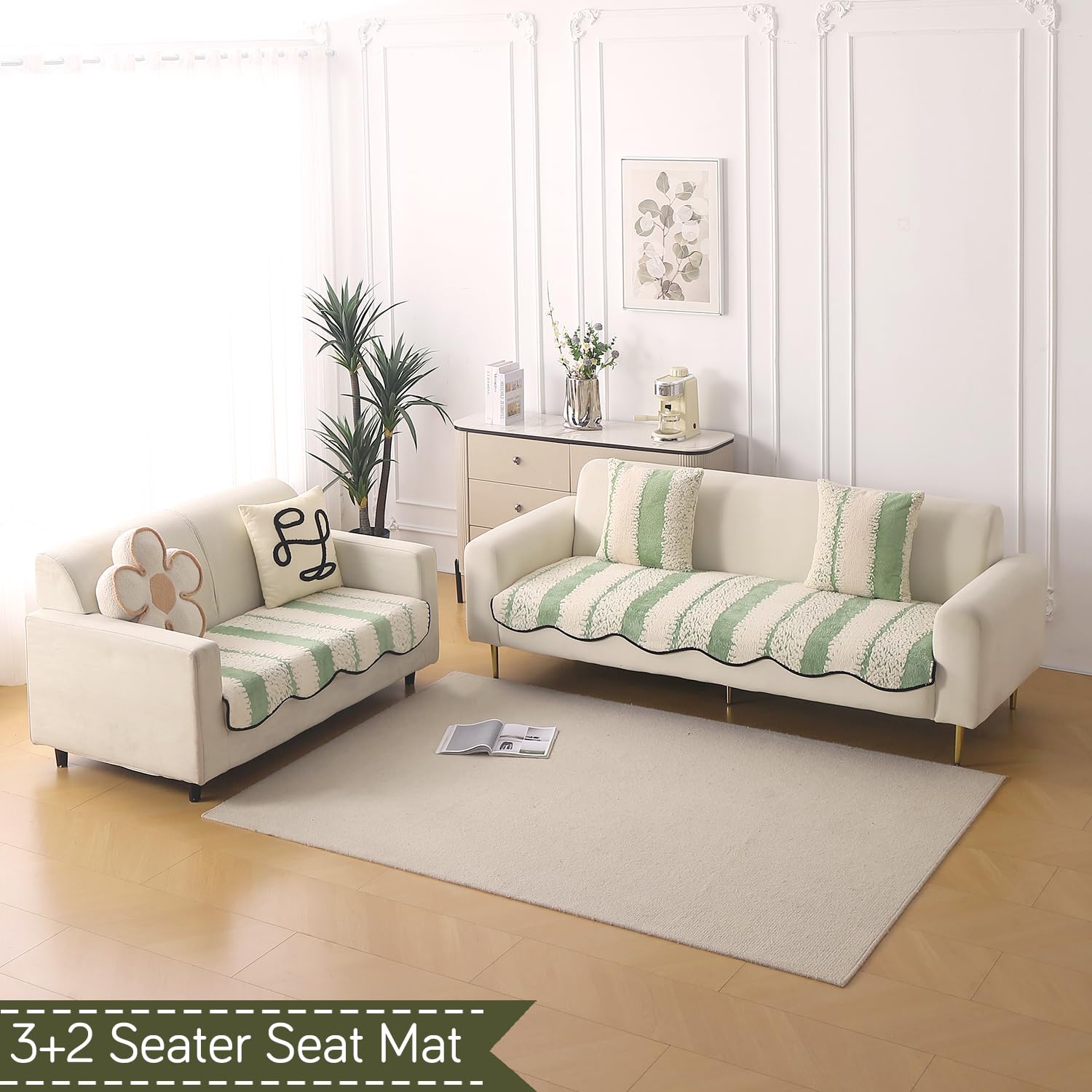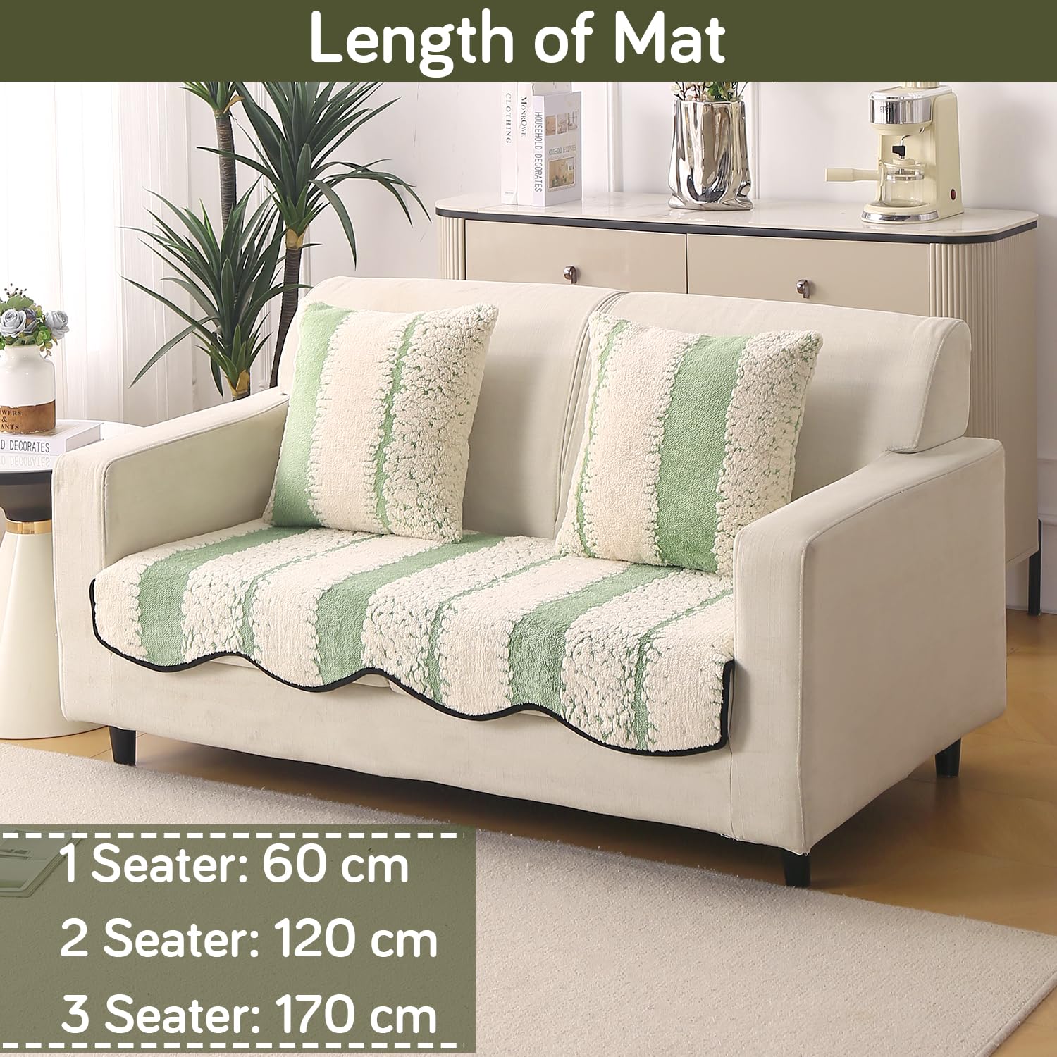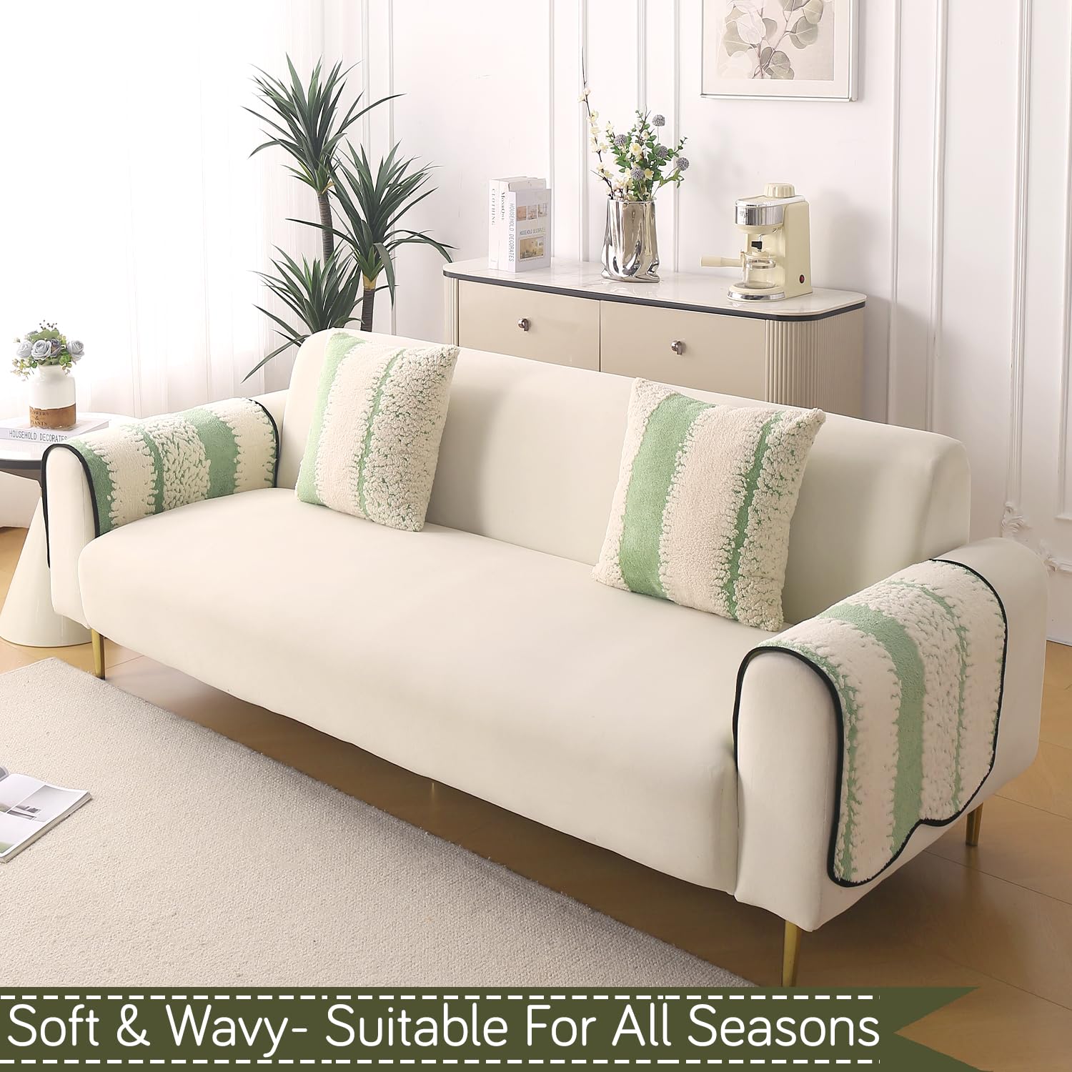 Luxury Wavy Anti Slip Plush Sofa Cover Mat, Pistachio Green