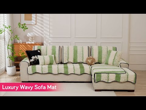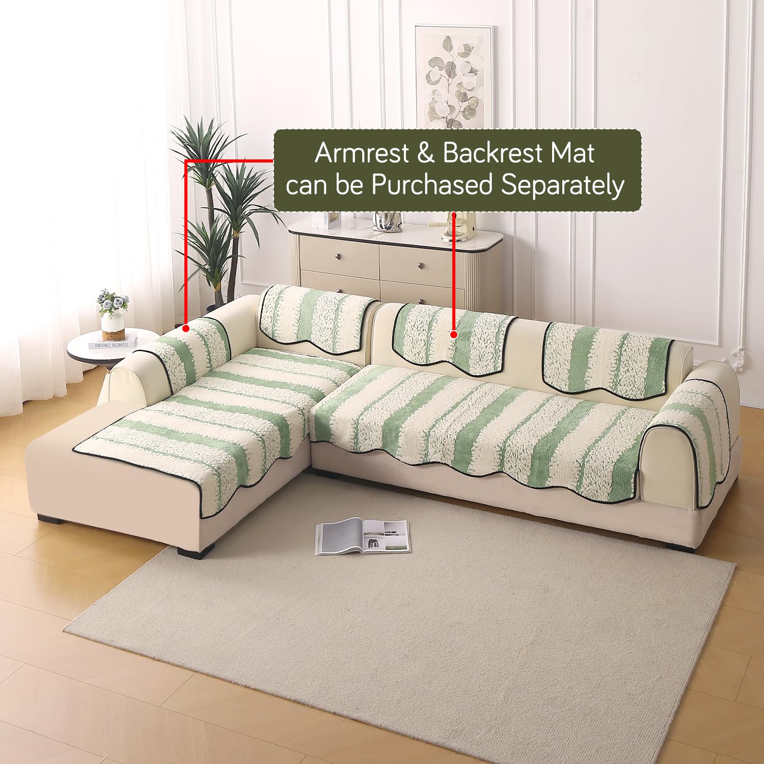 Luxury Wavy Mat with Anti Slip Backing L Shape Sofa Cover Seat Mat - Pistachio Green