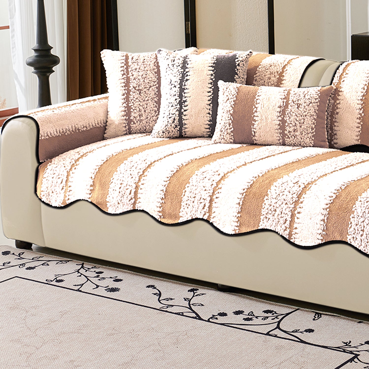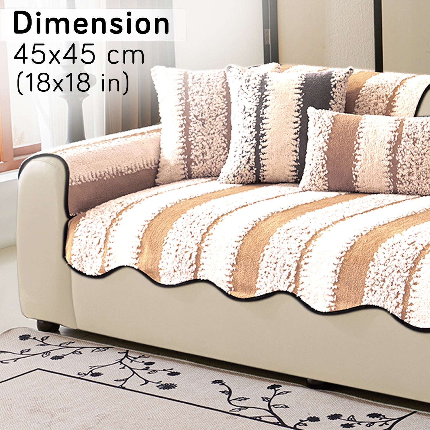Luxury Wavy Plush Cushion Cover for Sofa - Desert Brown