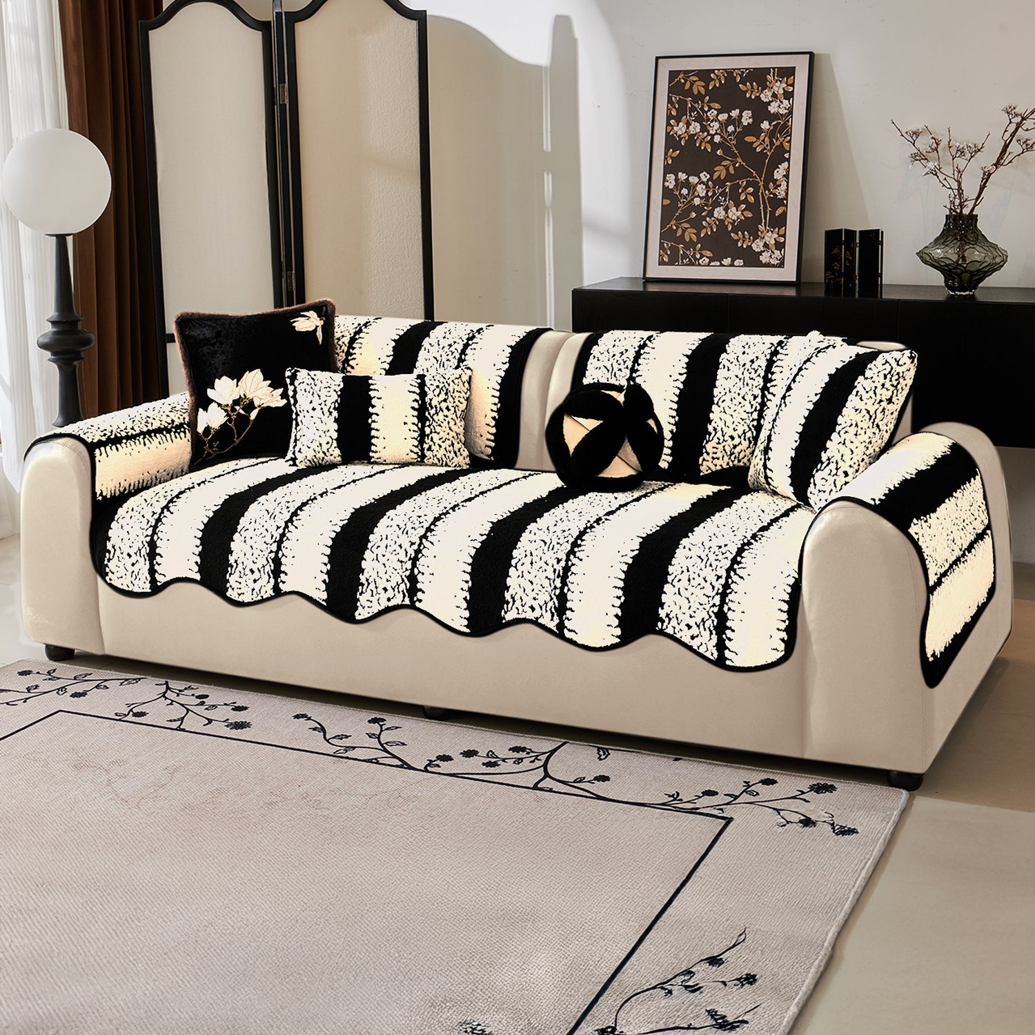 Luxury Wavy Plush Cushion Cover for Sofa - Black
