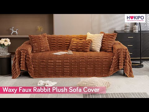 - Luxurious HOKIPO premium waxy faux rabbit plush sofa throw cover