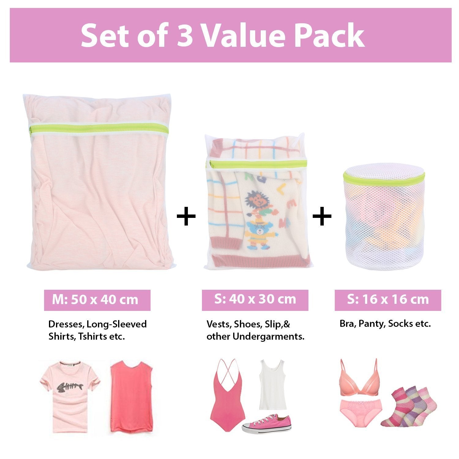 Mesh Laundry Clothes Washing Bag, Pack Of 3, White